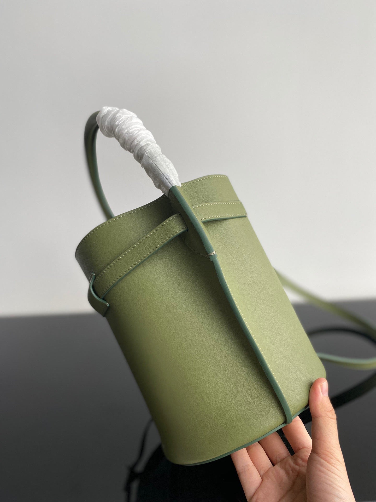 Celine Bucket Nano Bag In Avocado Green Calfskin