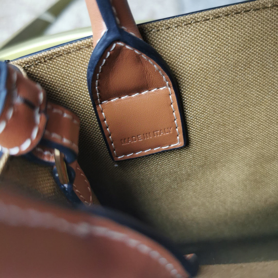 - Adorned with Triomphe canvas and calfskin trimmings.