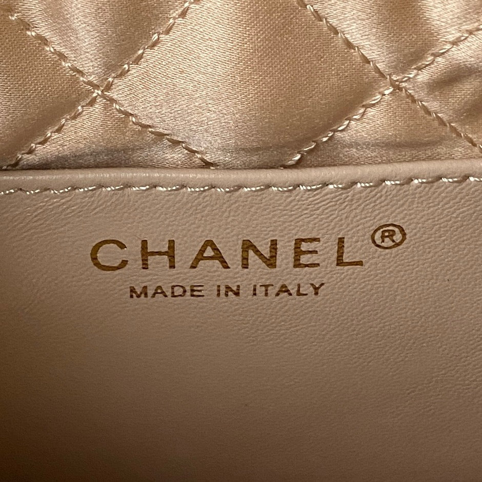- With CHANEL lettering in place of the usual gold or silver-tone hardware.
