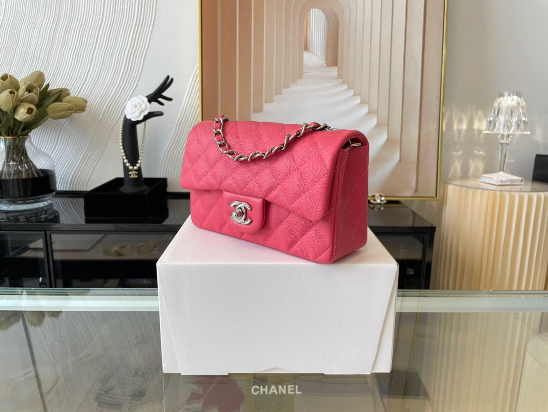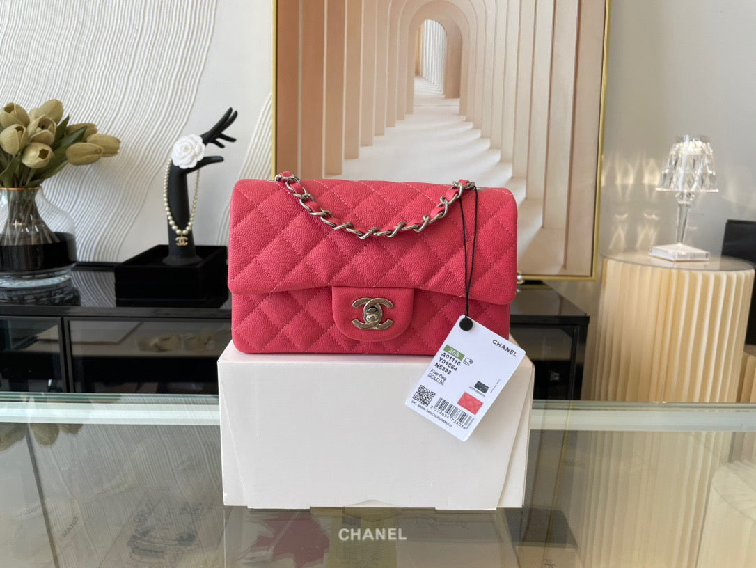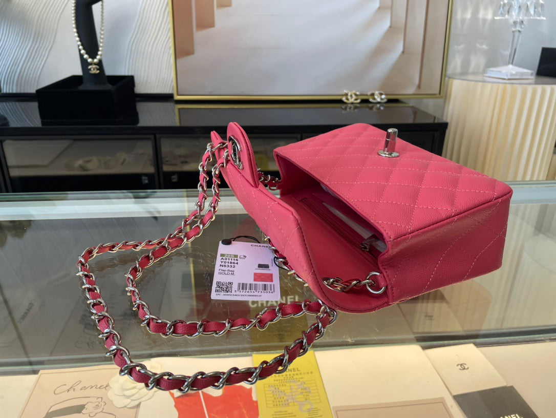Chanel Mini Flap In Rose Red Calfskin