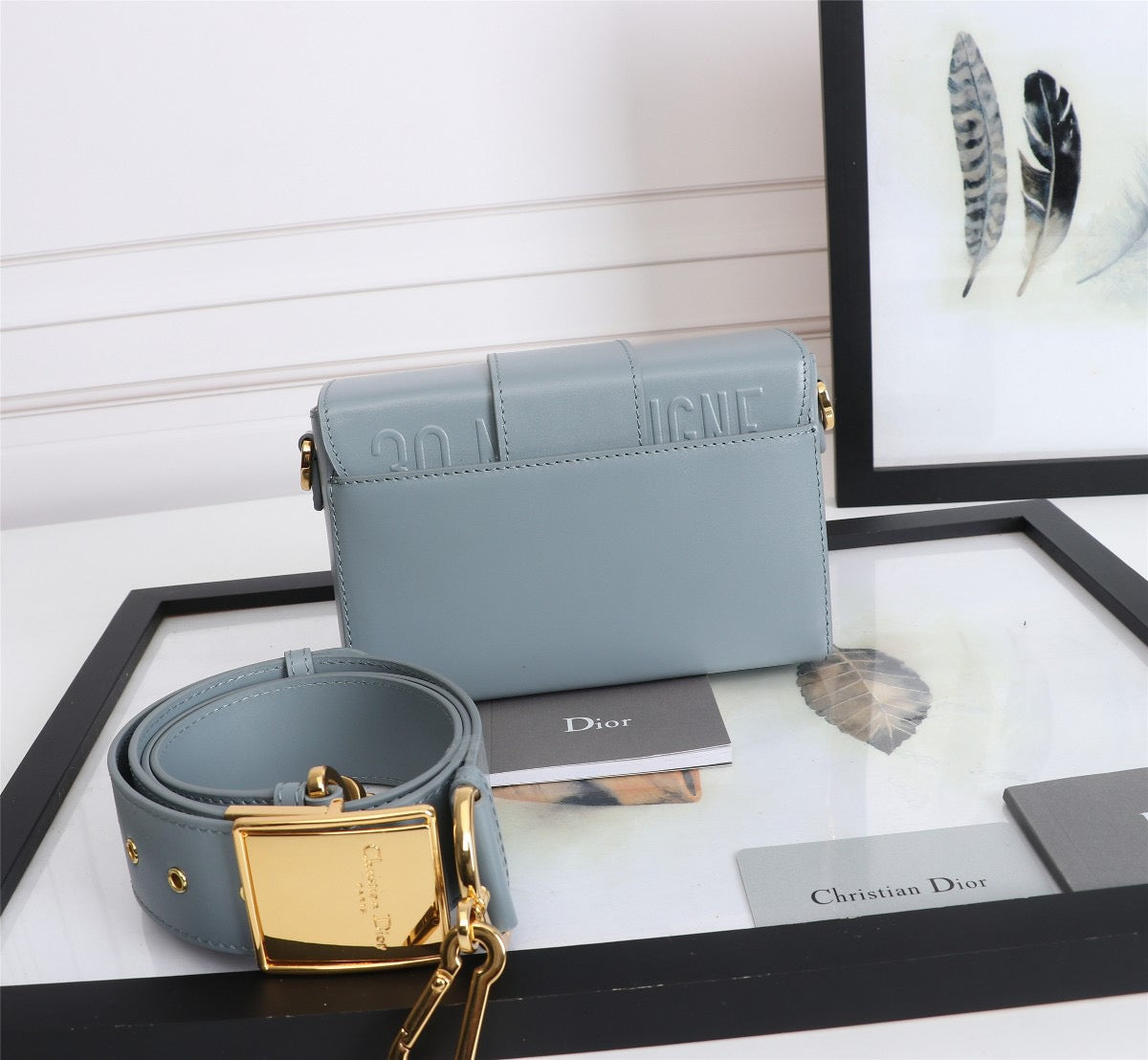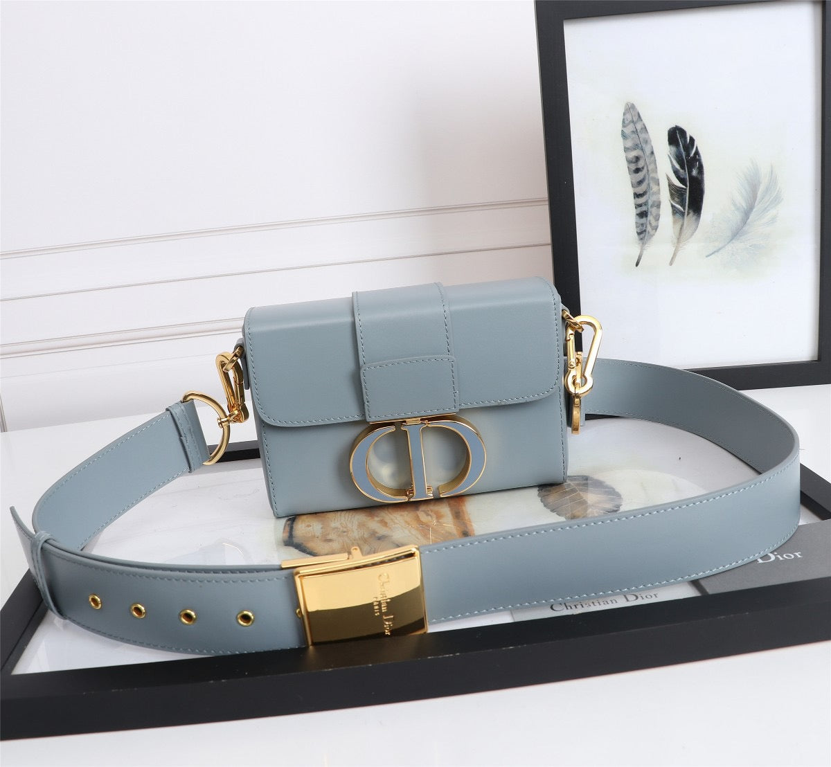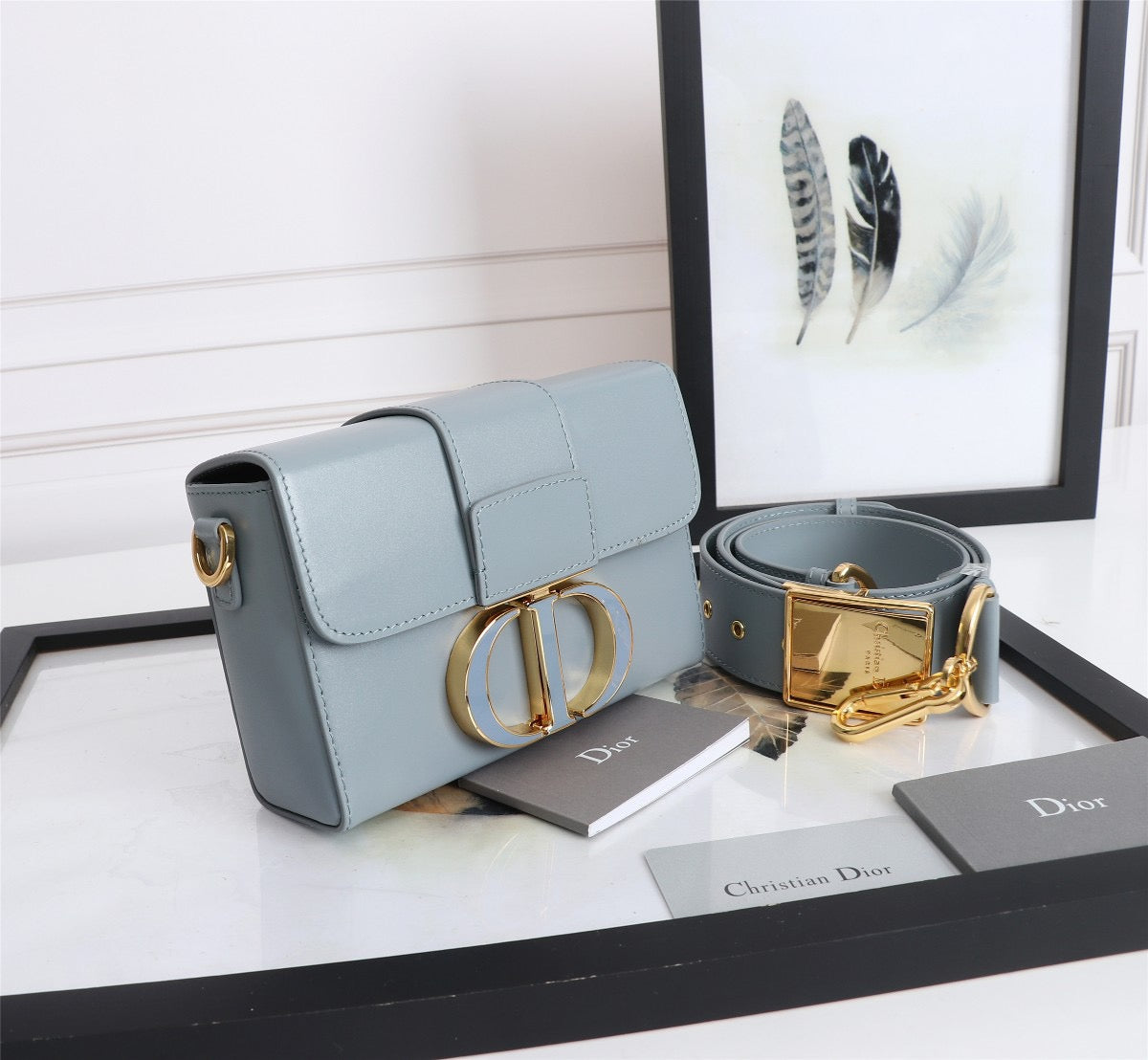Dior 30 Montaigne Box Bag In Light Blue Box Calfskin