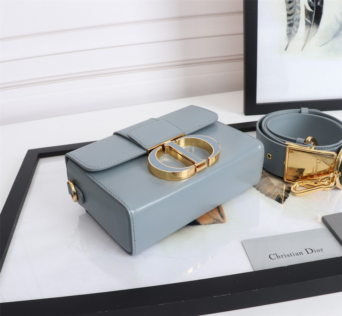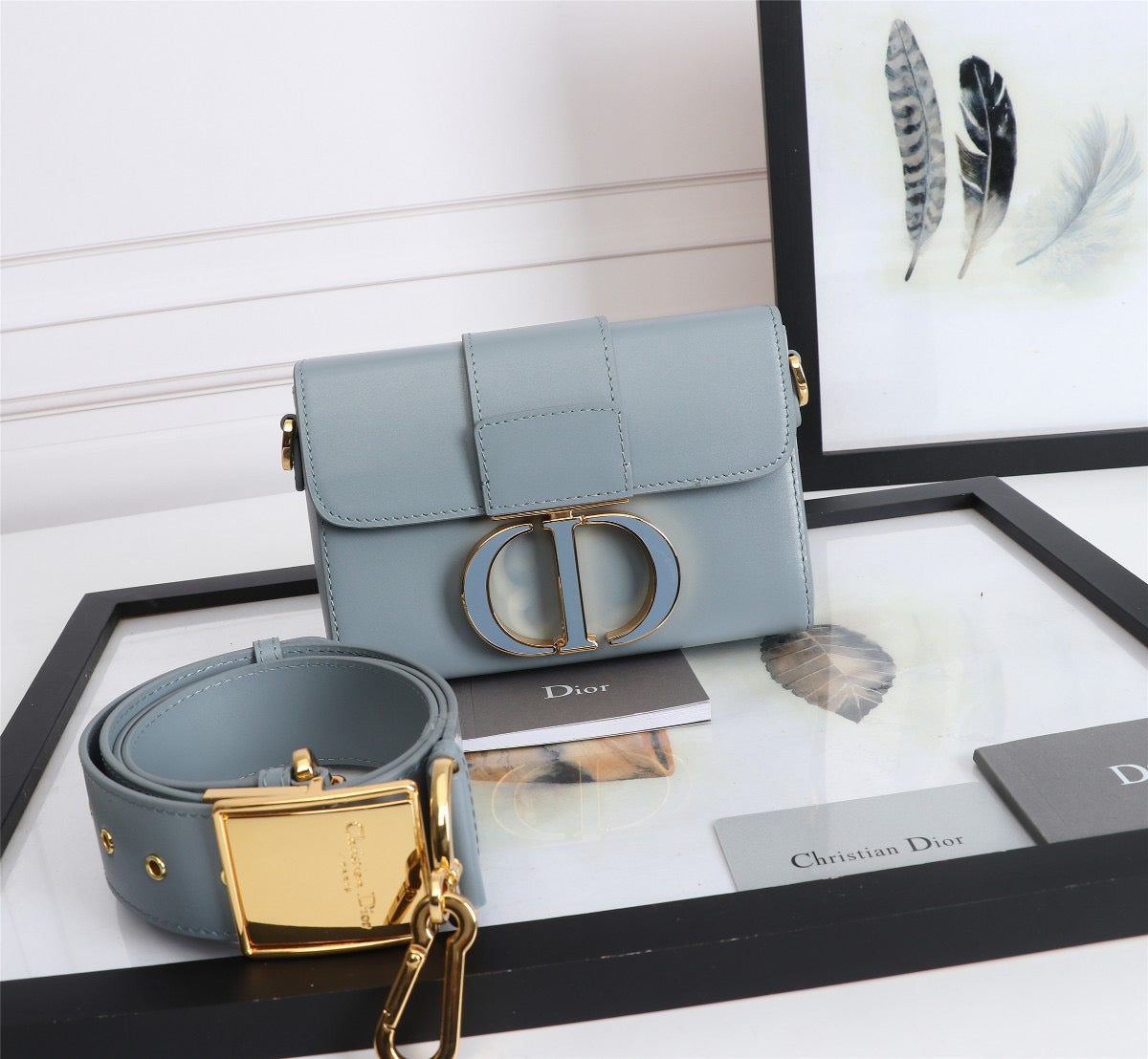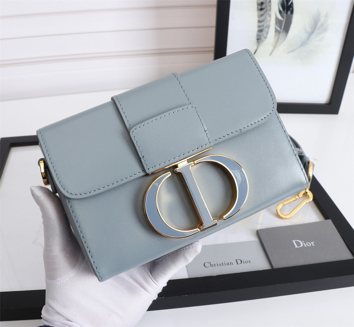 Dior 30 Montaigne Box Bag In Light Blue Box Calfskin