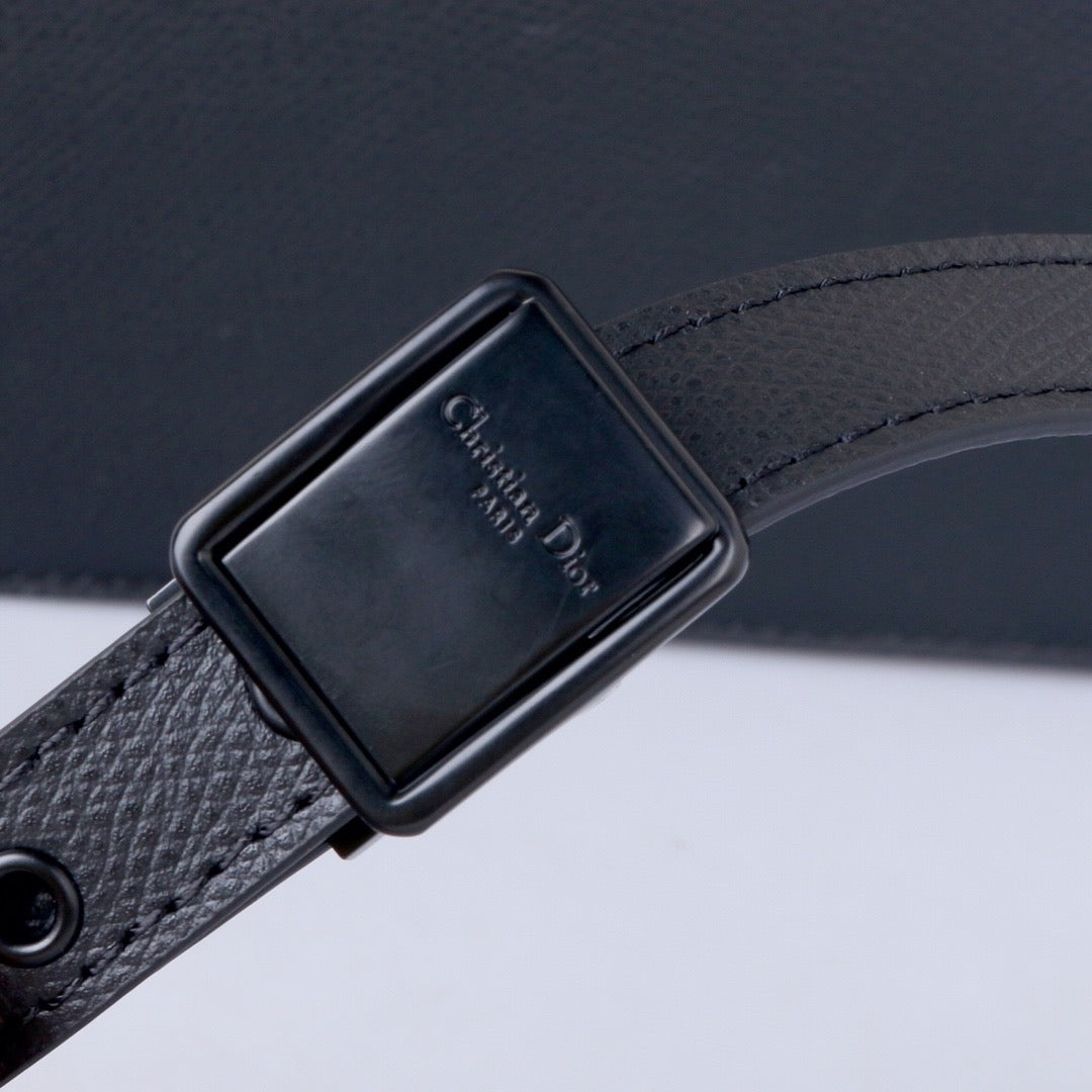 - Adjustable leather shoulder strap with 'Christian Dior' military-inspired buckle