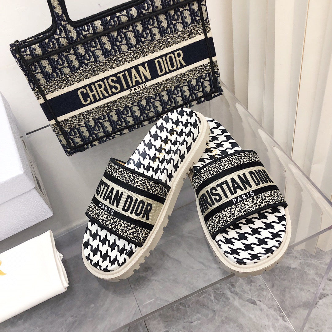 Dior Black Thick Sole Jelly Slides