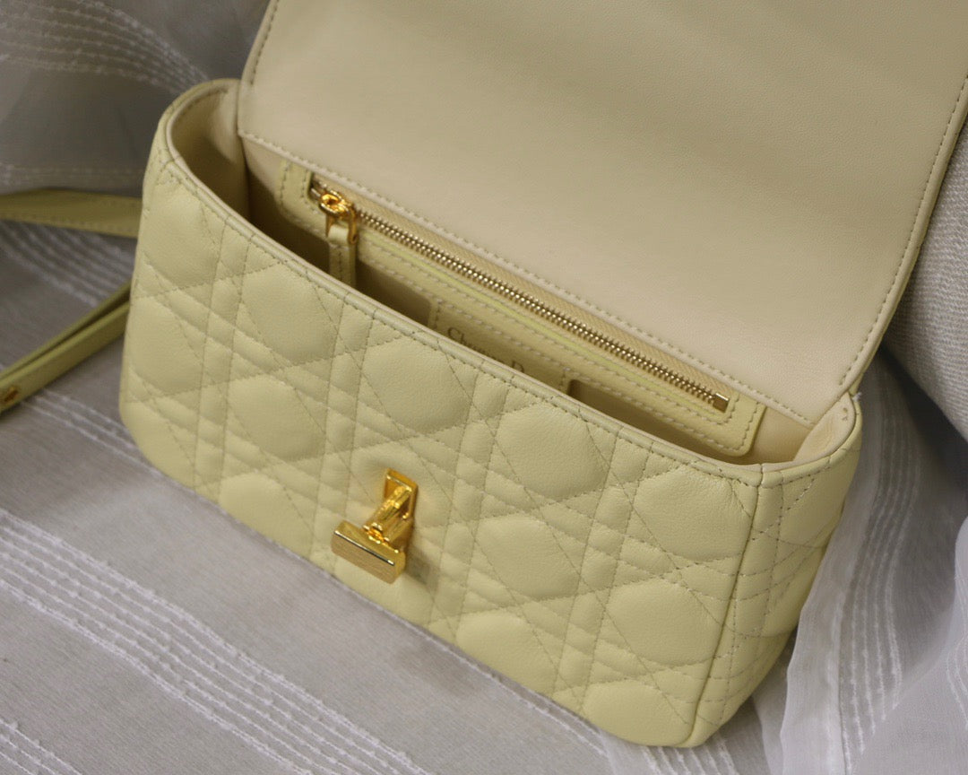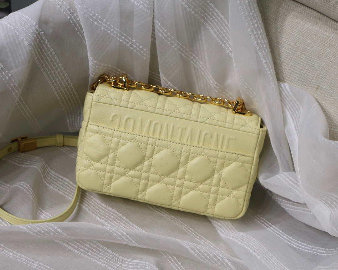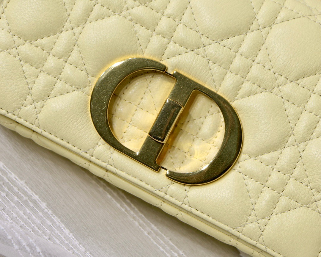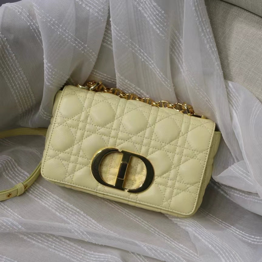 Dior Caro Small Bag In Yellow Cannage Calfskin With Gold Hardware