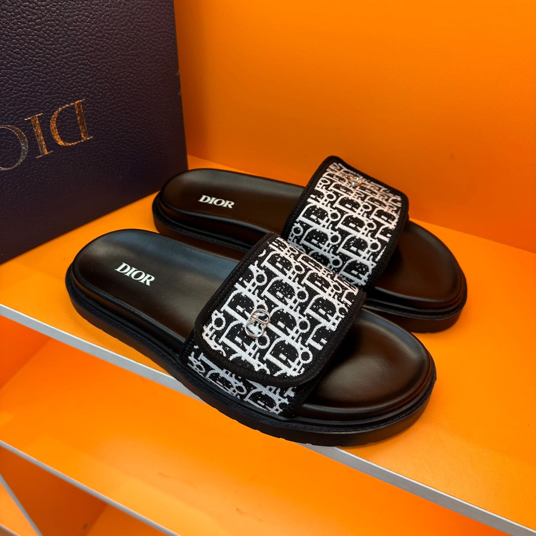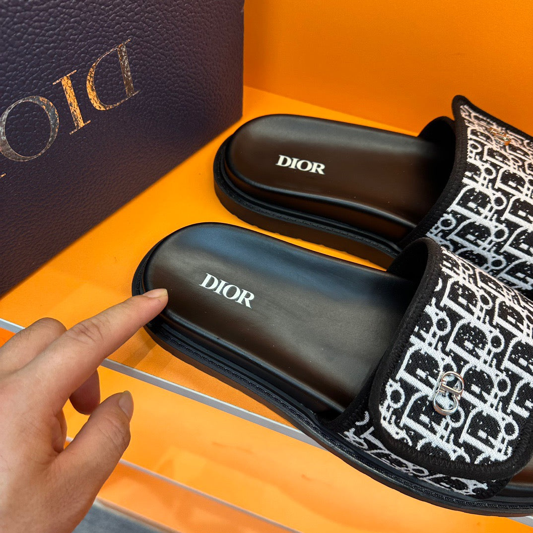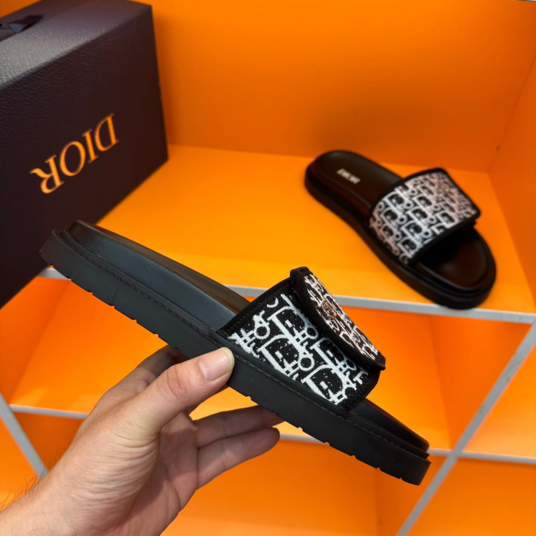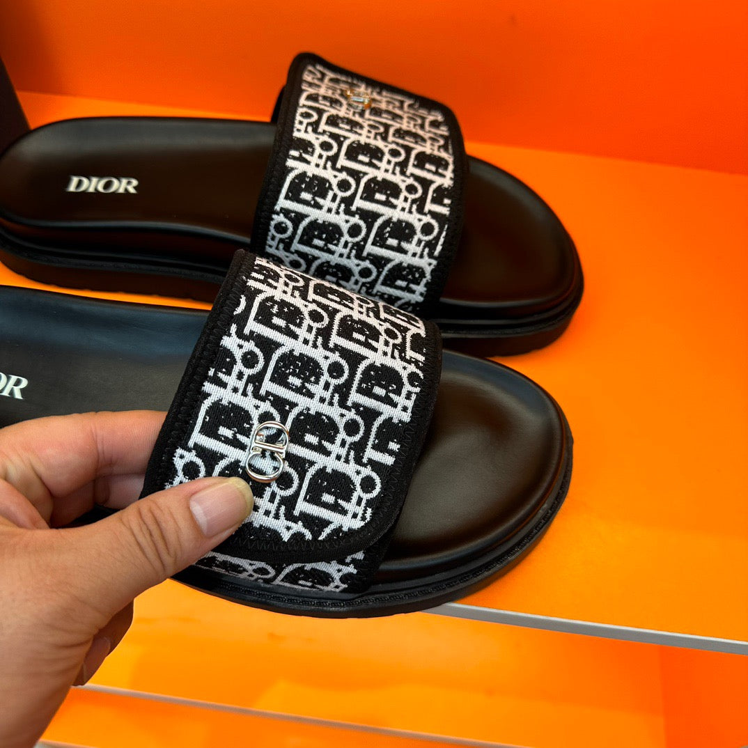 Dior Black Oblique Jacquard Velcro Slides