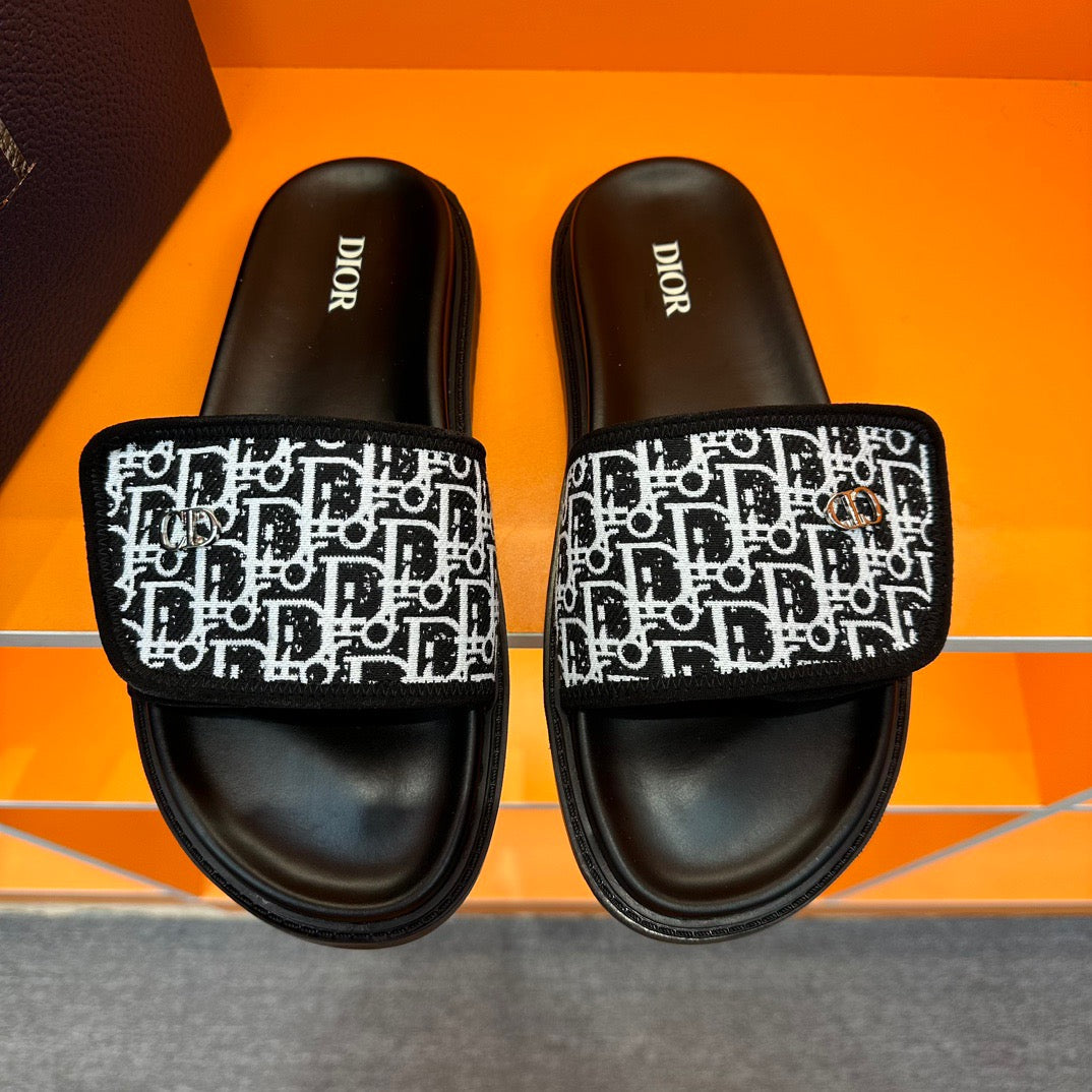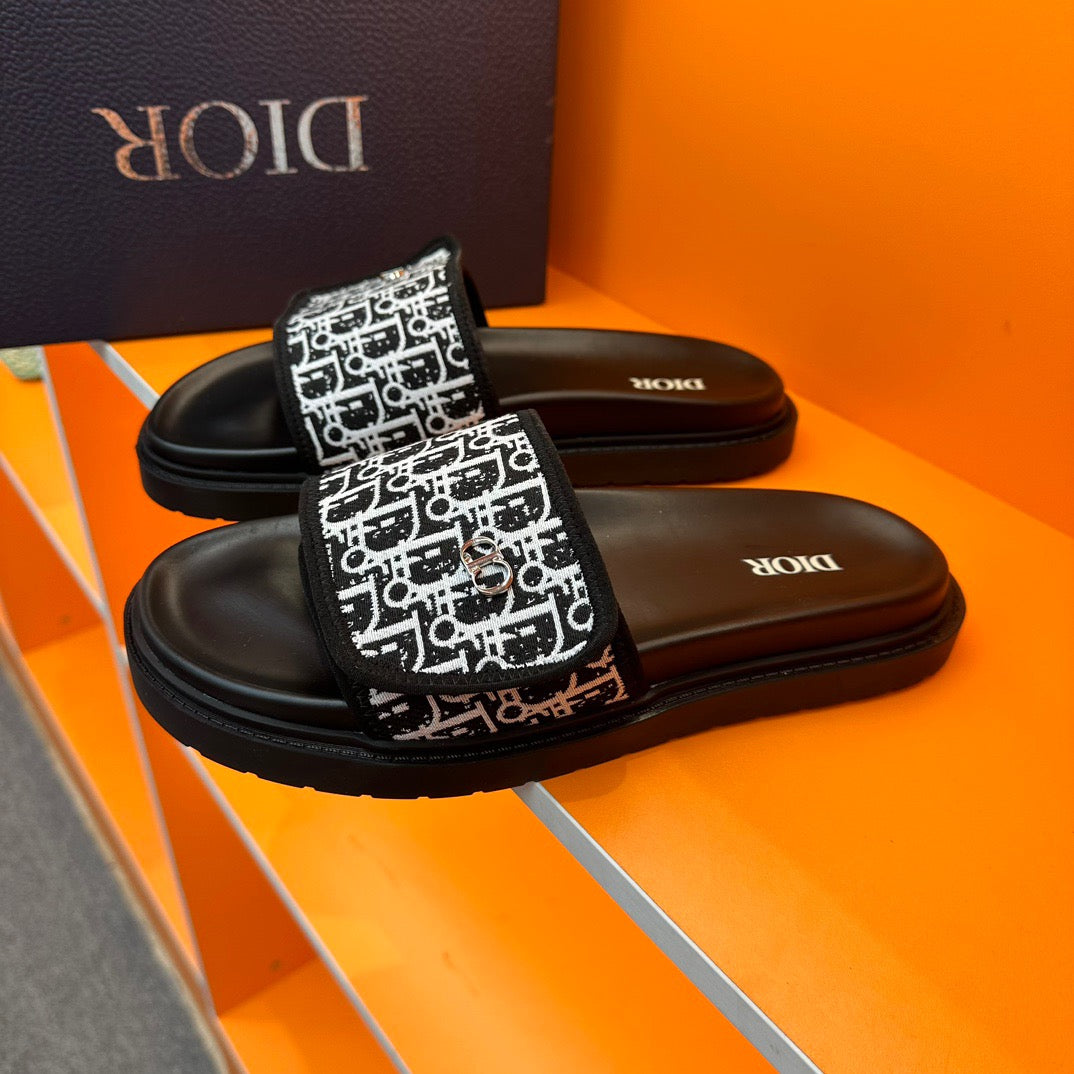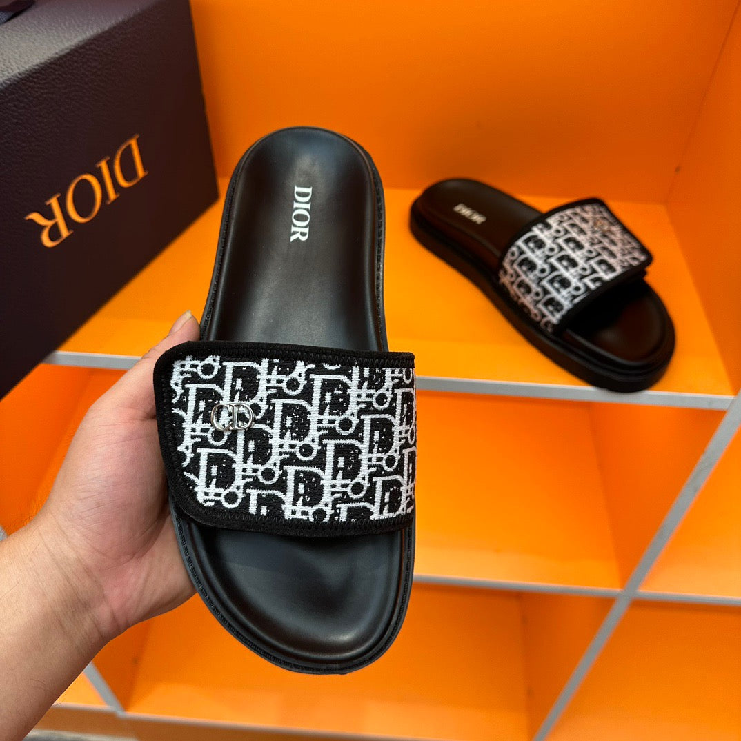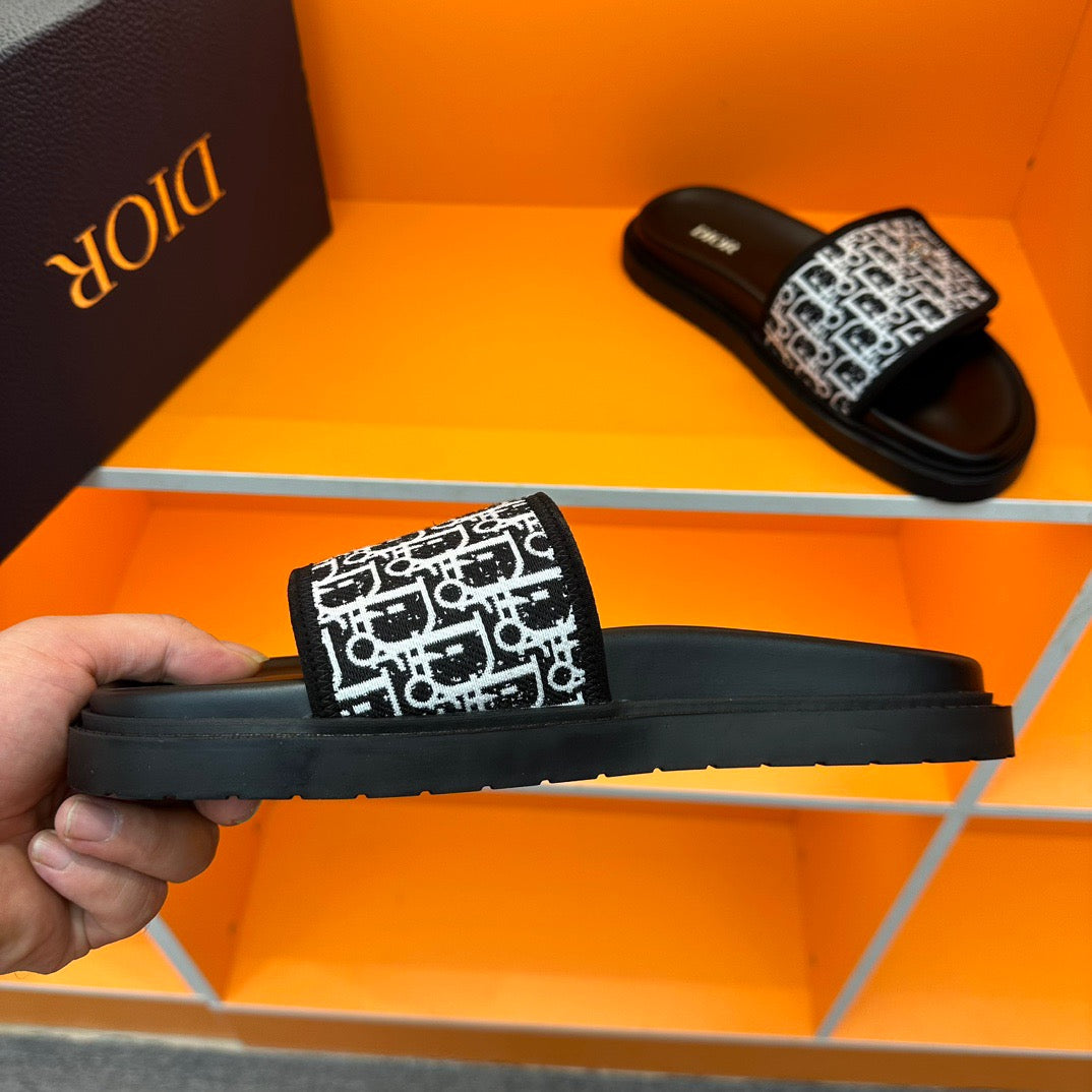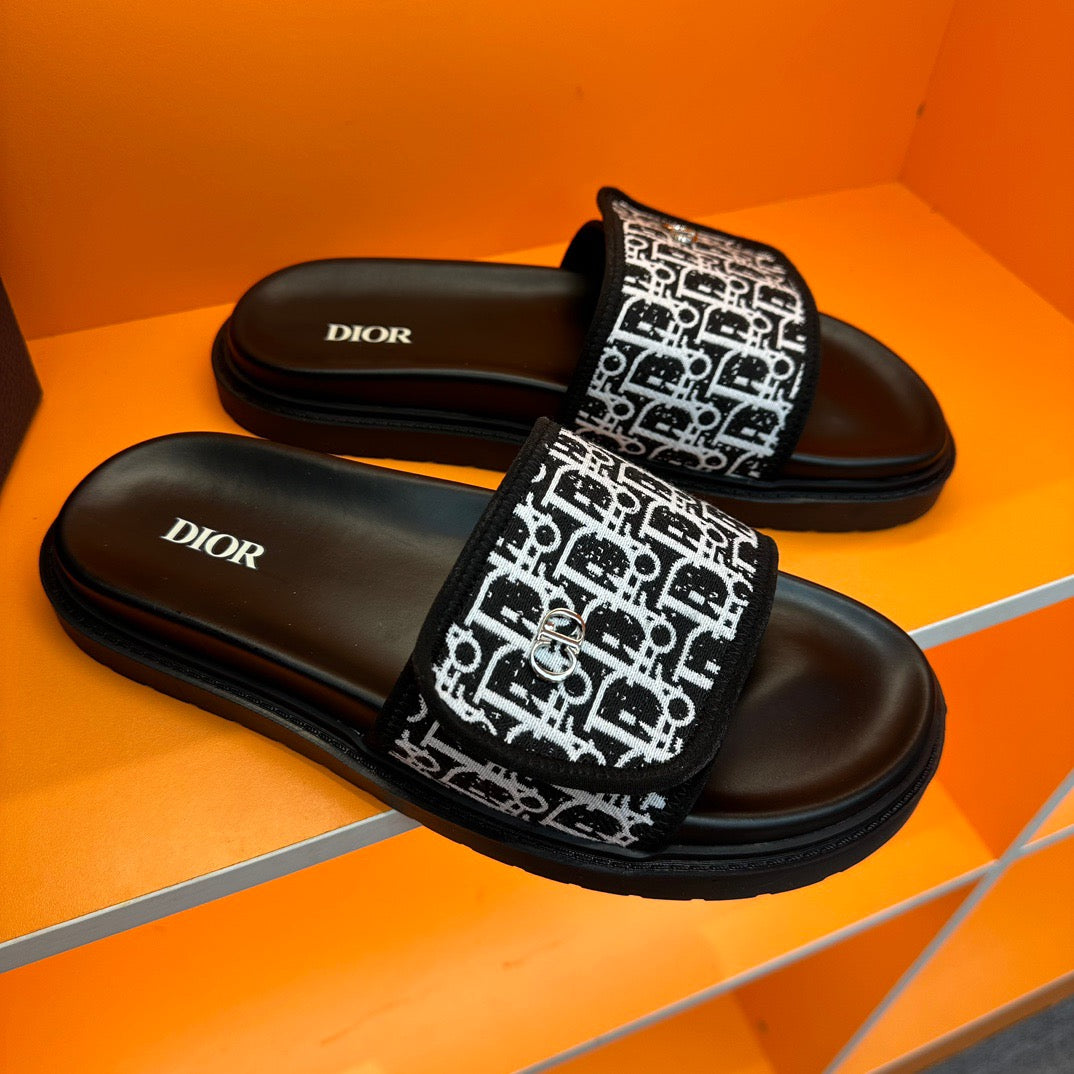 Dior Black Oblique Jacquard Velcro Slides