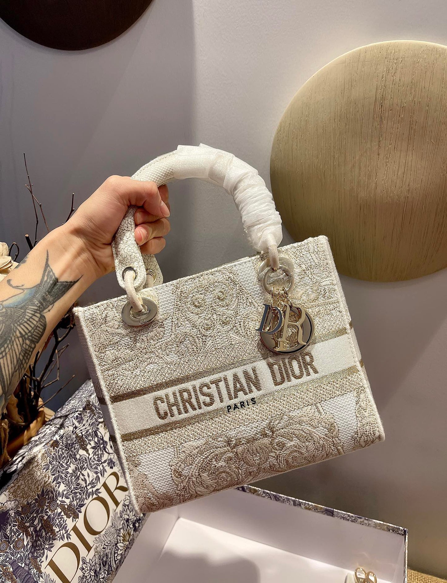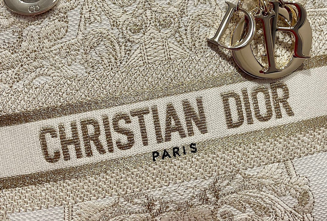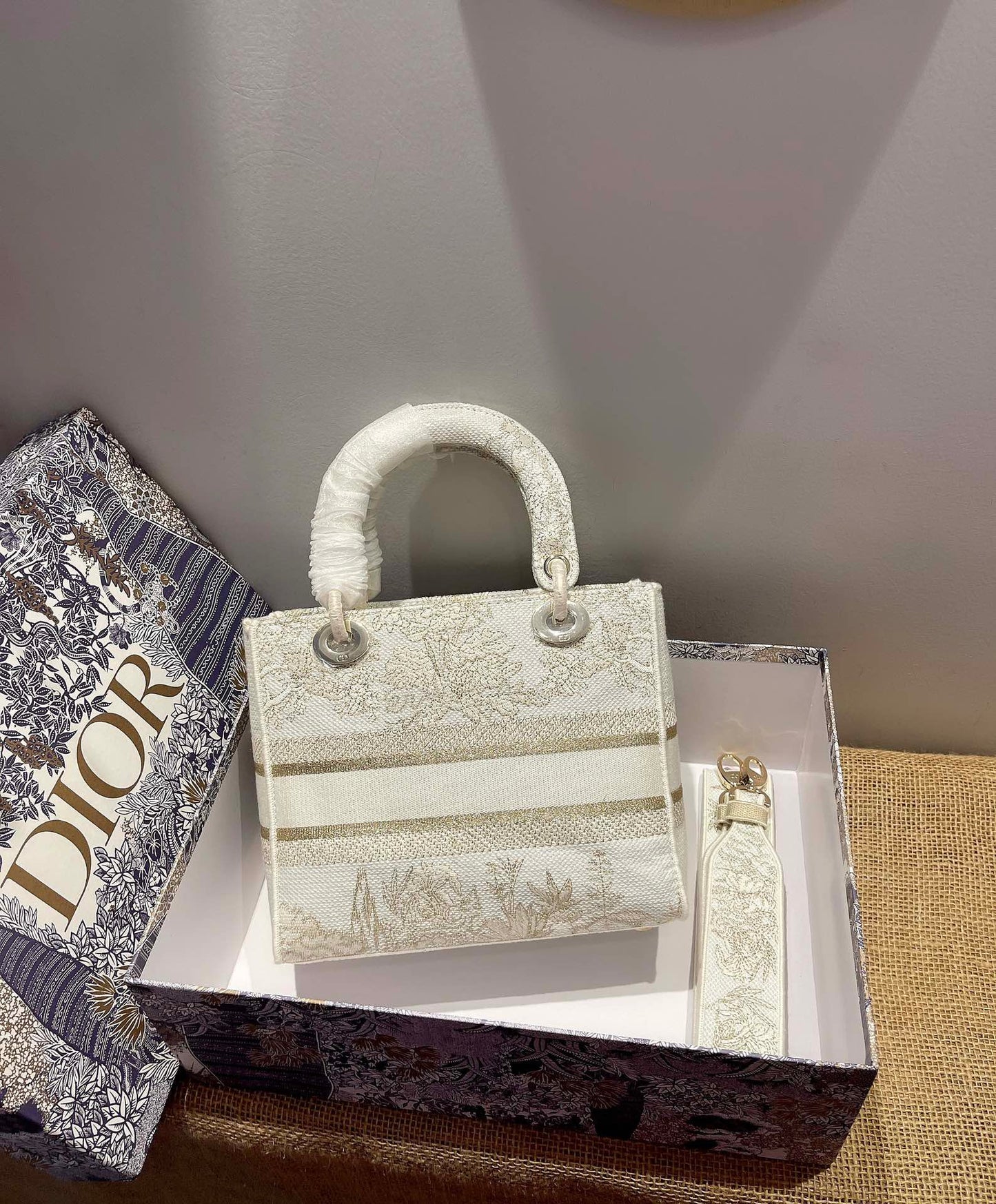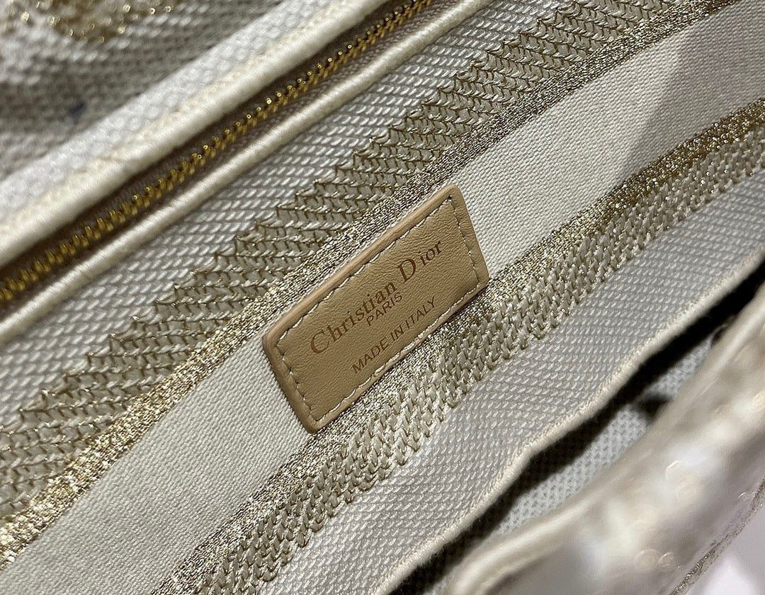 Dior Lady D-Lite Medium Bag In Gold Toile de Jouy Embroidery