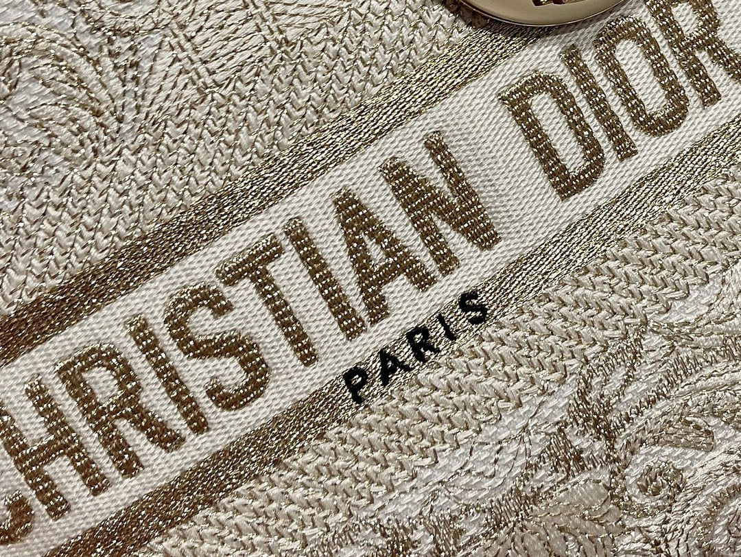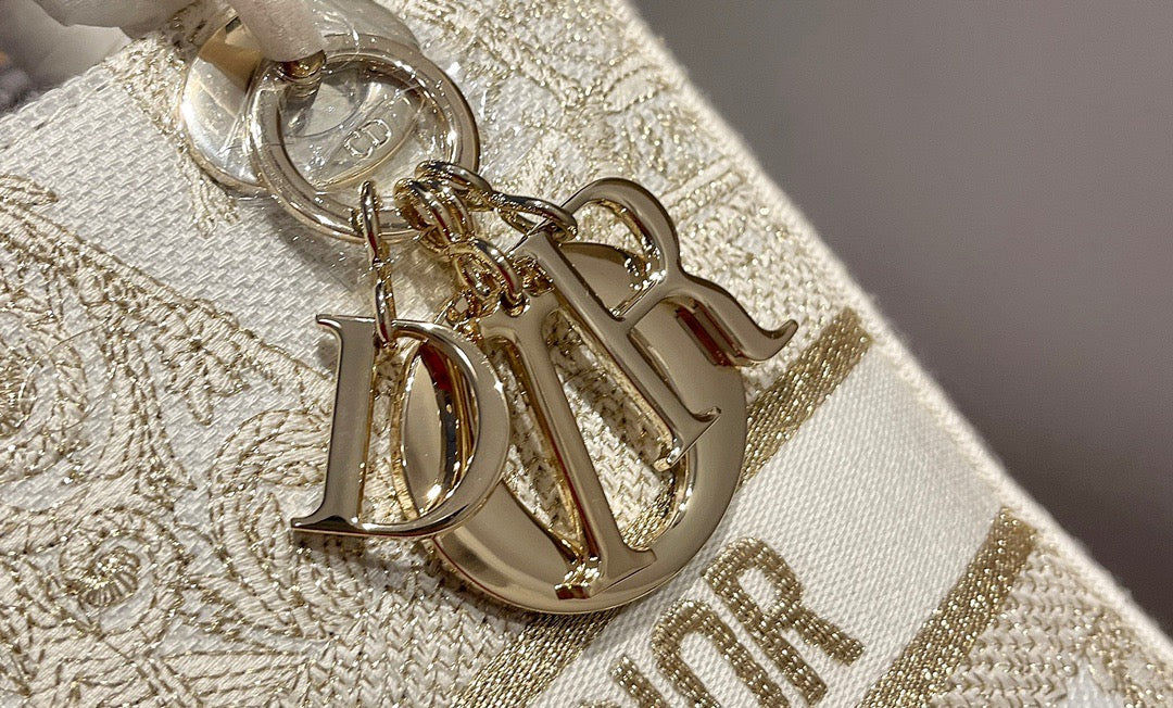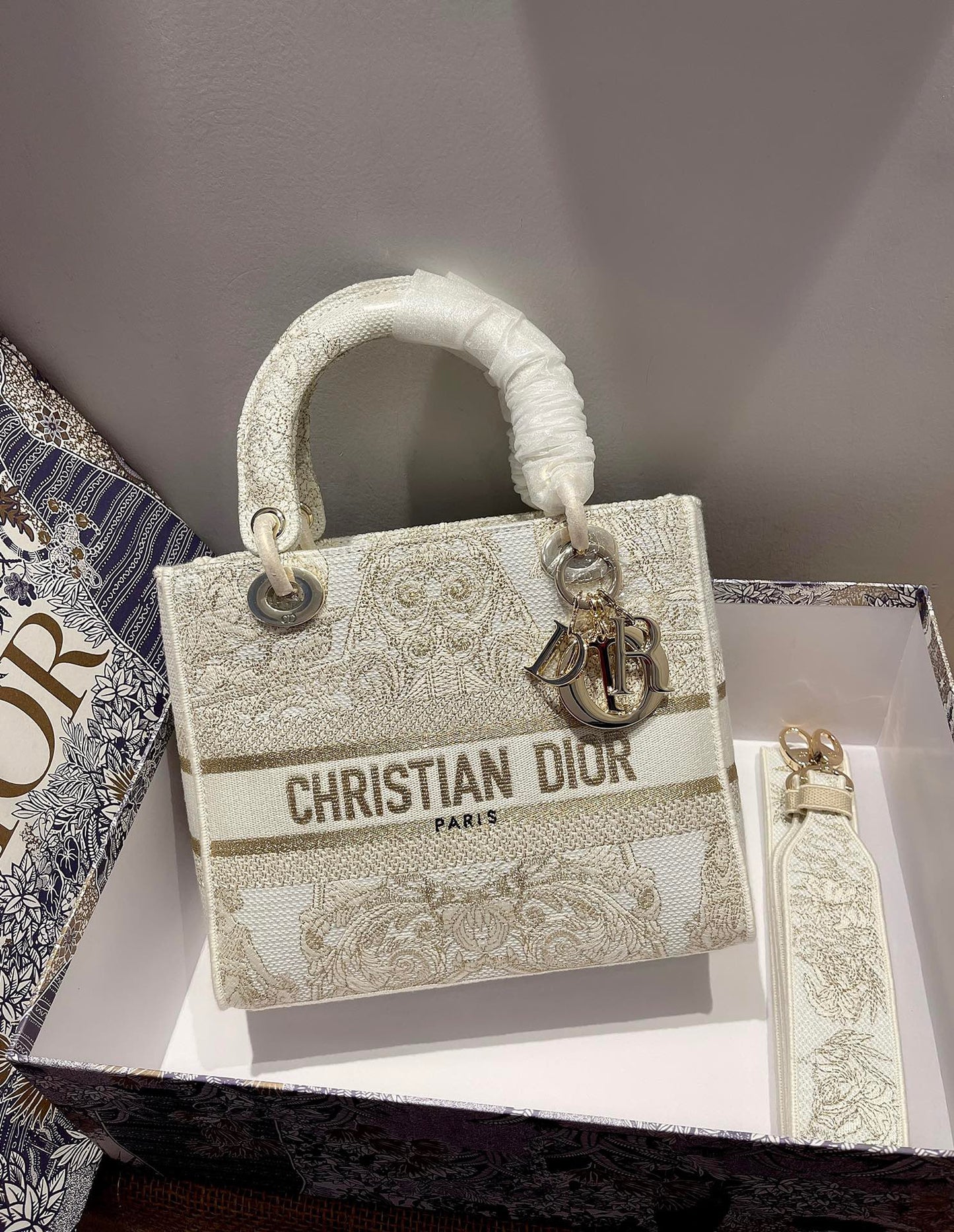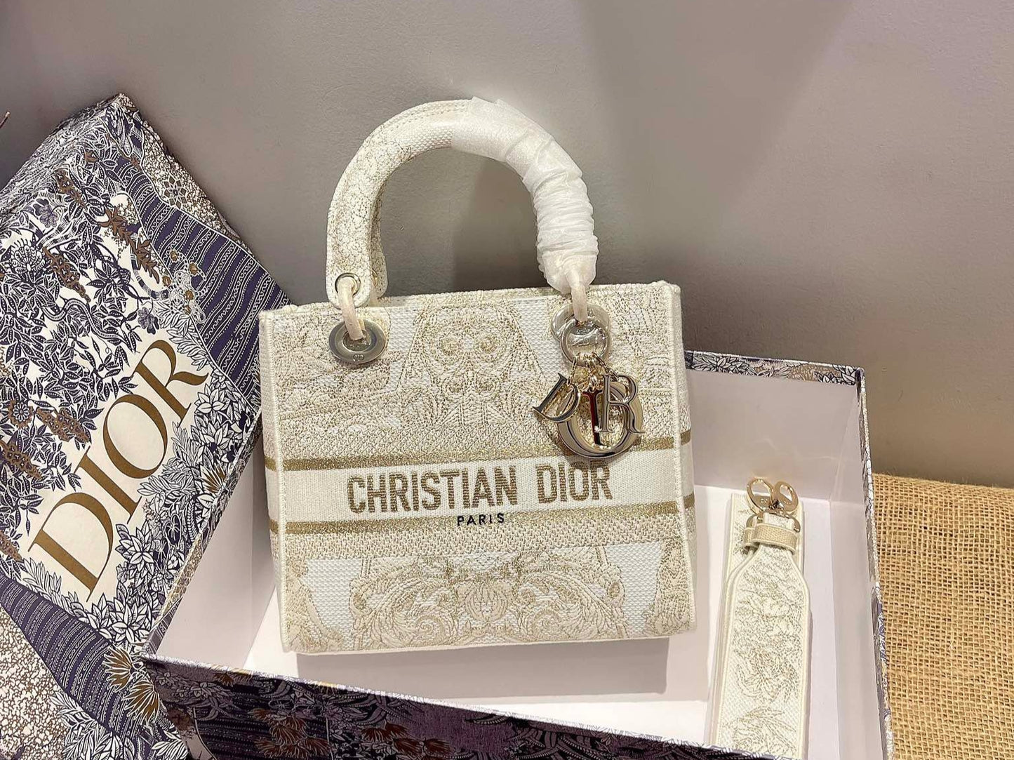 Dior Lady D-Lite Medium Bag In Gold Toile de Jouy Embroidery