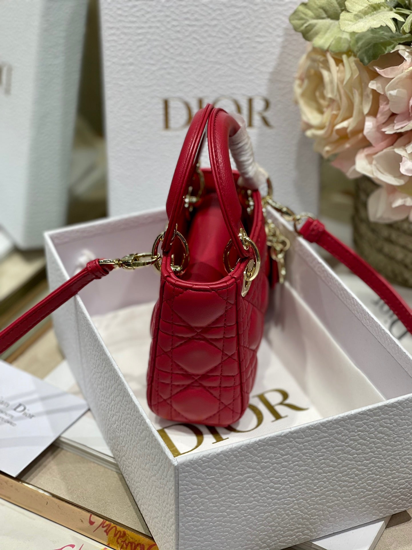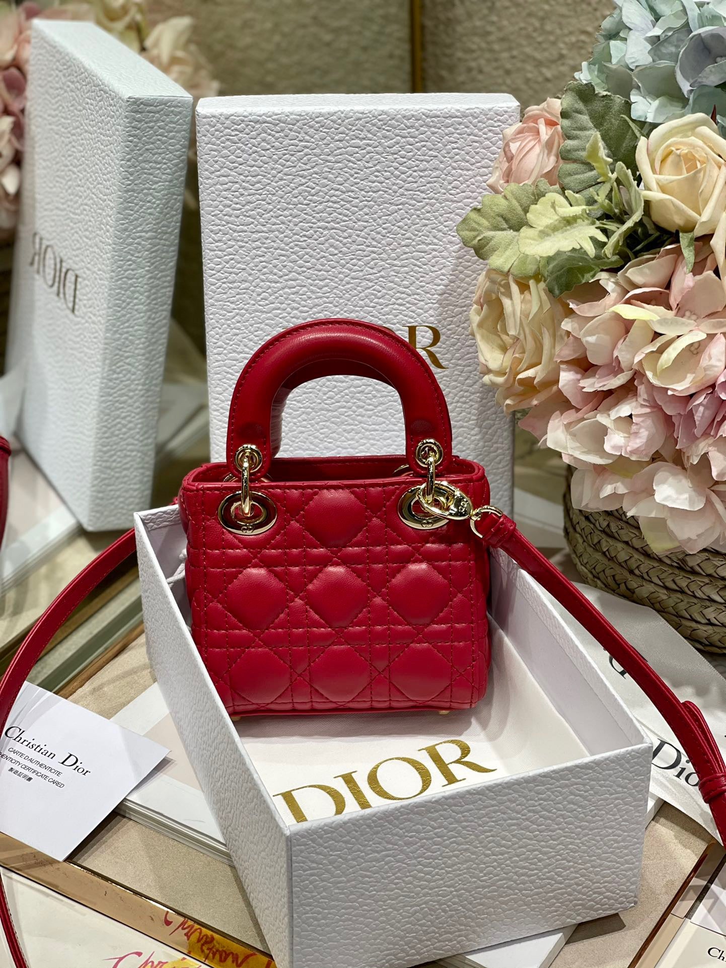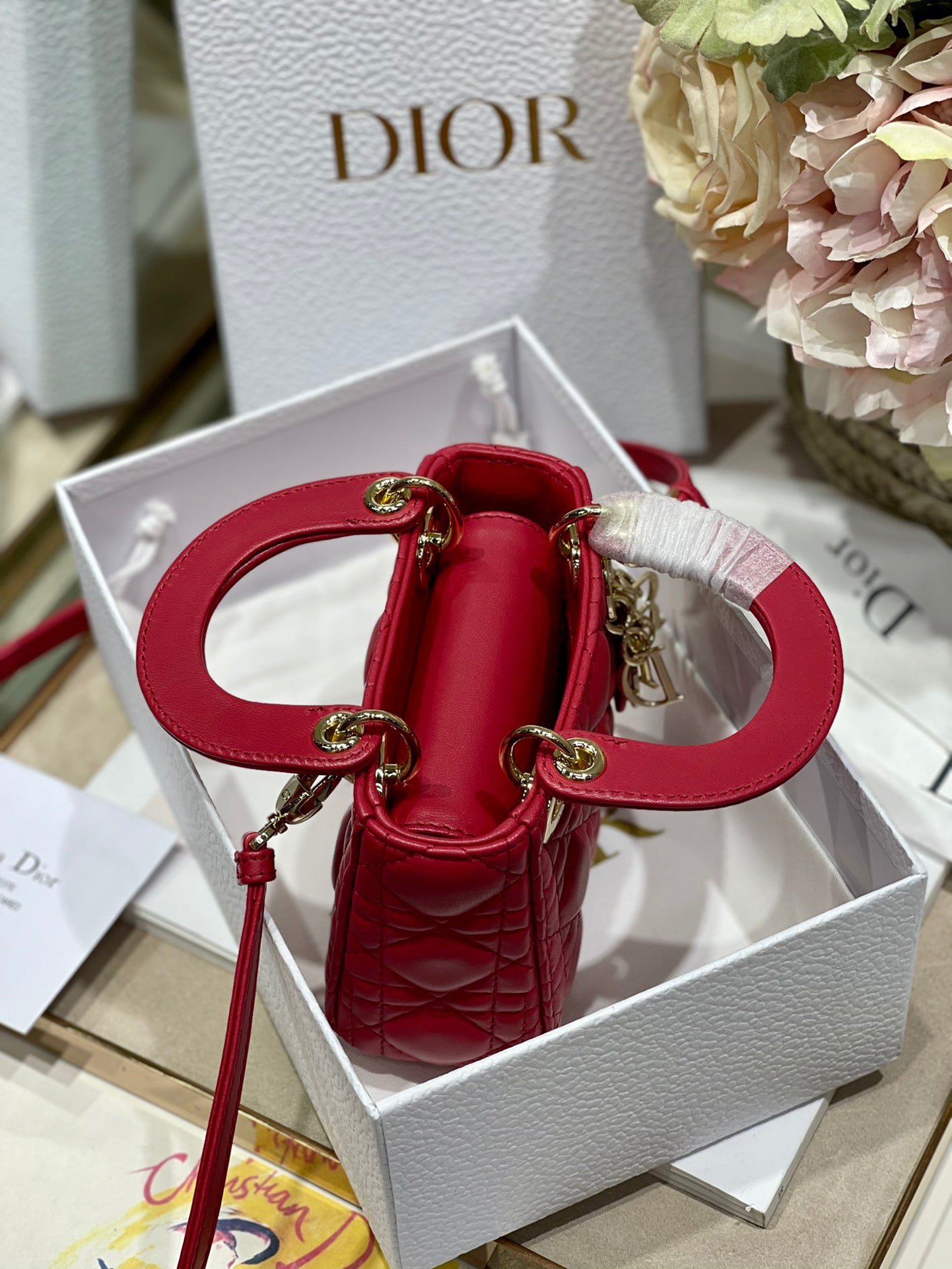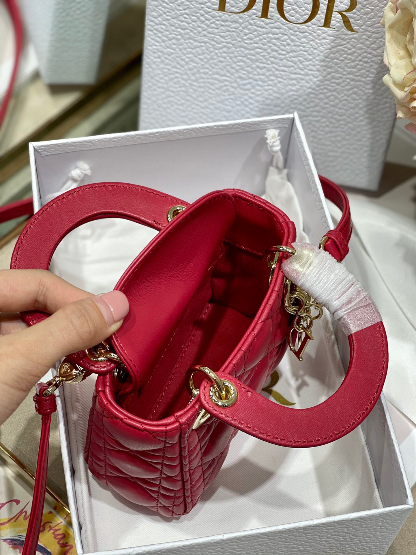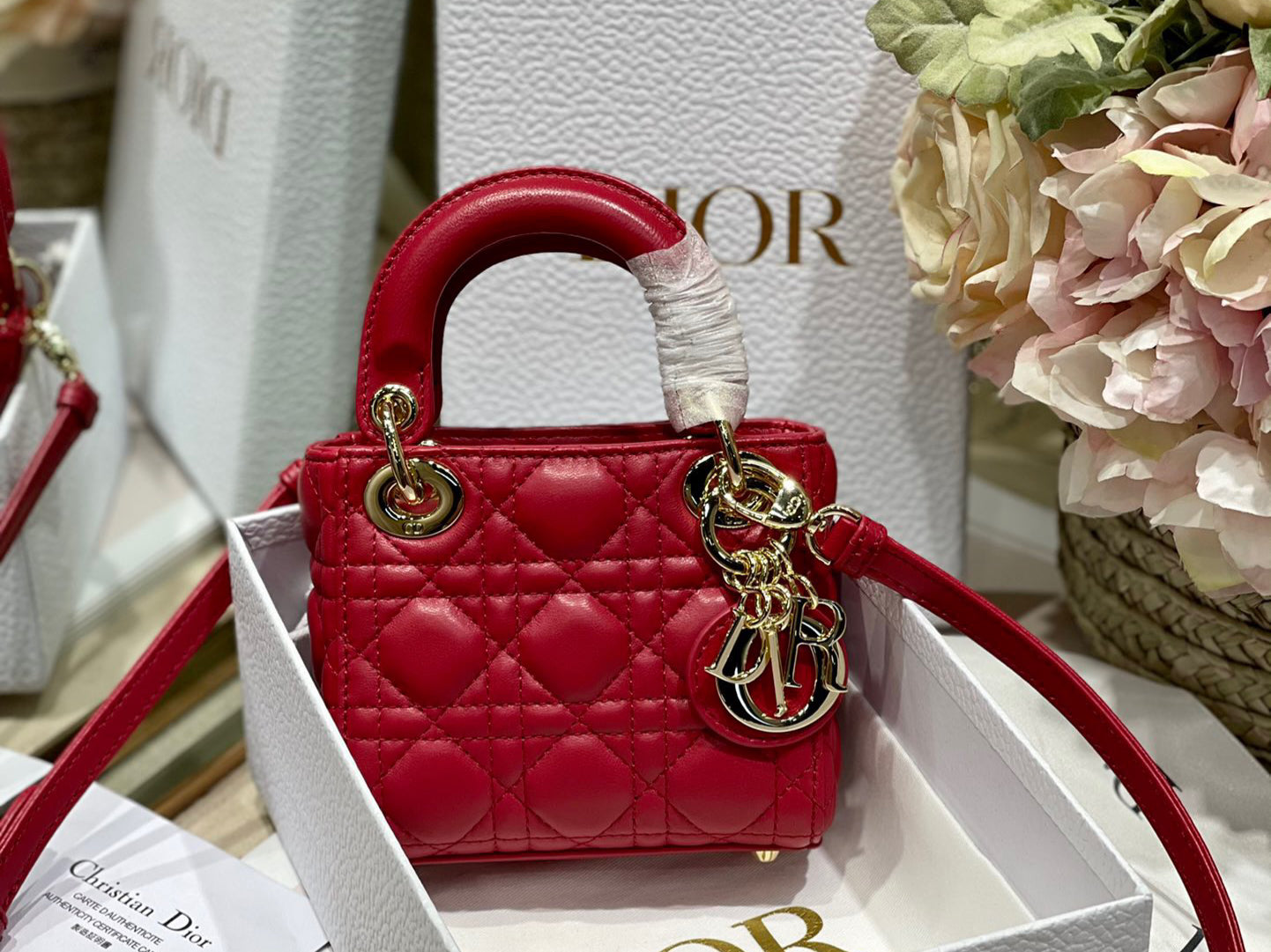 Dior Lady Dior Mini Chain Bag With Chain In Red Calfskin
