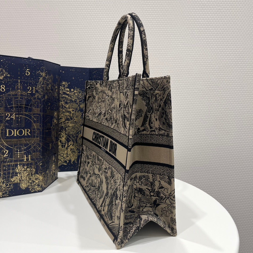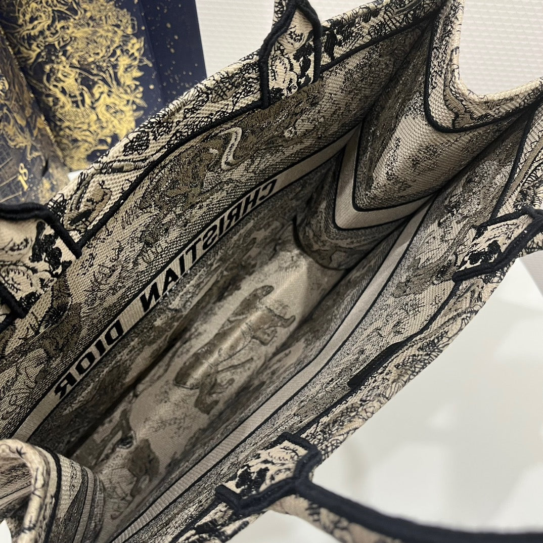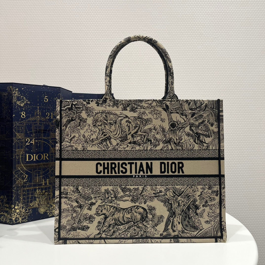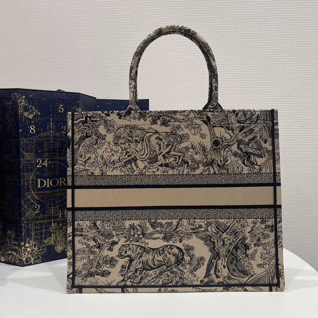 Dior Large Tiger Pattern Tote Bag In Beige