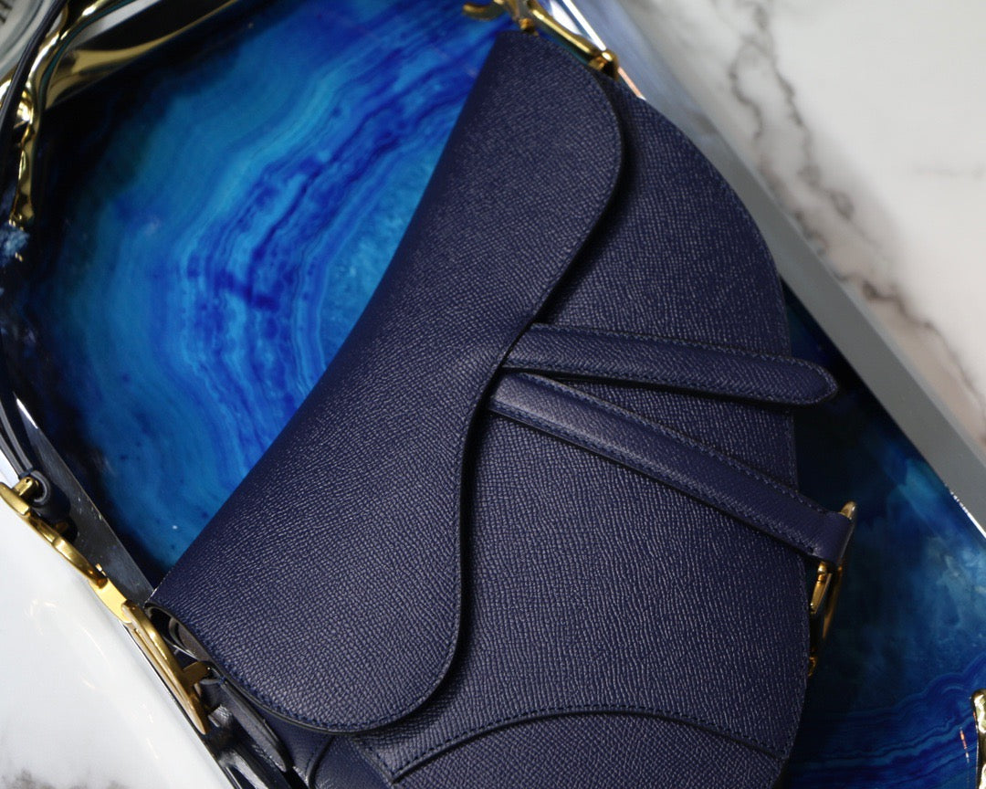 Dior Saddle Bag In Dark Blue Grained Calfskin