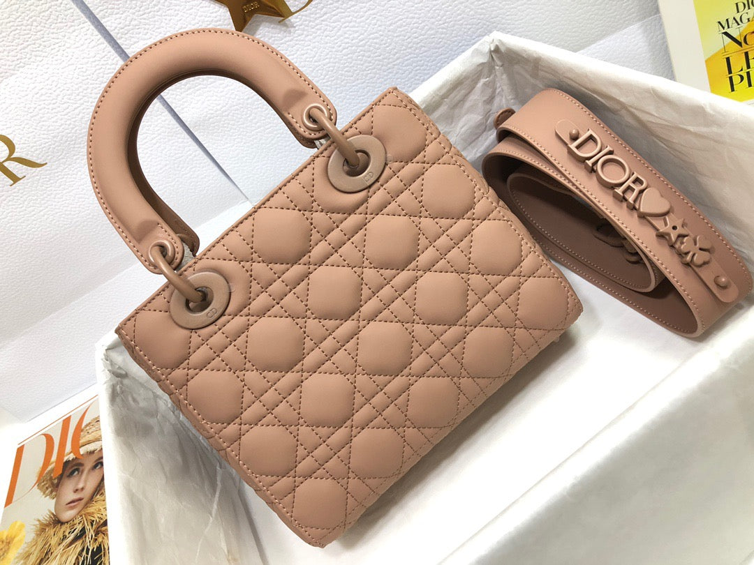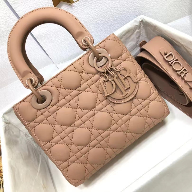 Dior Small Lady Bag In Bean Paste Powder Cannage Lambskin