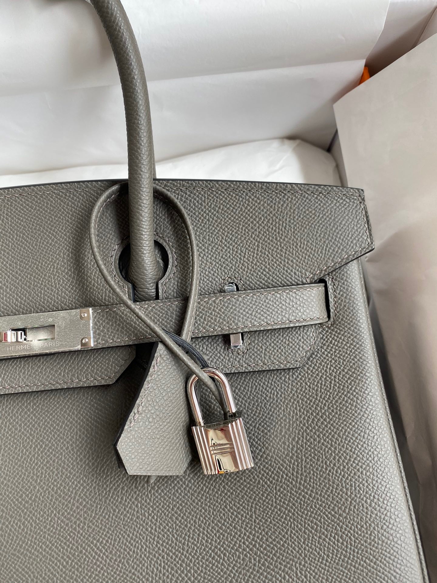 - Hermes Paris embossed on the hardware