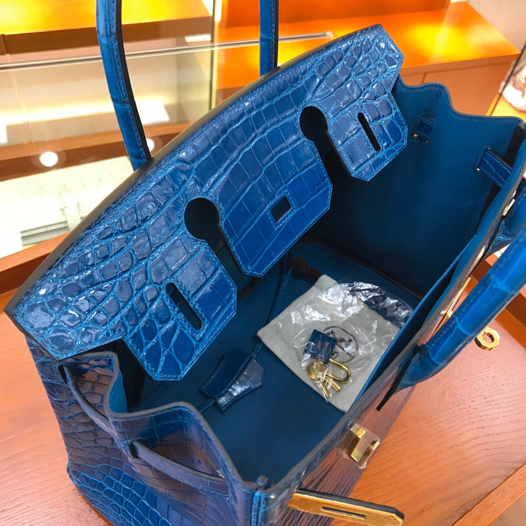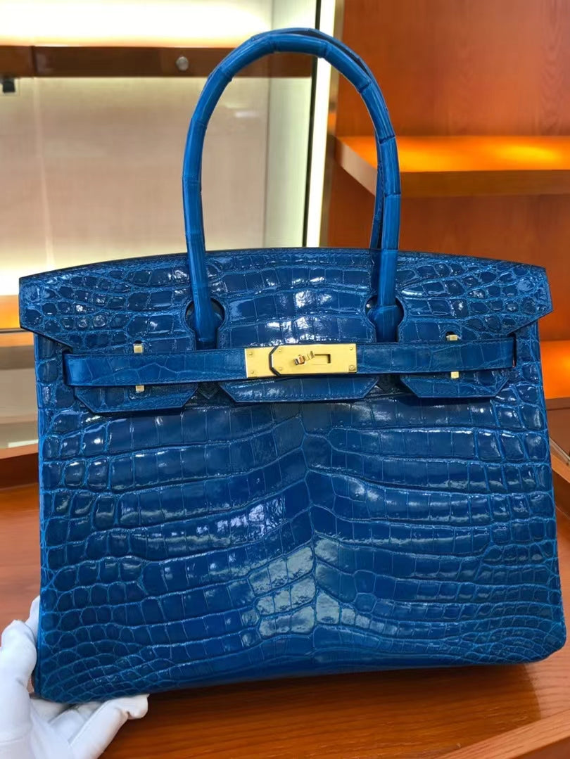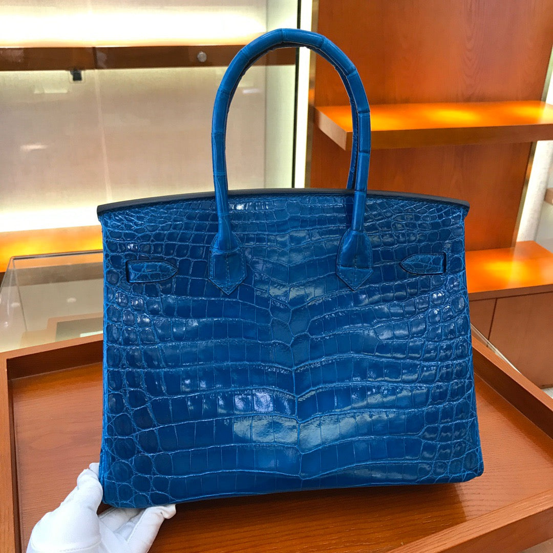 Hermes Birkin 30 Dark Blue Shiny Crocodile Leather Bag