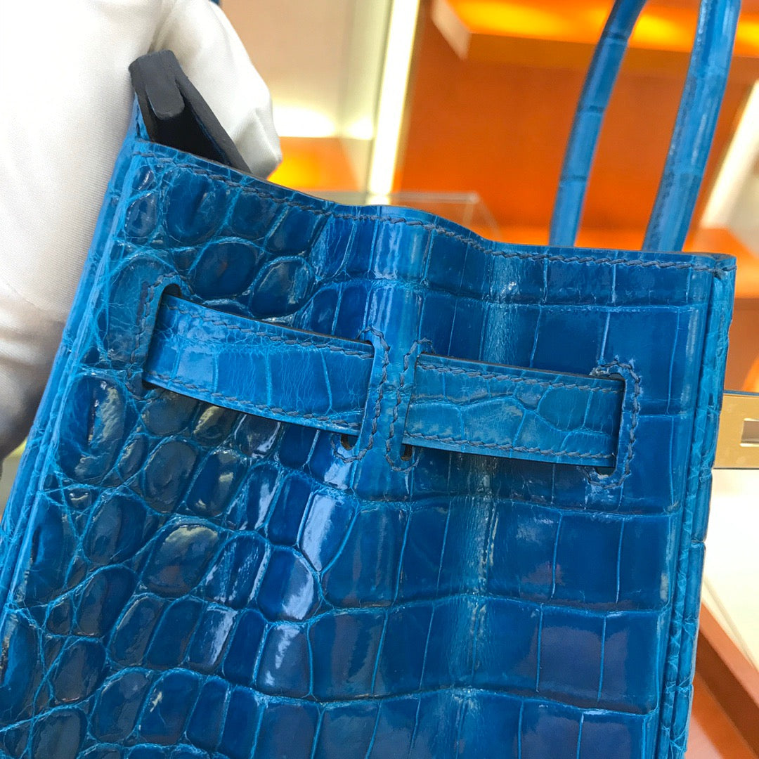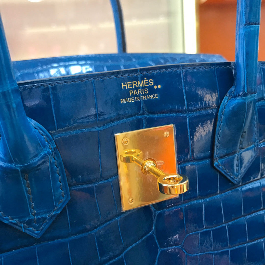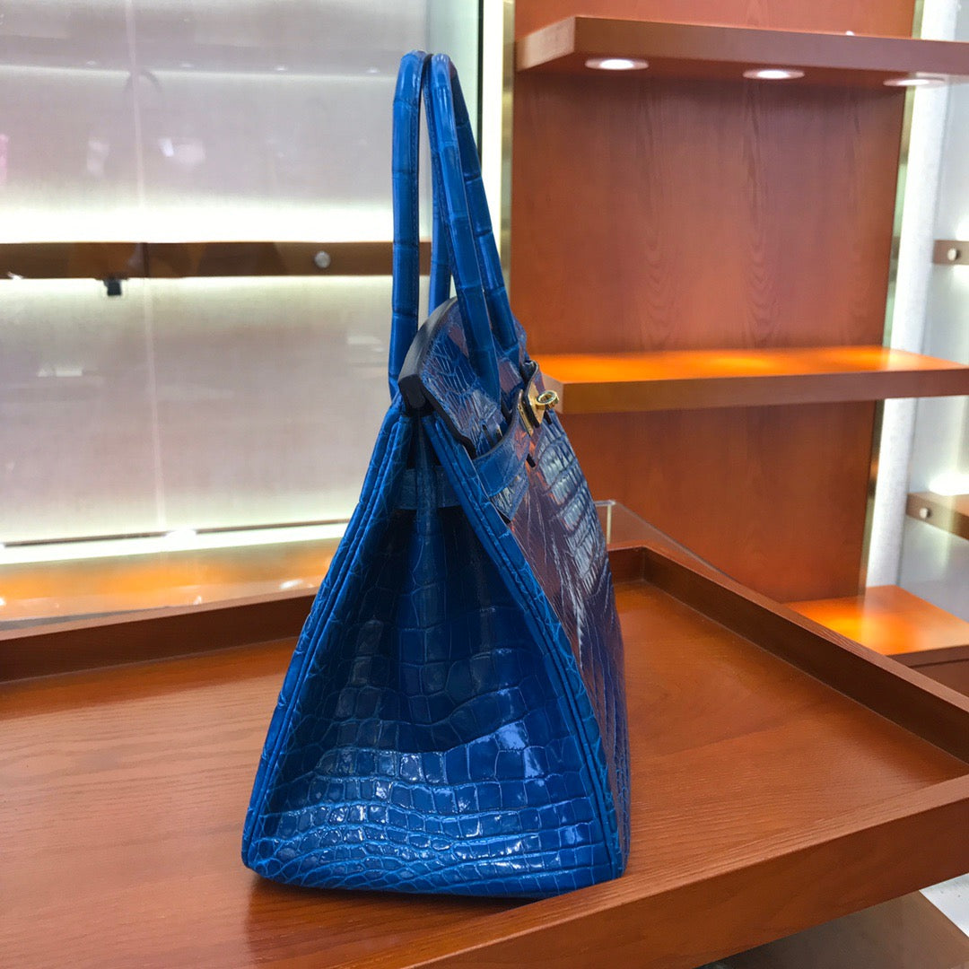 Hermes Birkin 30 Dark Blue Shiny Crocodile Leather Bag