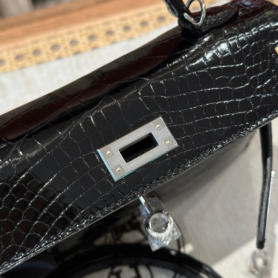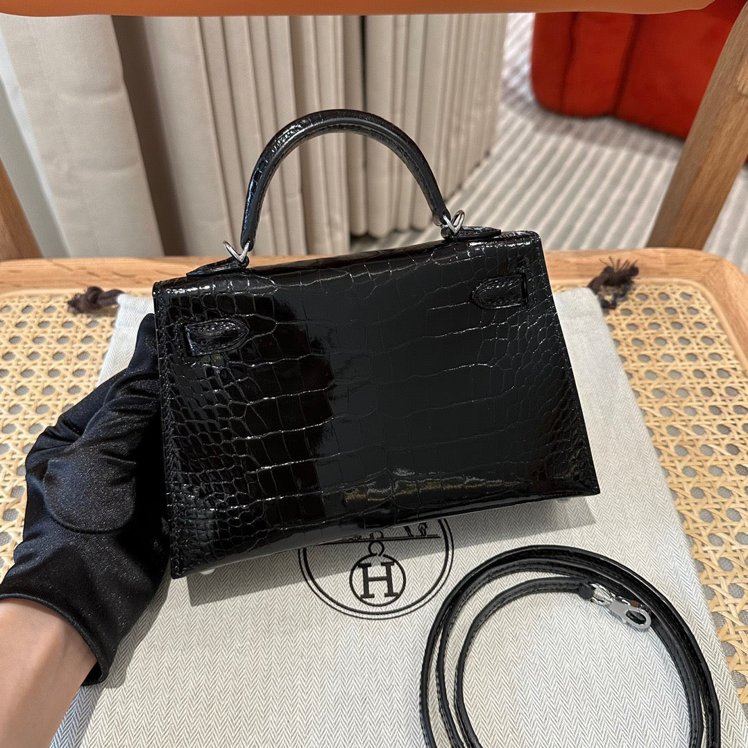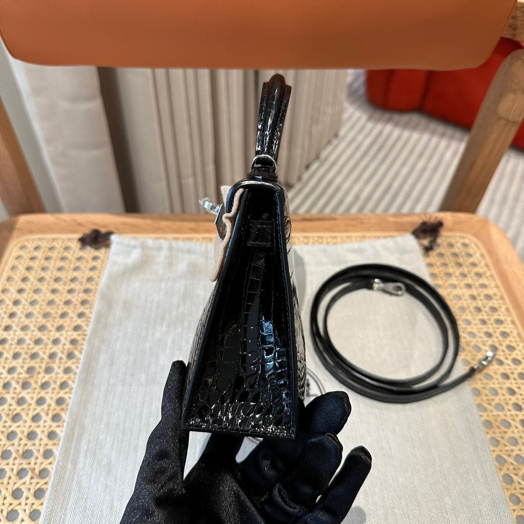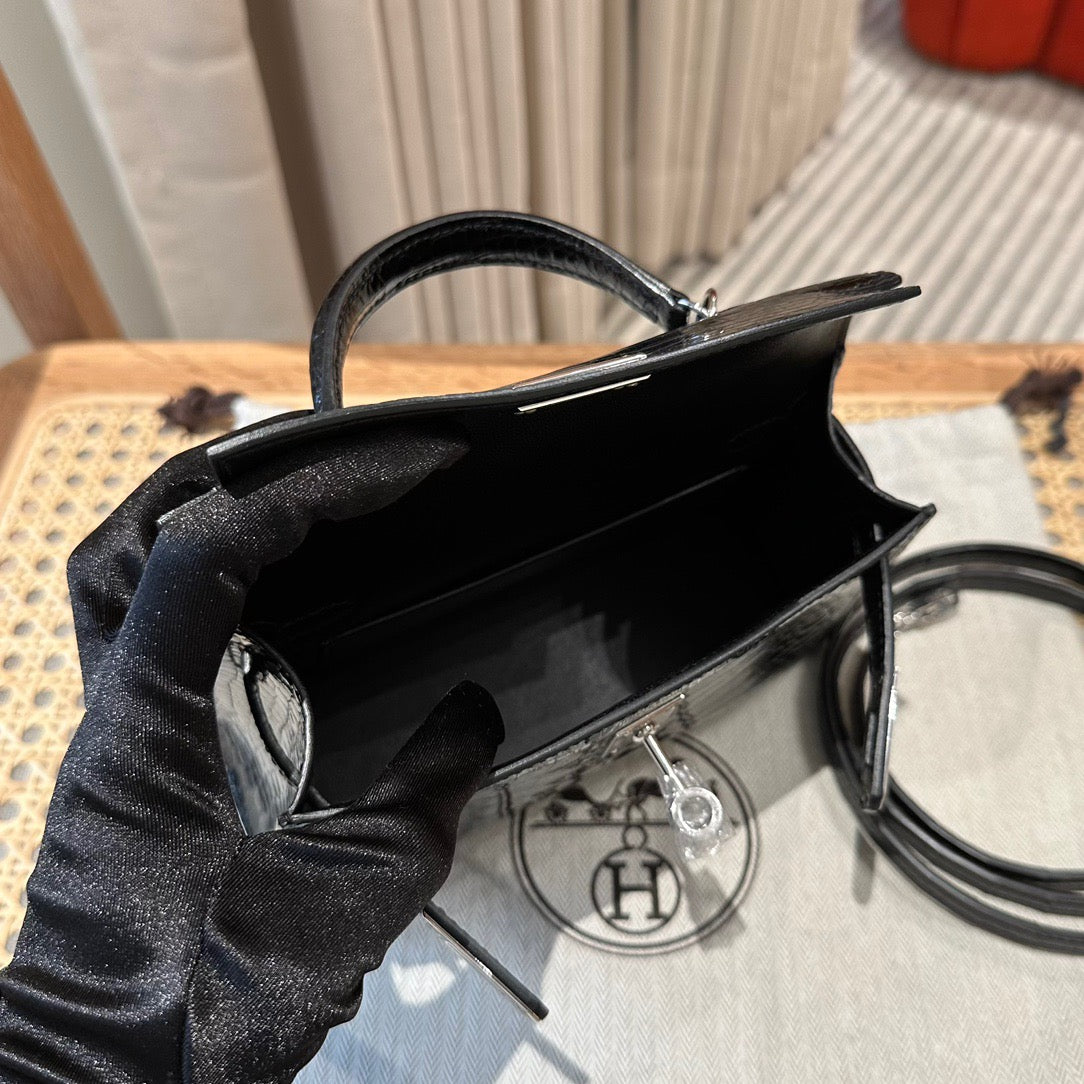 Hermes Black Crocodile Mini Kelly II 20 cm