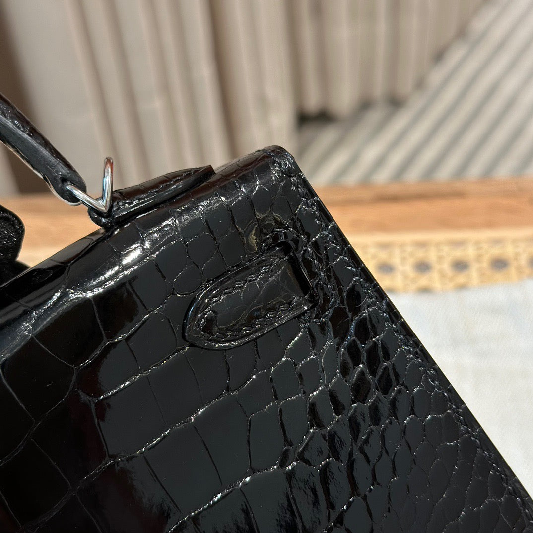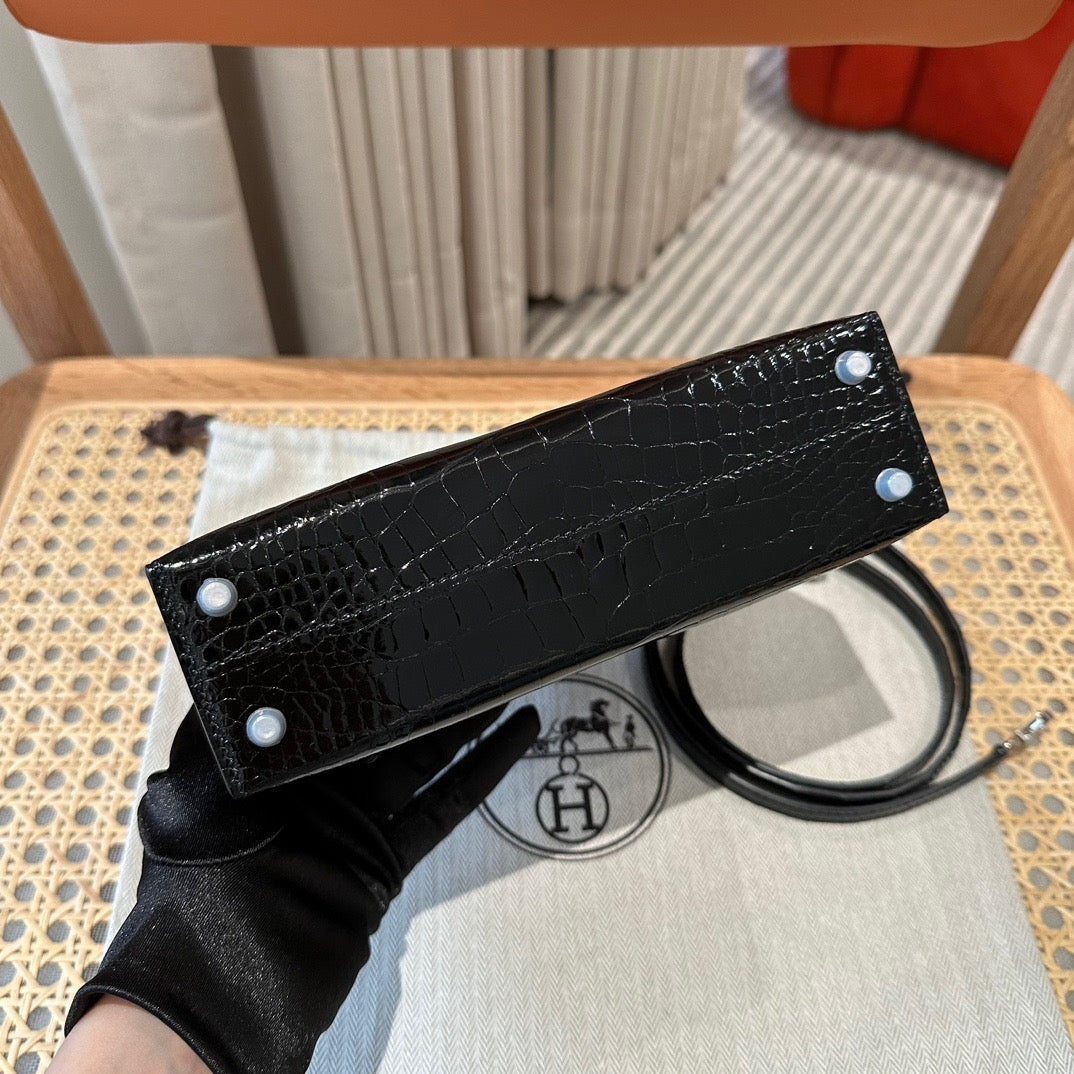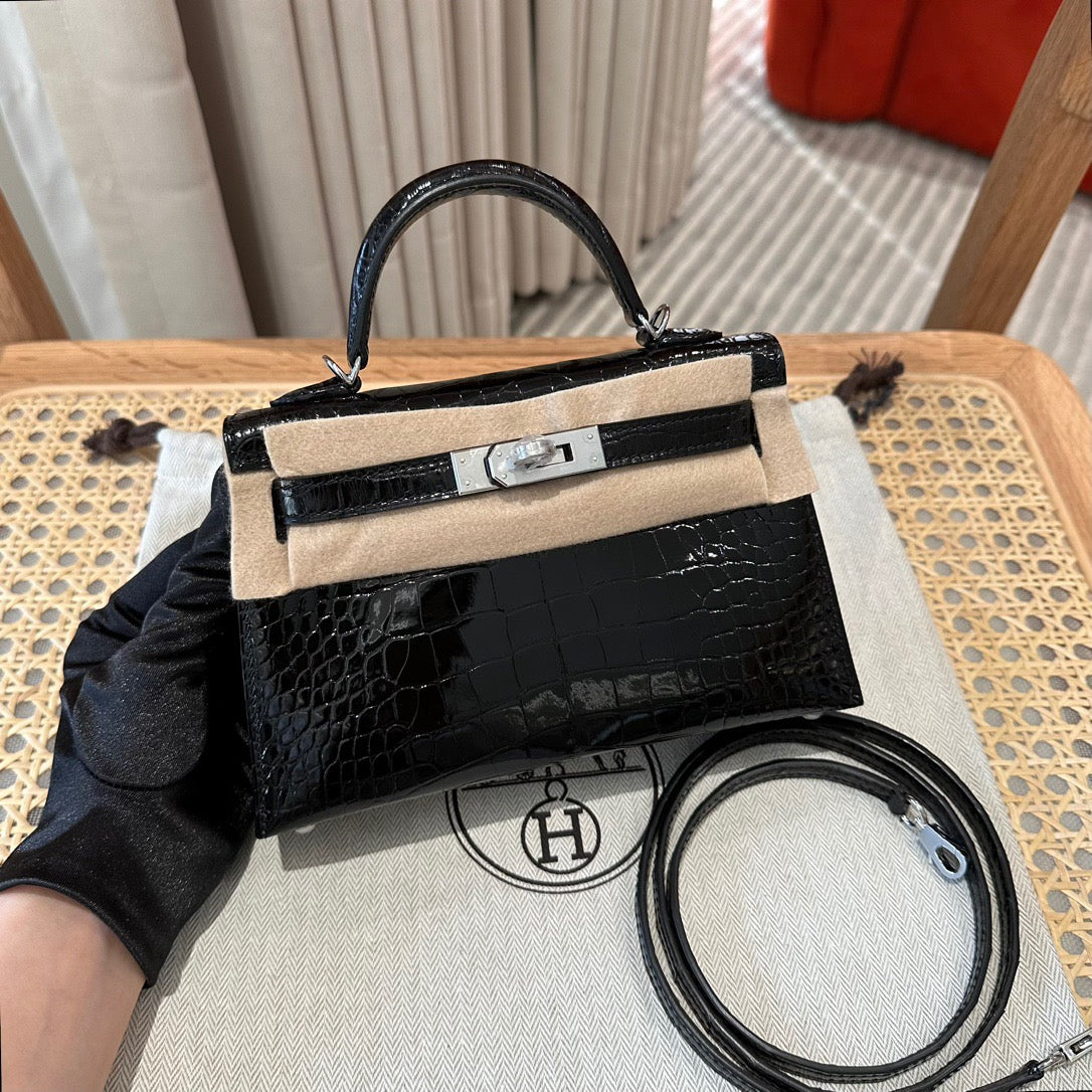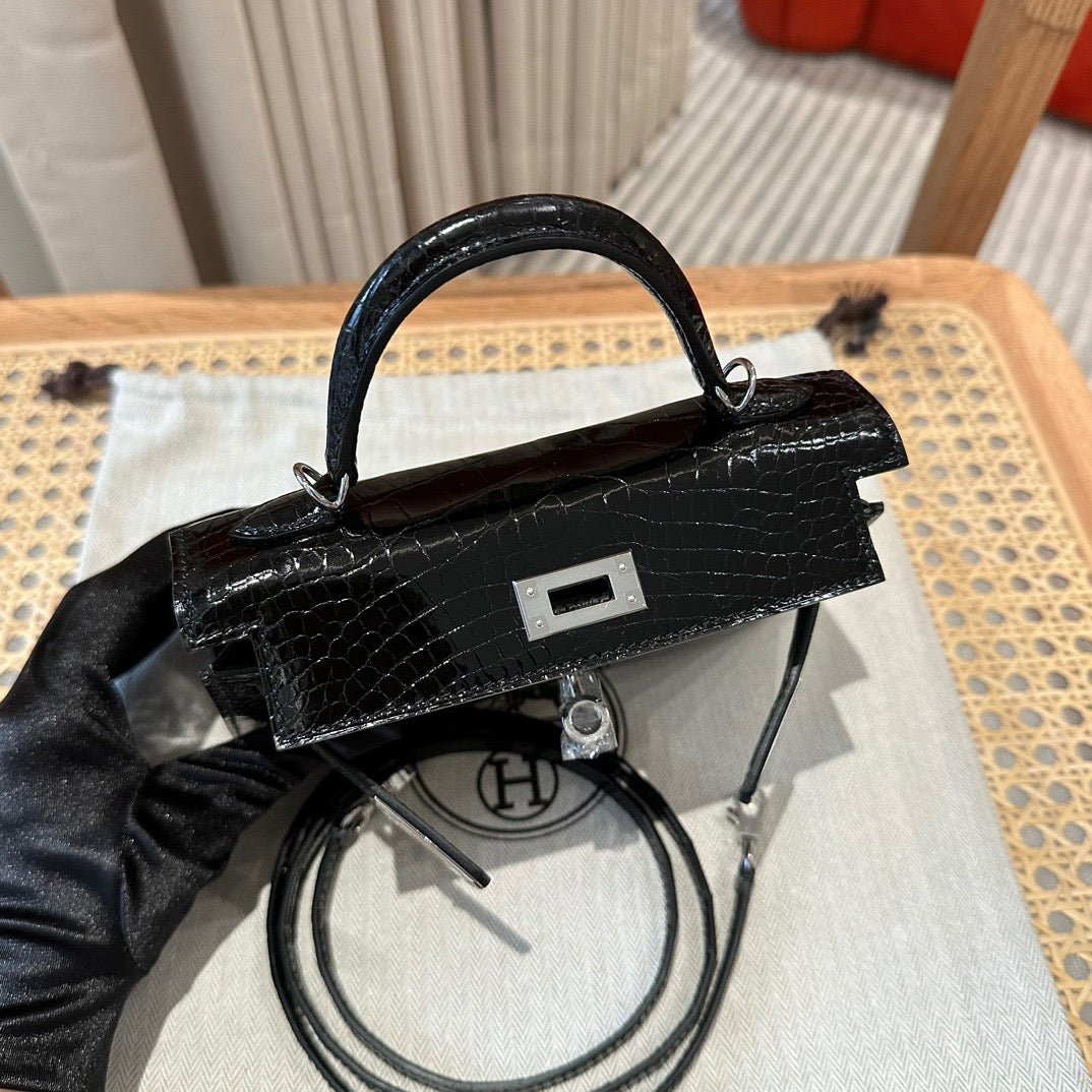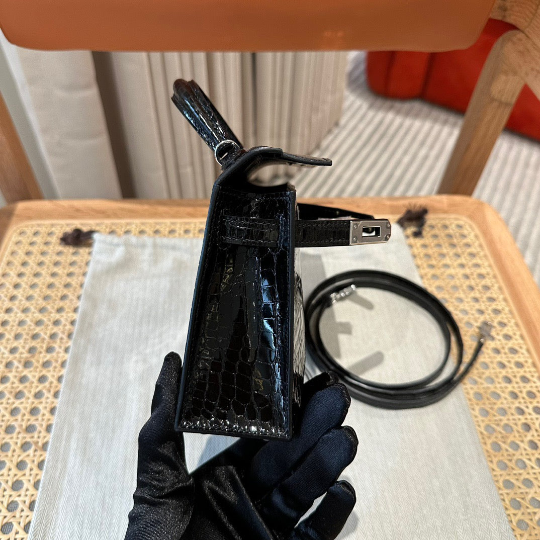 Hermes Black Crocodile Mini Kelly II 20 cm