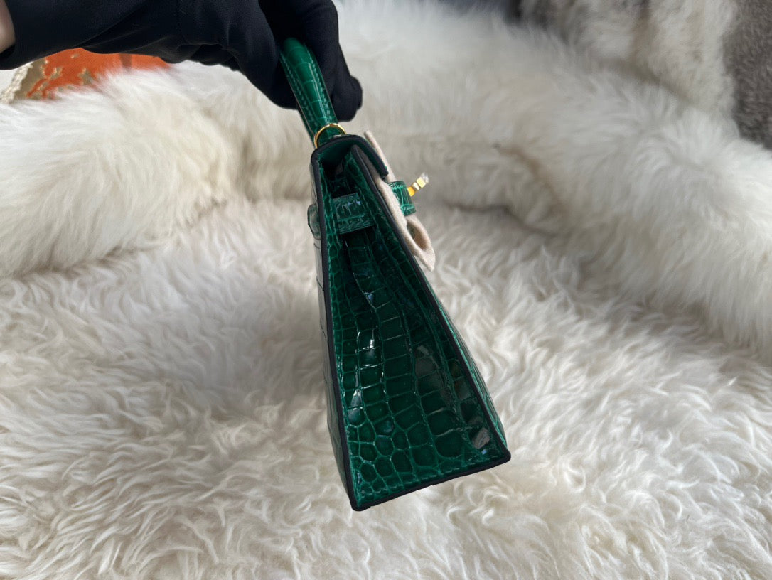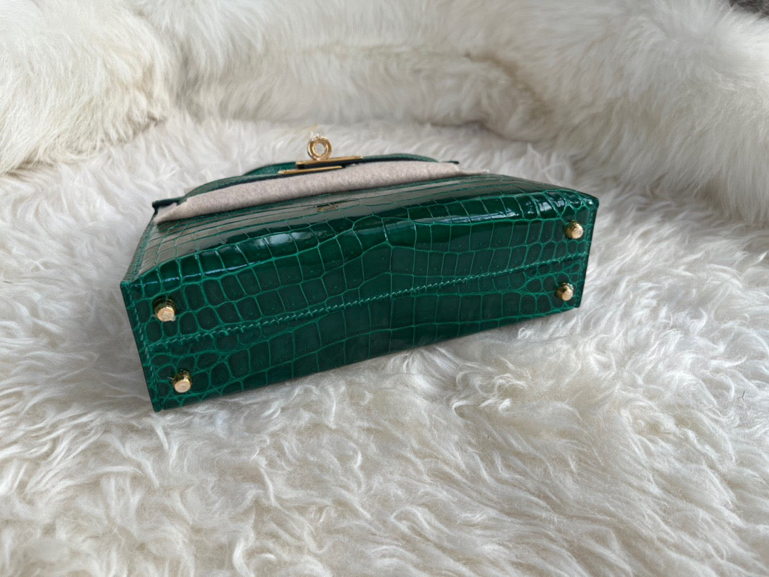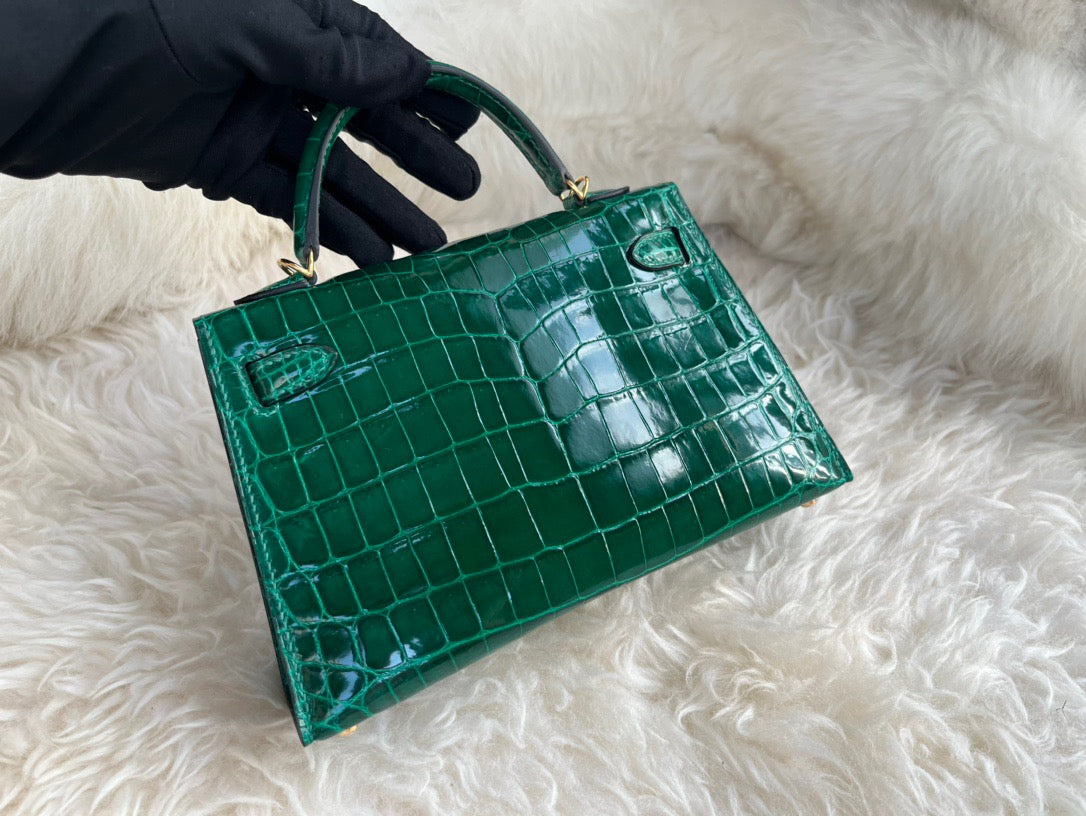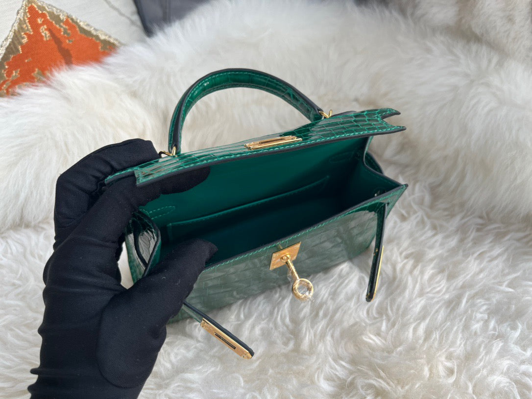 Hermes Dark Green Crocodile Mini Kelly II 20 cm