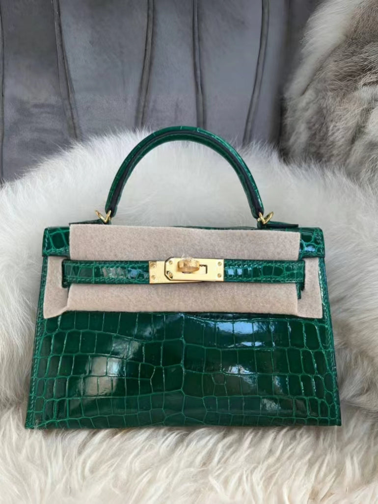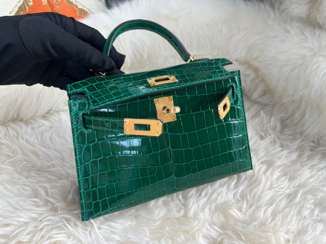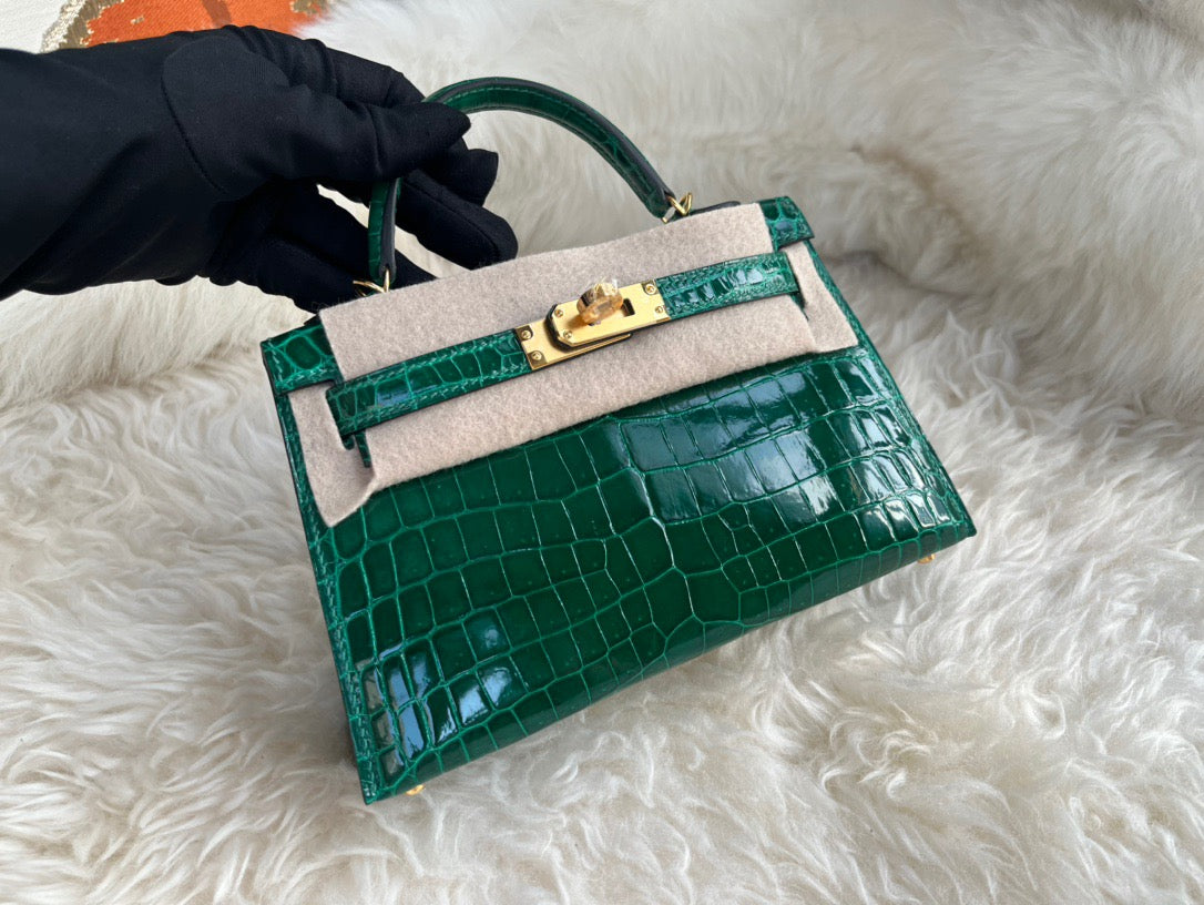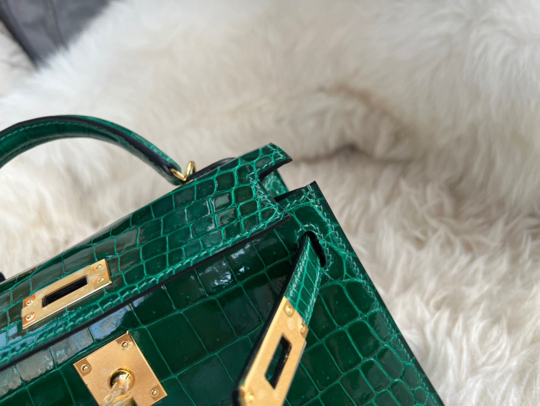 Hermes Dark Green Crocodile Mini Kelly II 20 cm