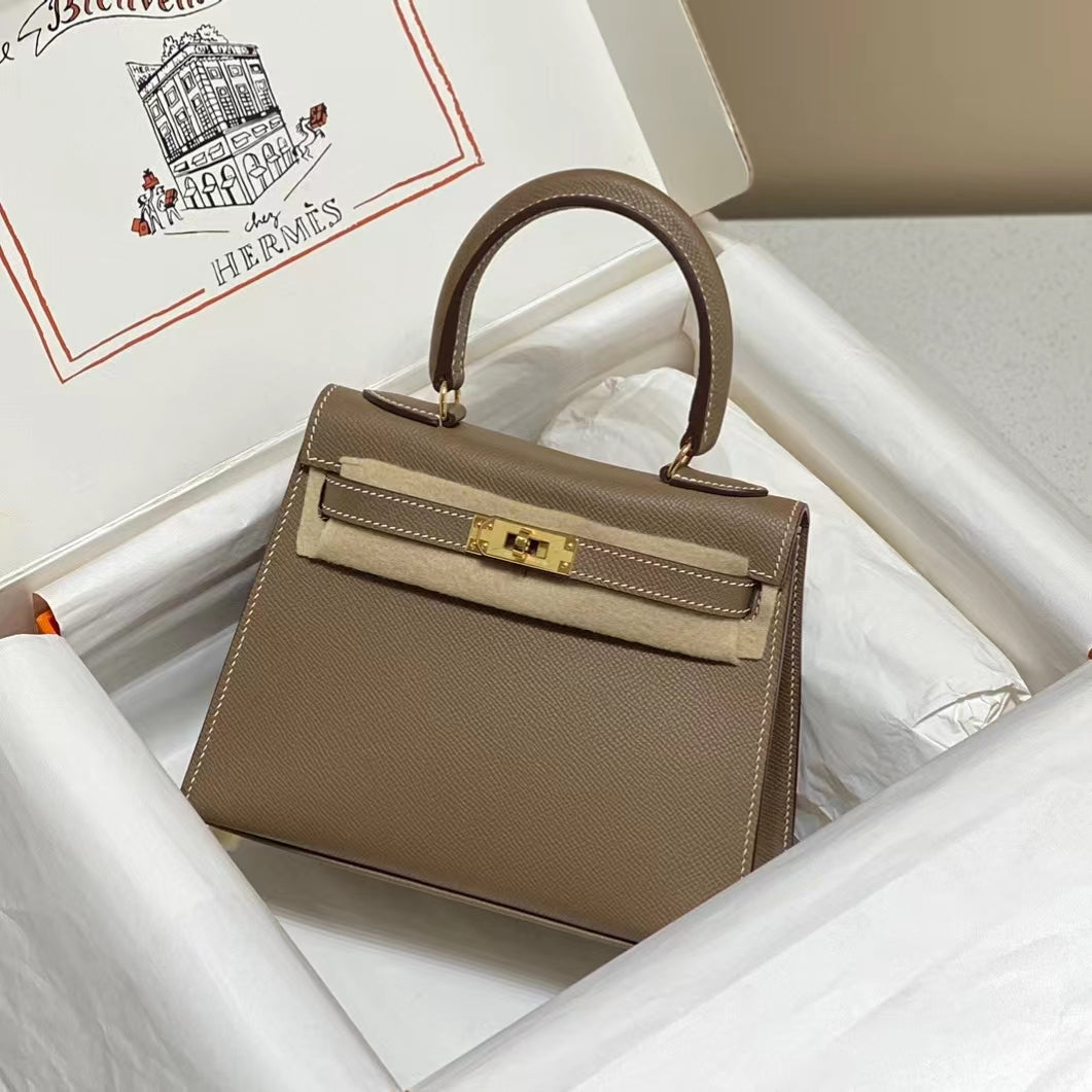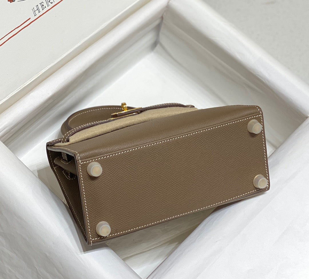 Hermes Kelly 20cm Bag In Etoupe Epsom Leather
