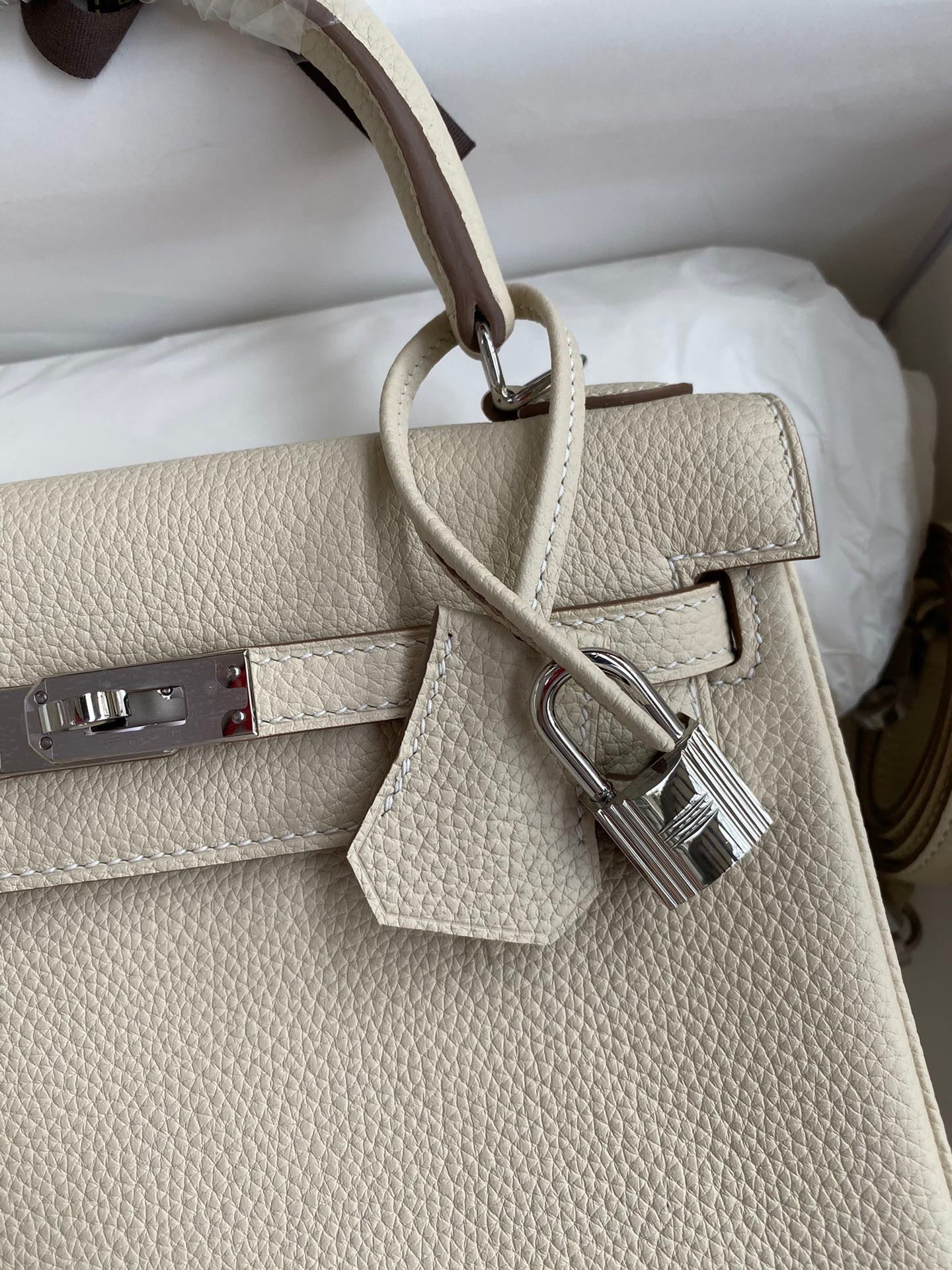 Hermes Kelly 25cm Sellier Bag in Craie Togo Leather