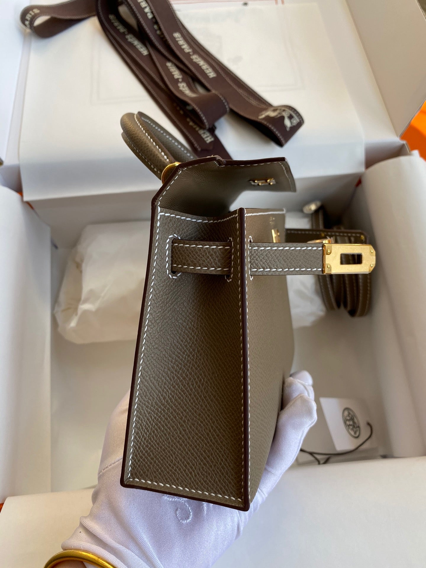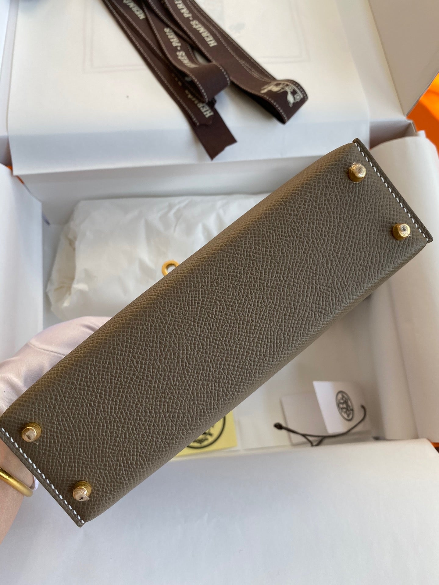 - Hermes Paris embossed on the hardware