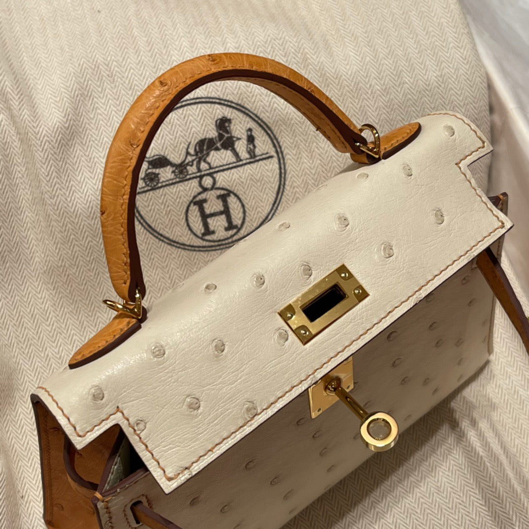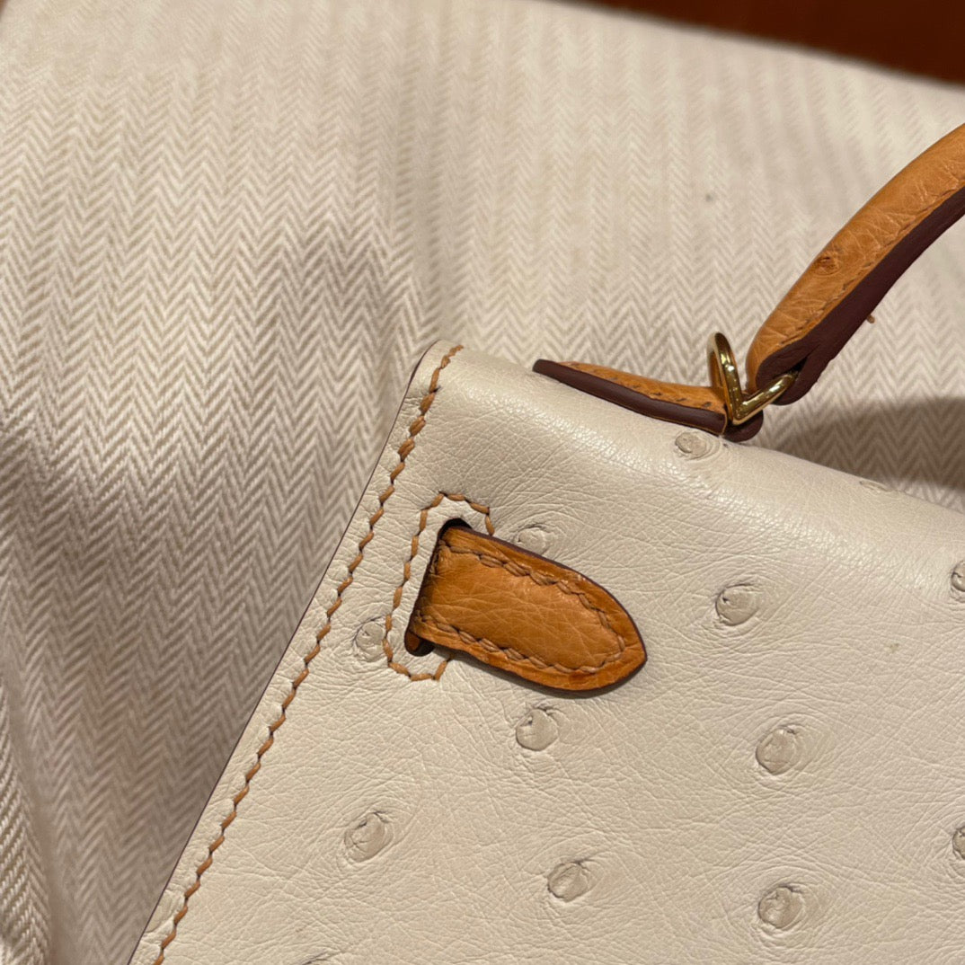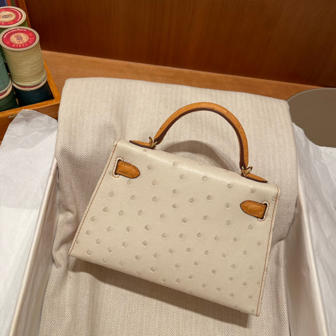 Hermes Kelly Mini II Sellier Handmade Bag In Beige Ostrich Leather
