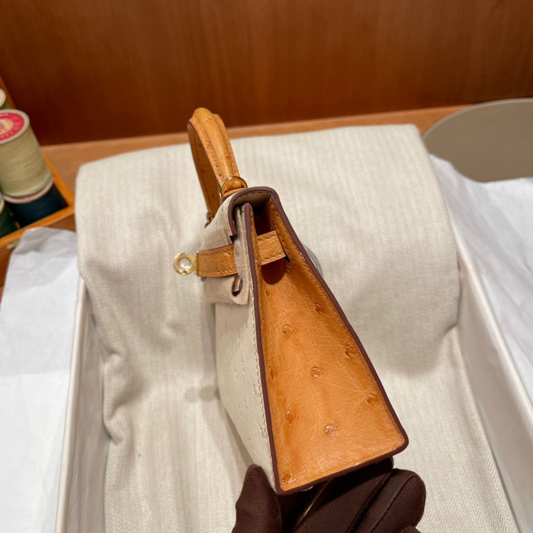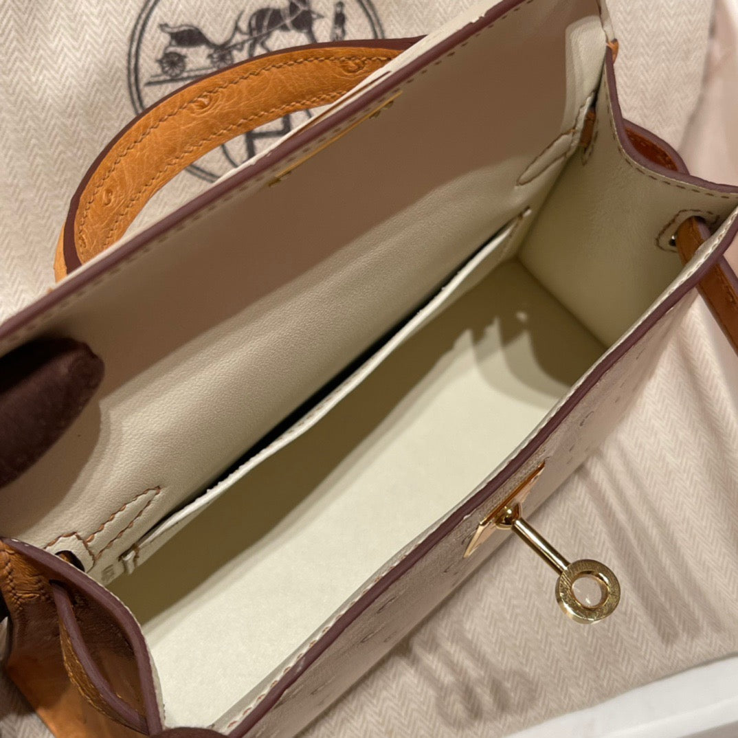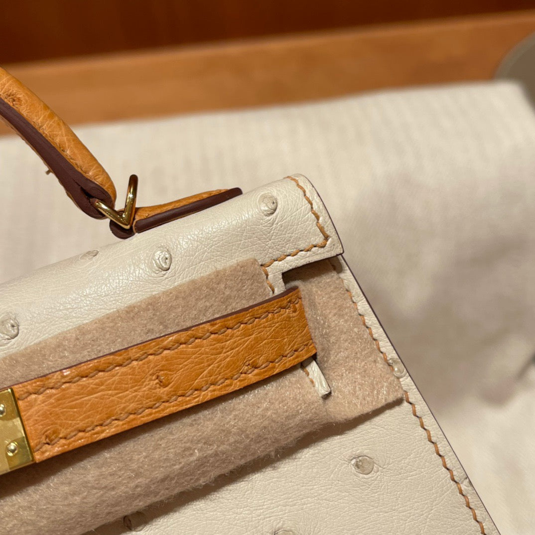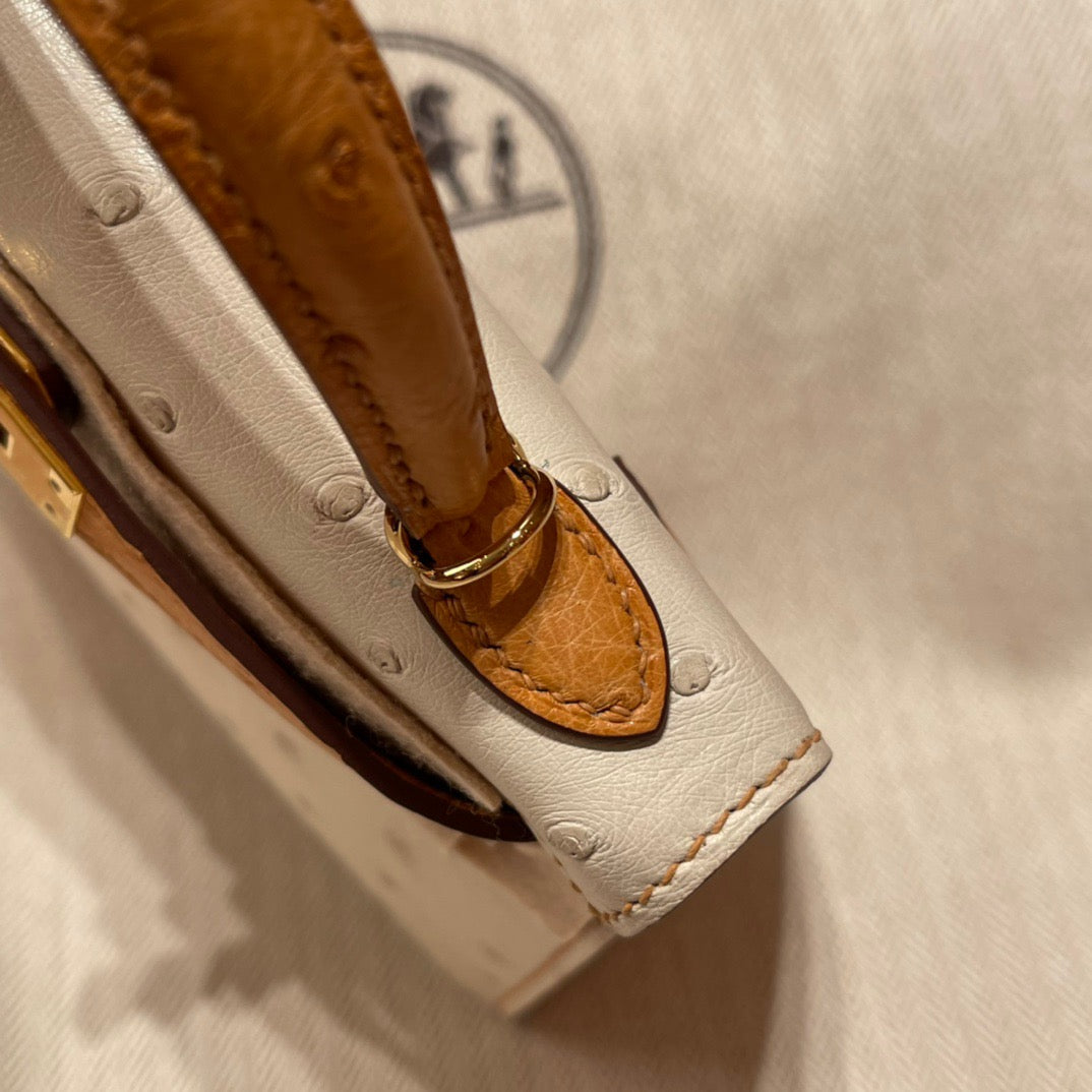 Hermes Kelly Mini II Sellier Handmade Bag In Beige Ostrich Leather