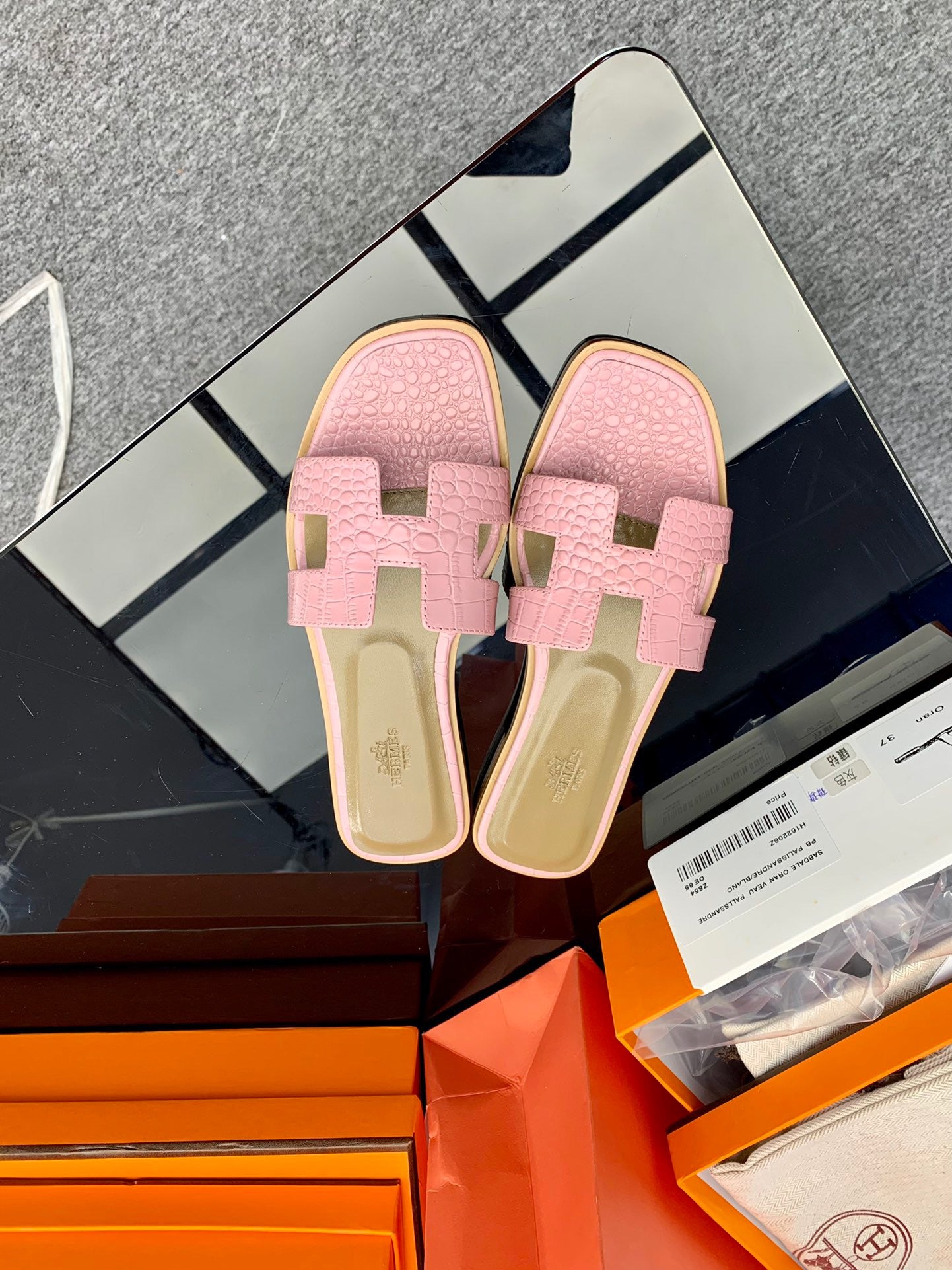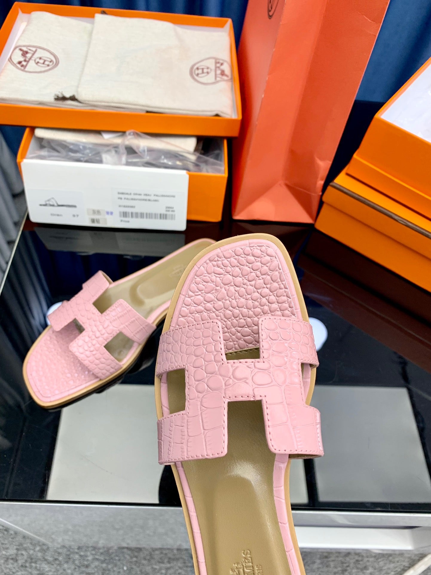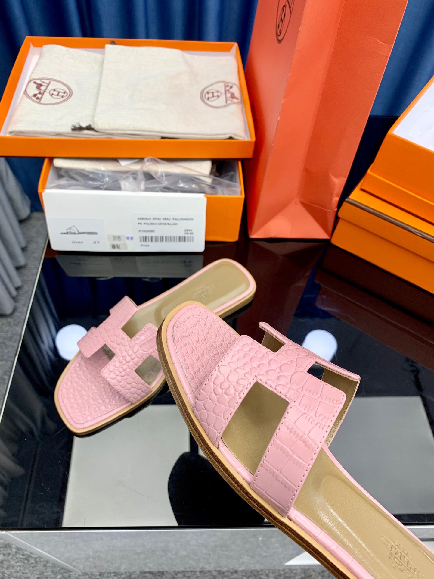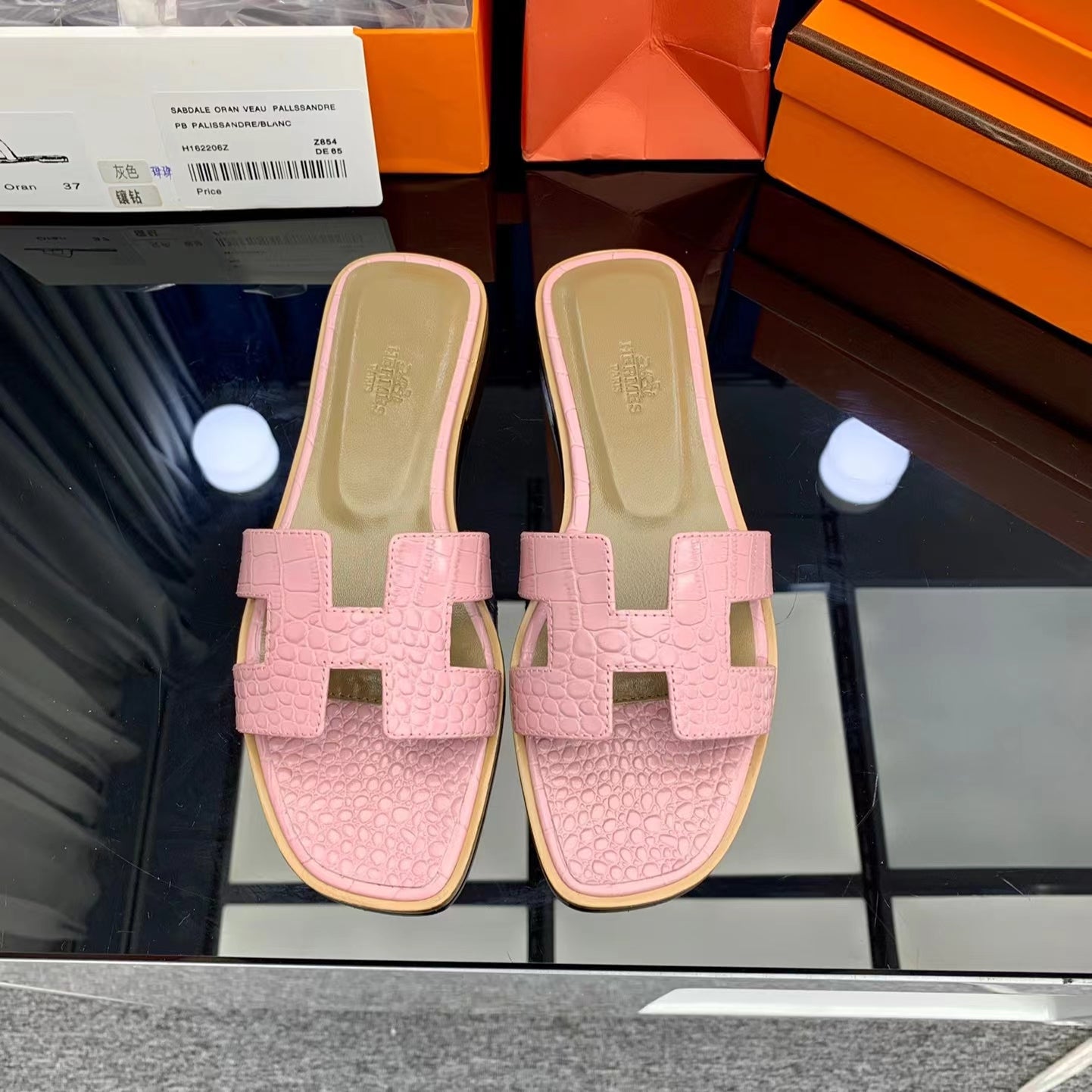 Hermès Oran Sandals Pink Niloticus Crocodile