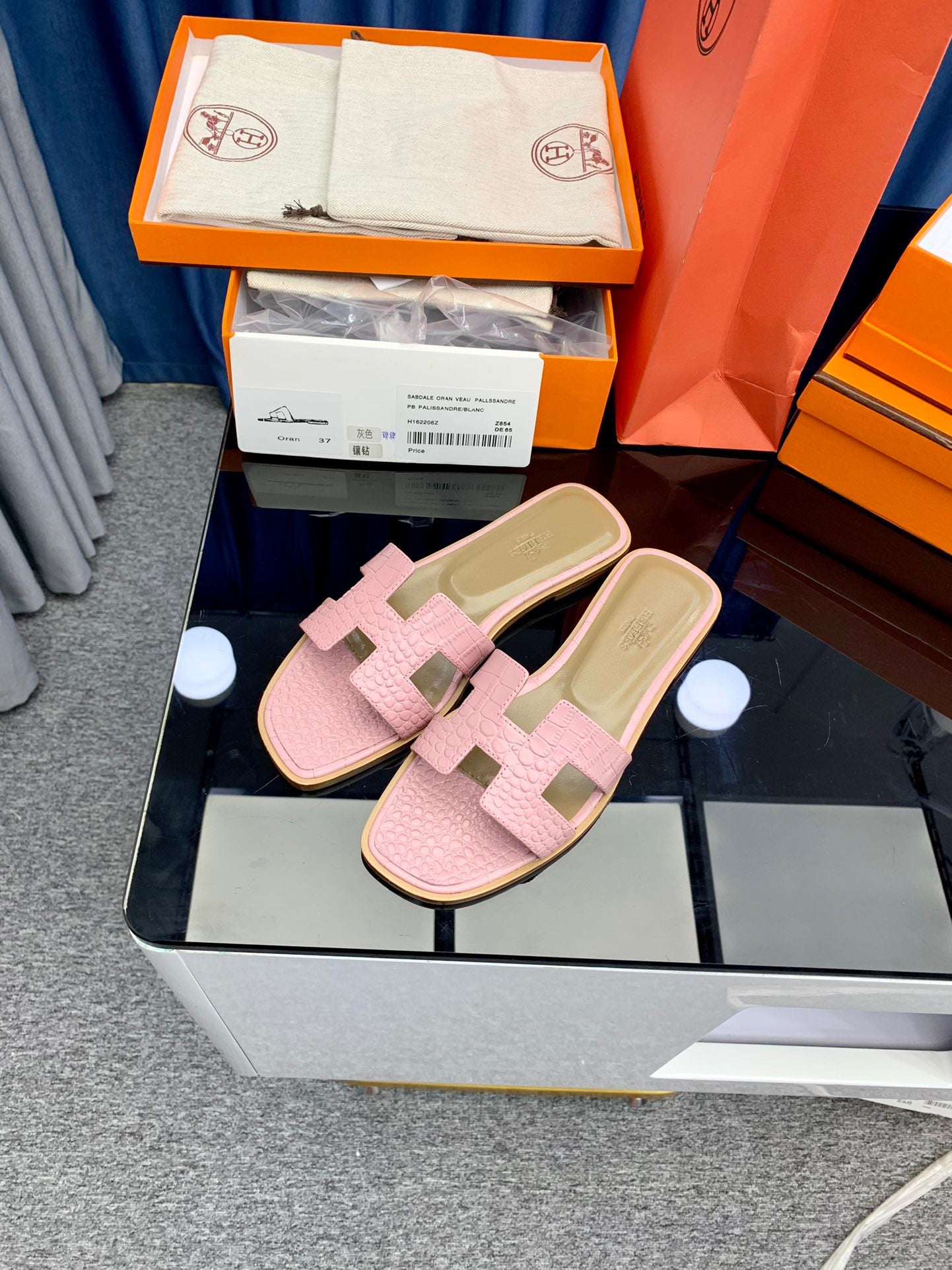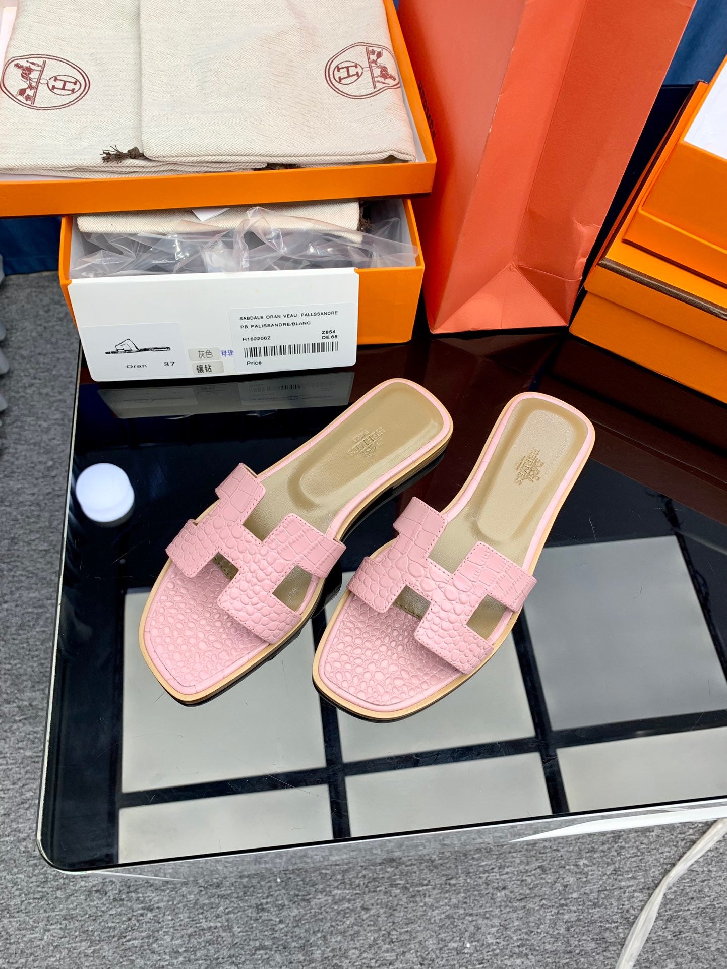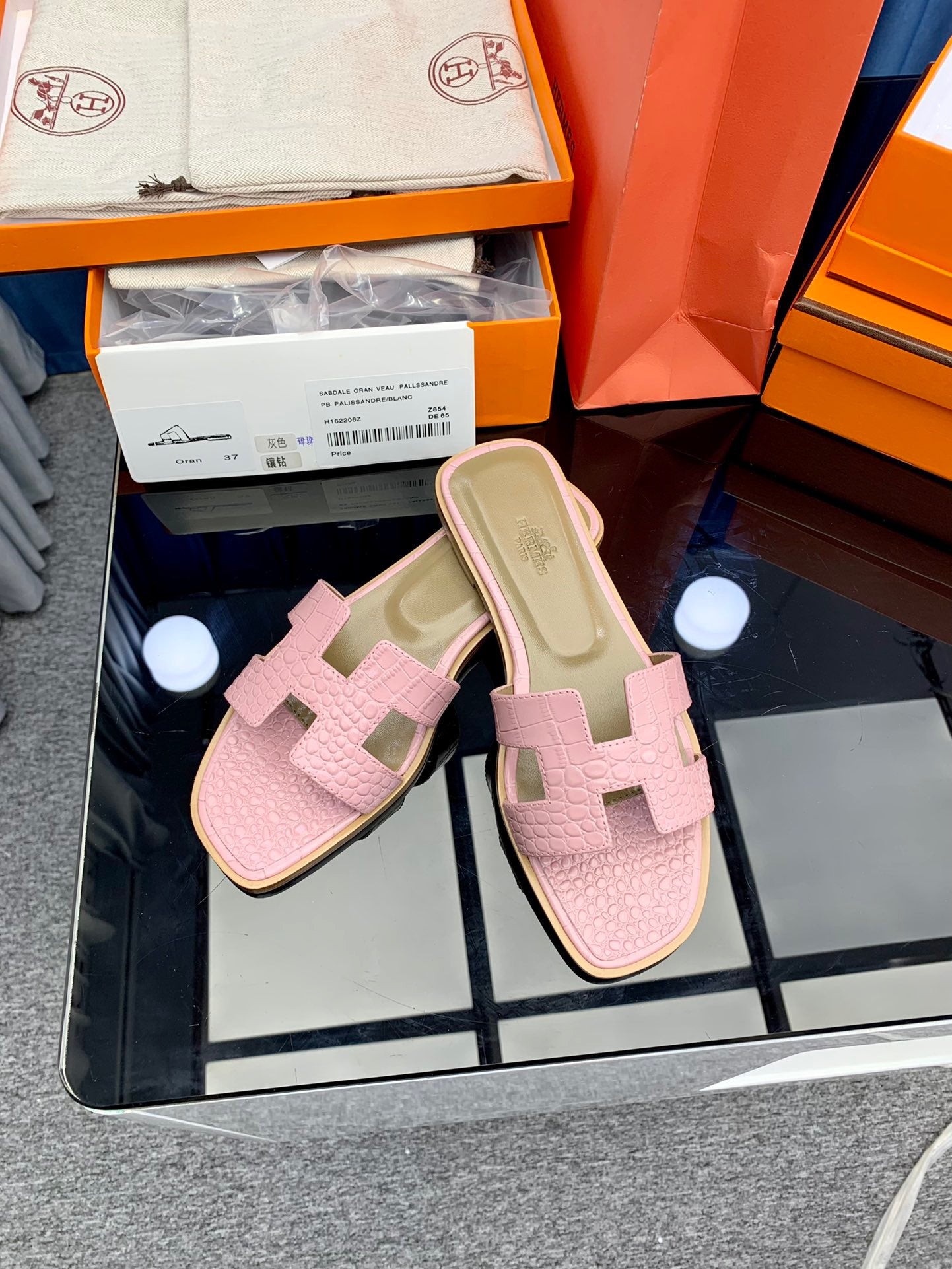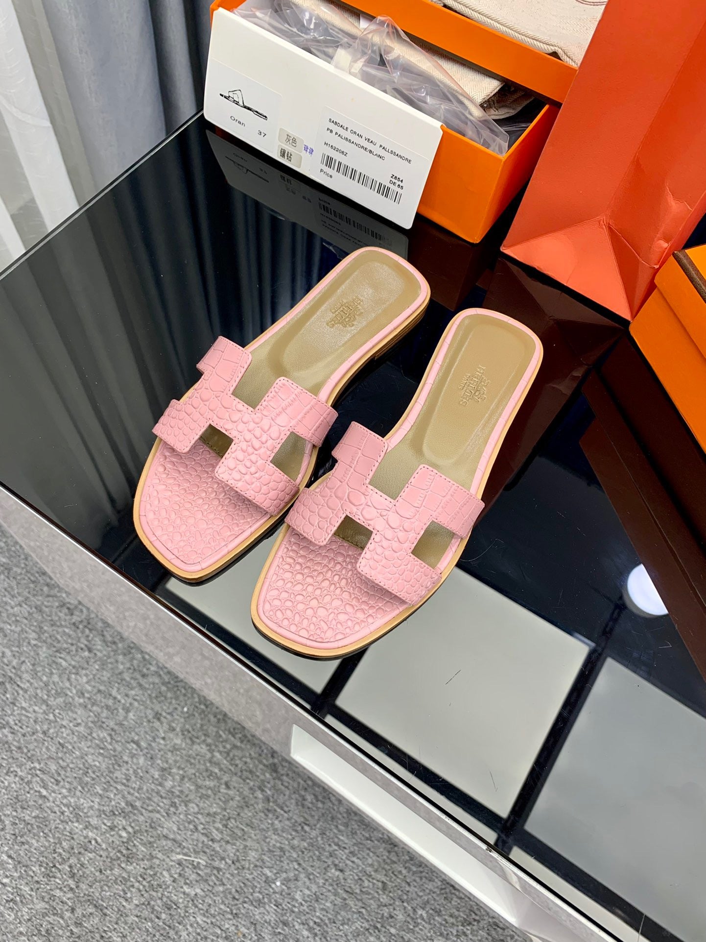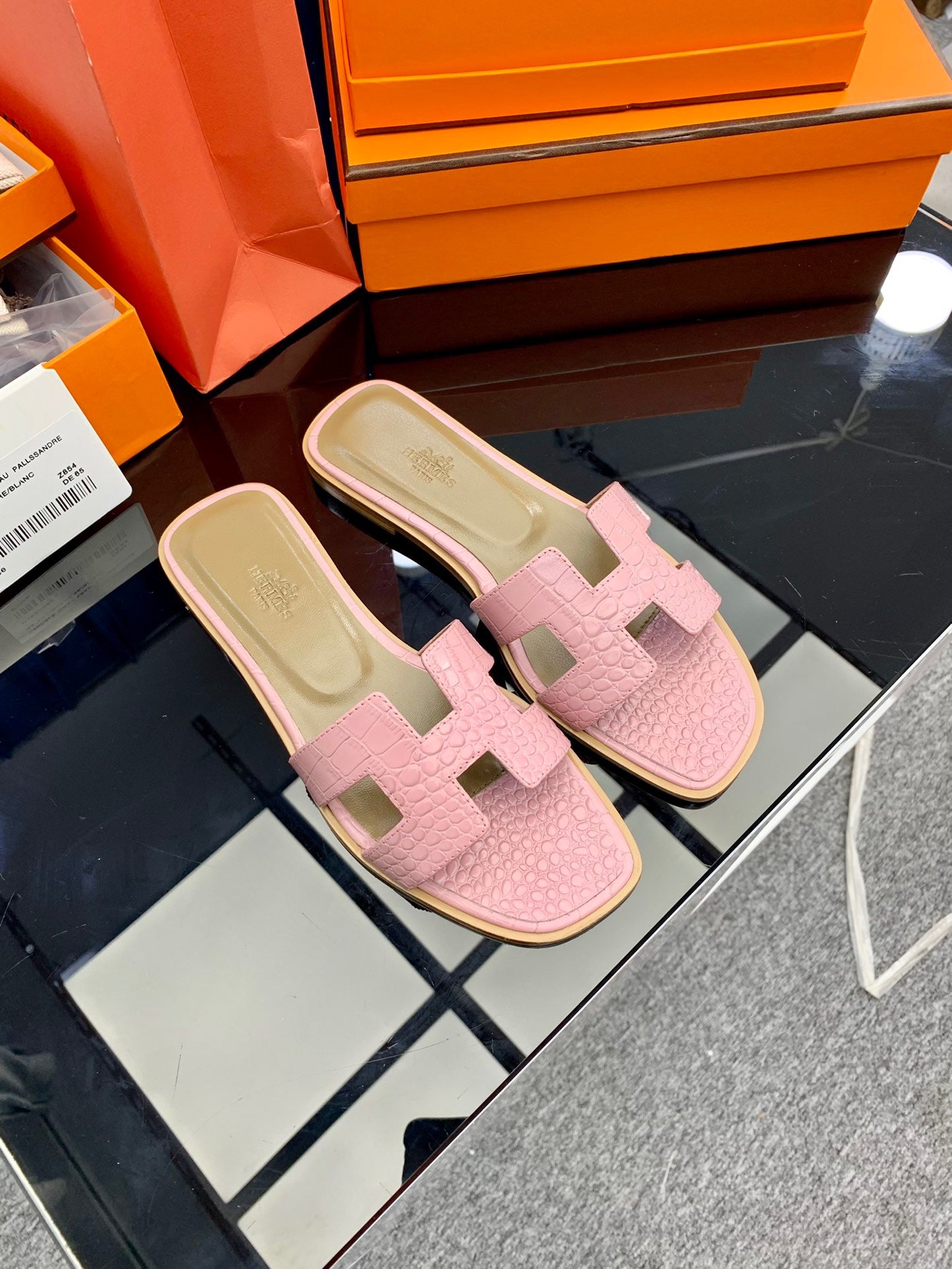 Hermès Oran Sandals Pink Niloticus Crocodile