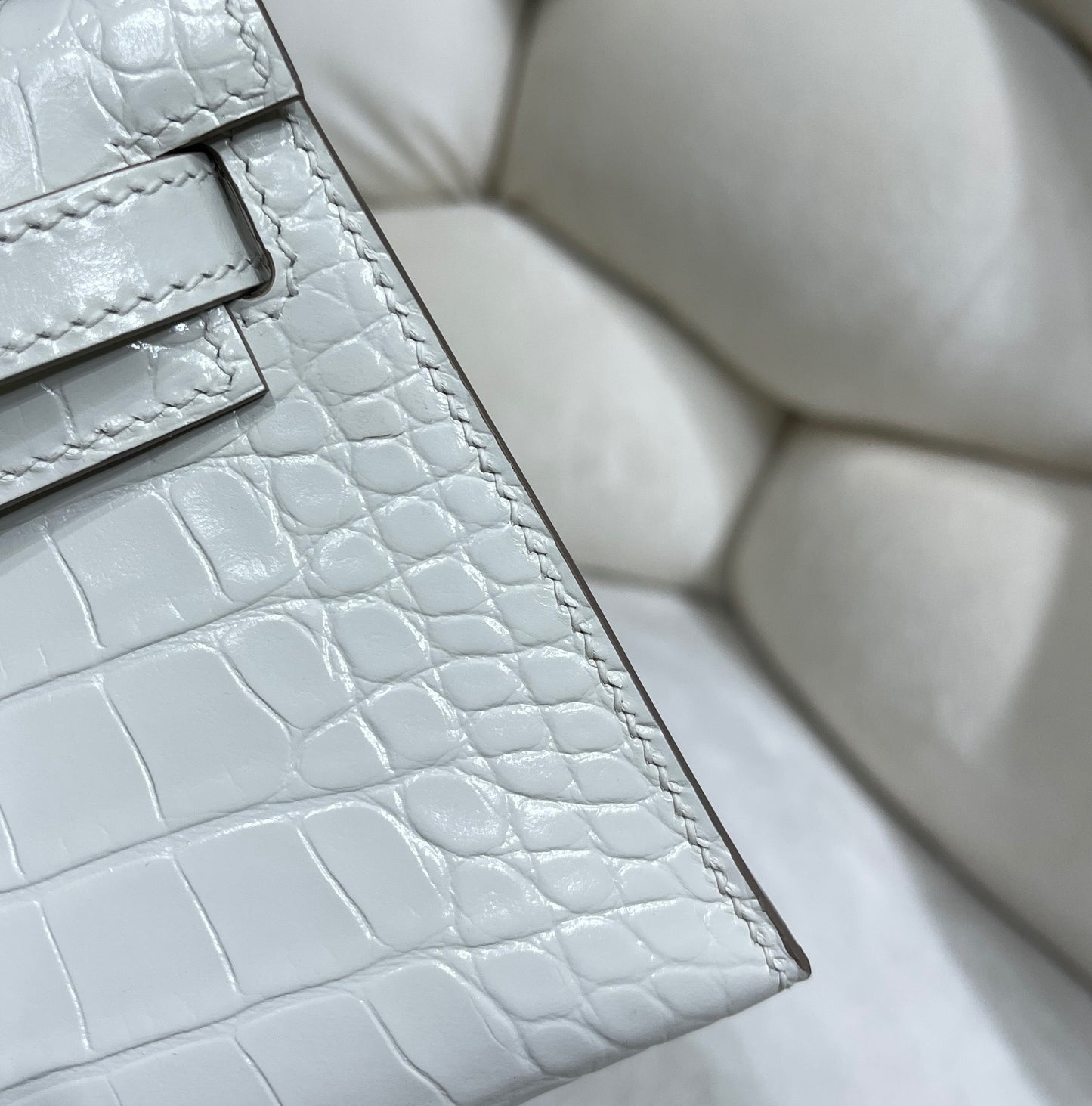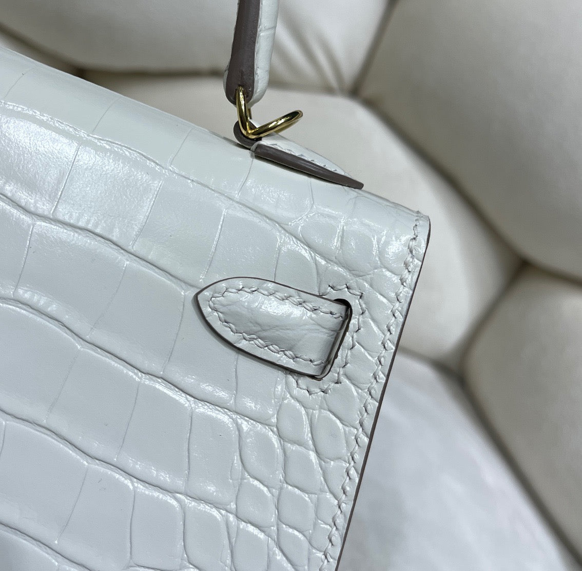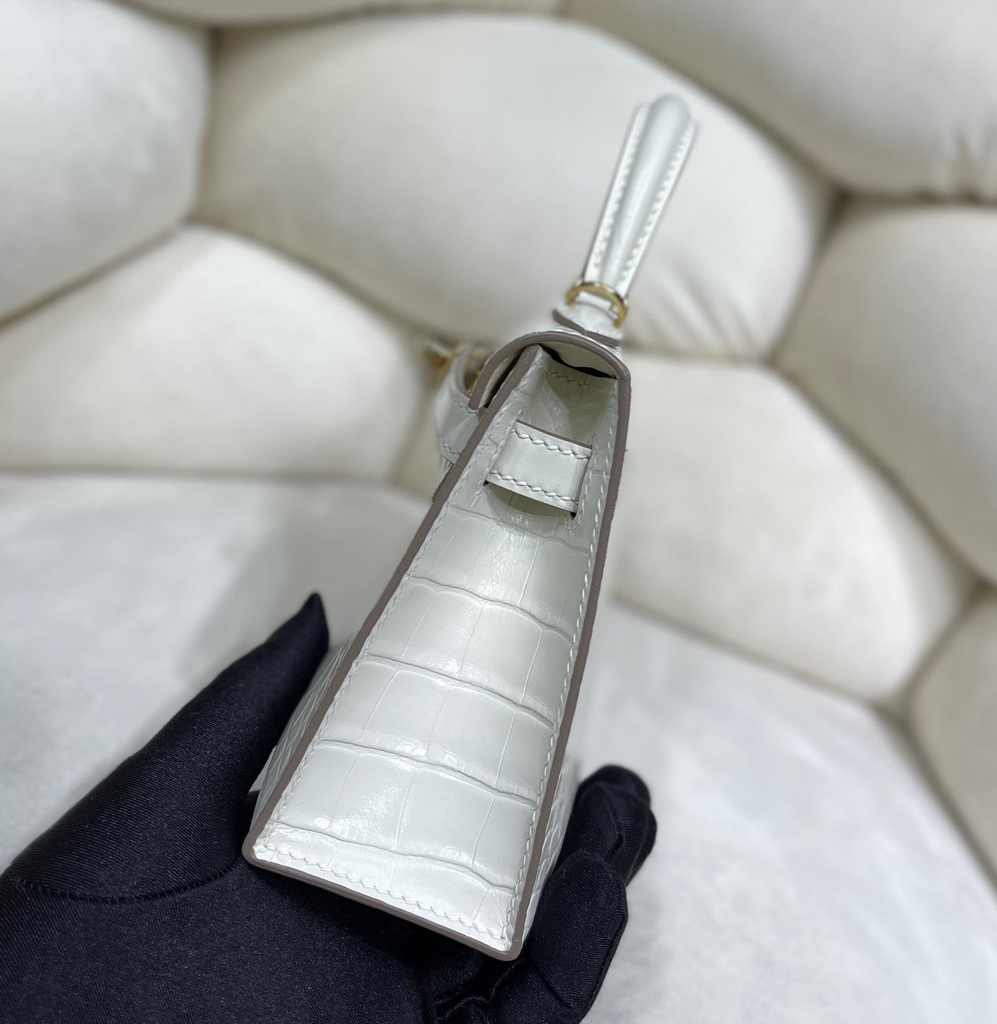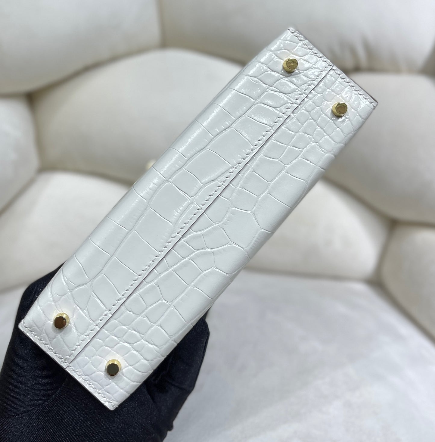 Hermes White Crocodile Mini Kelly II 20 cm With Gold Hardware