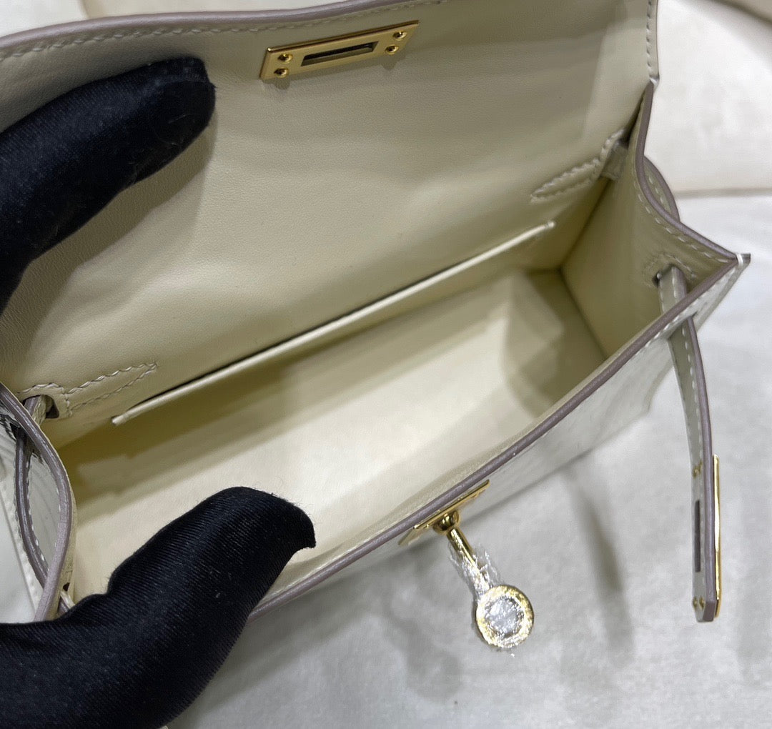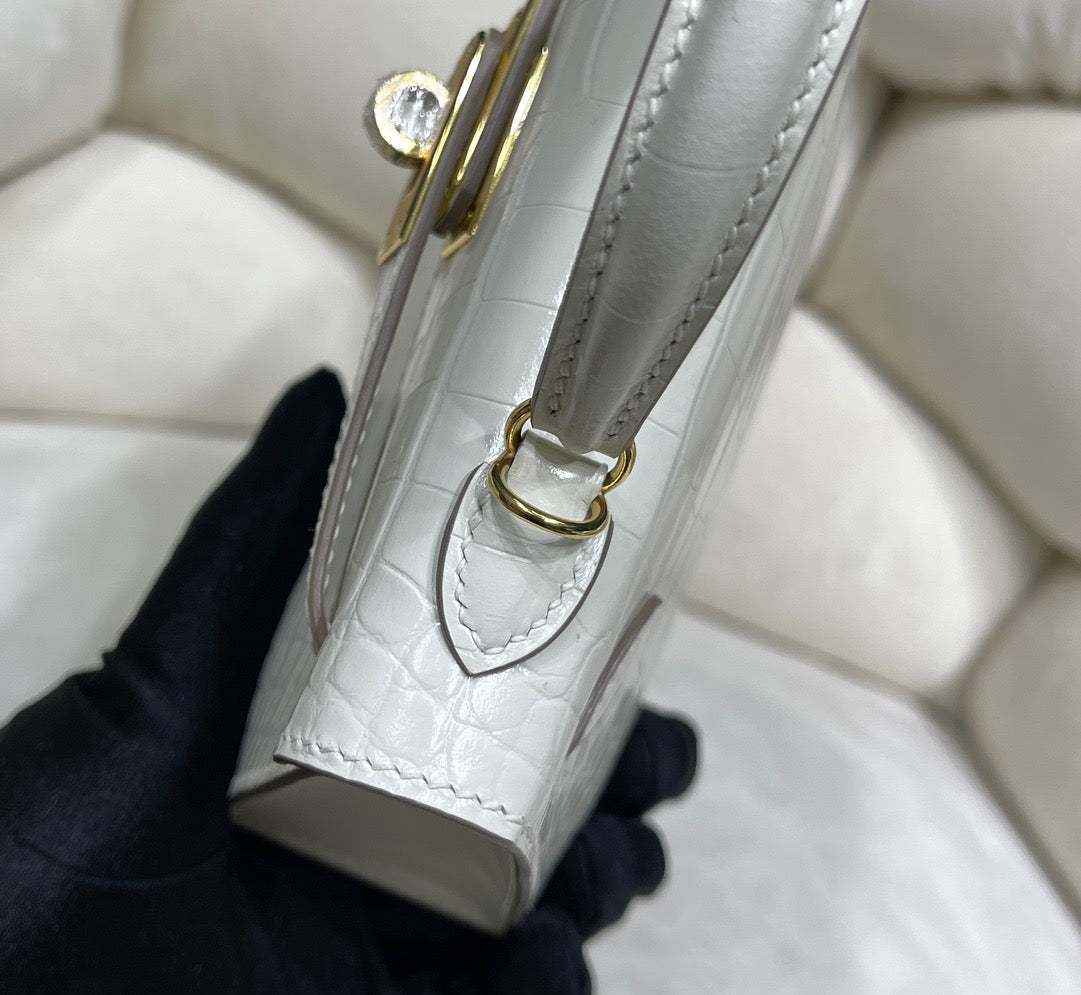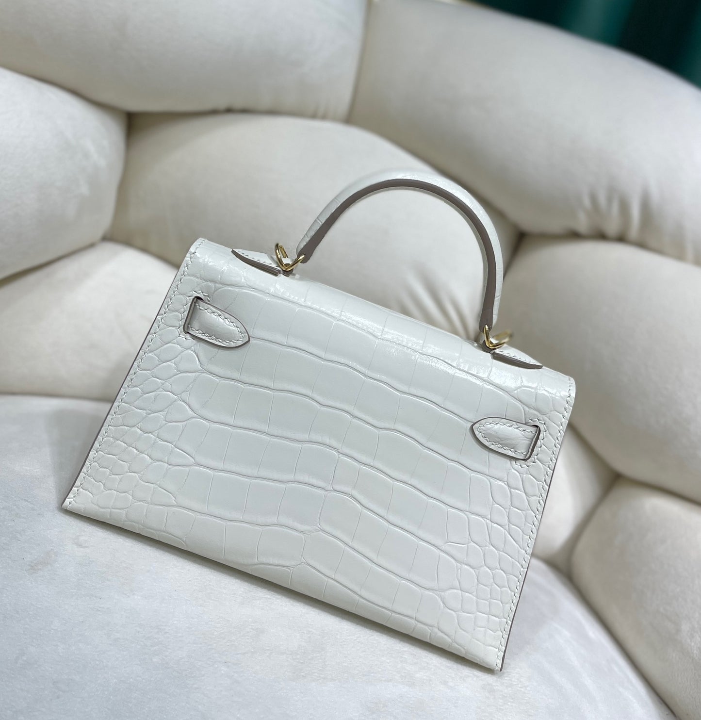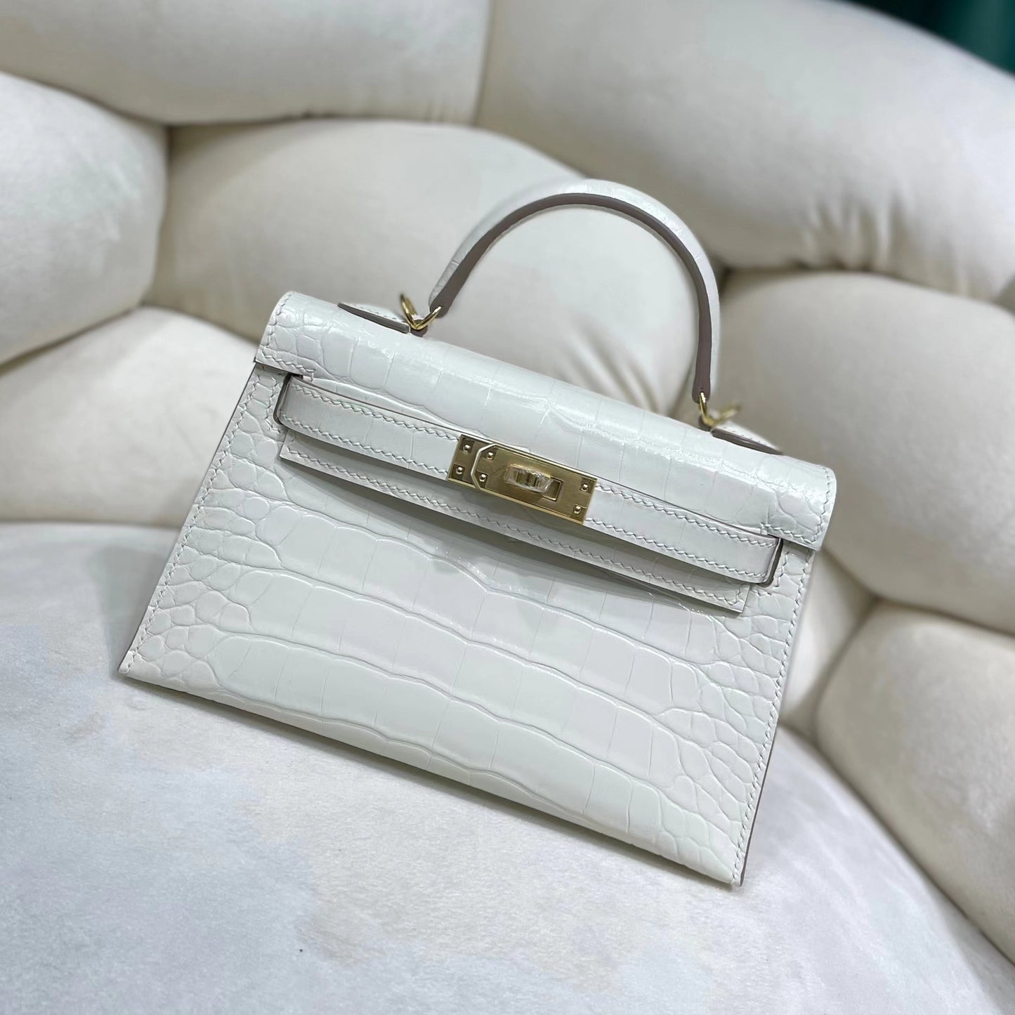 Hermes White Crocodile Mini Kelly II 20 cm With Gold Hardware