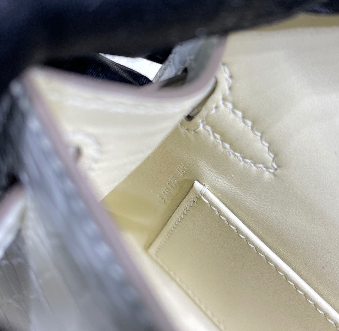 - Leather: Exterior is Matte Alligator, interior is lined in Chevre Mysore