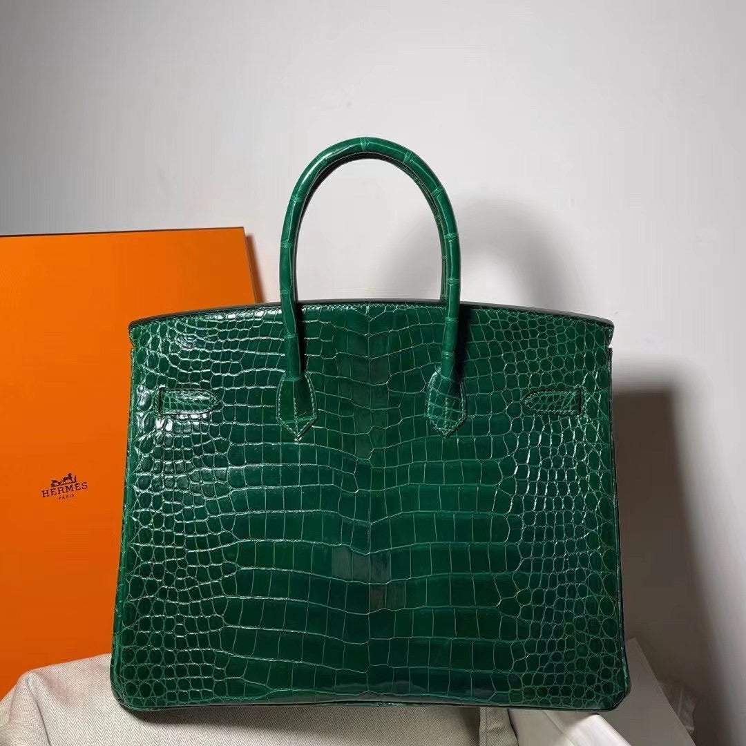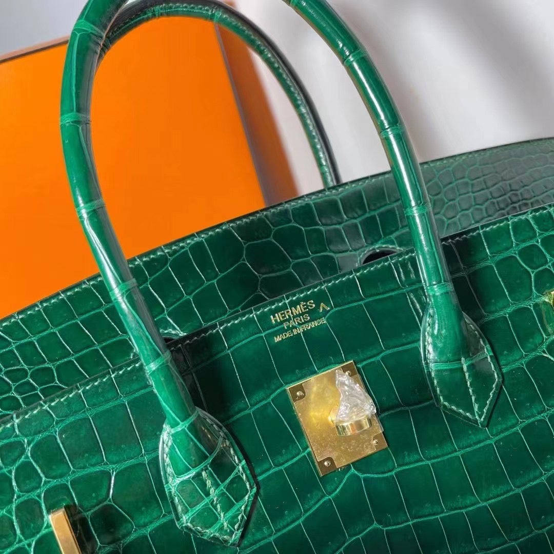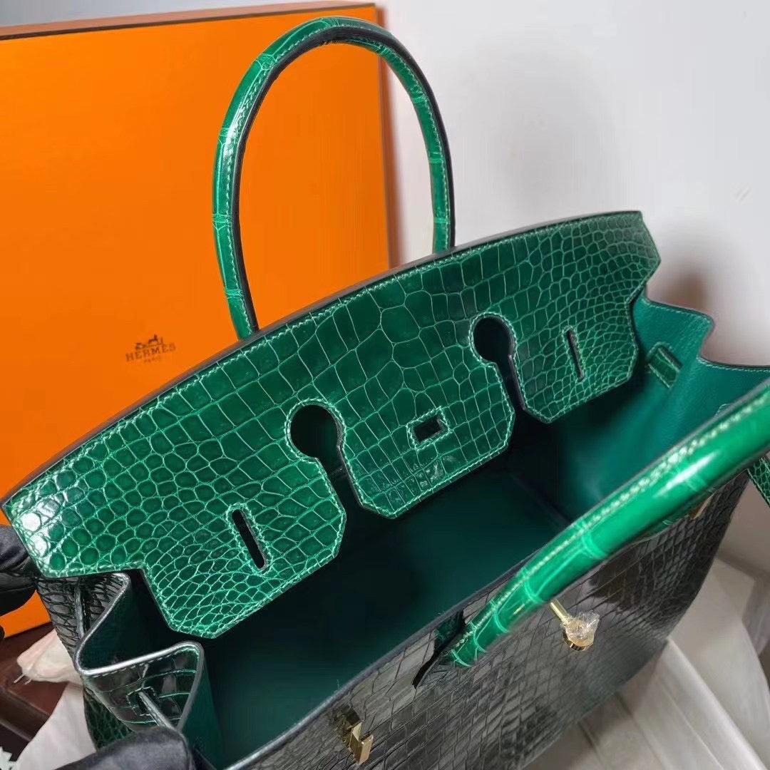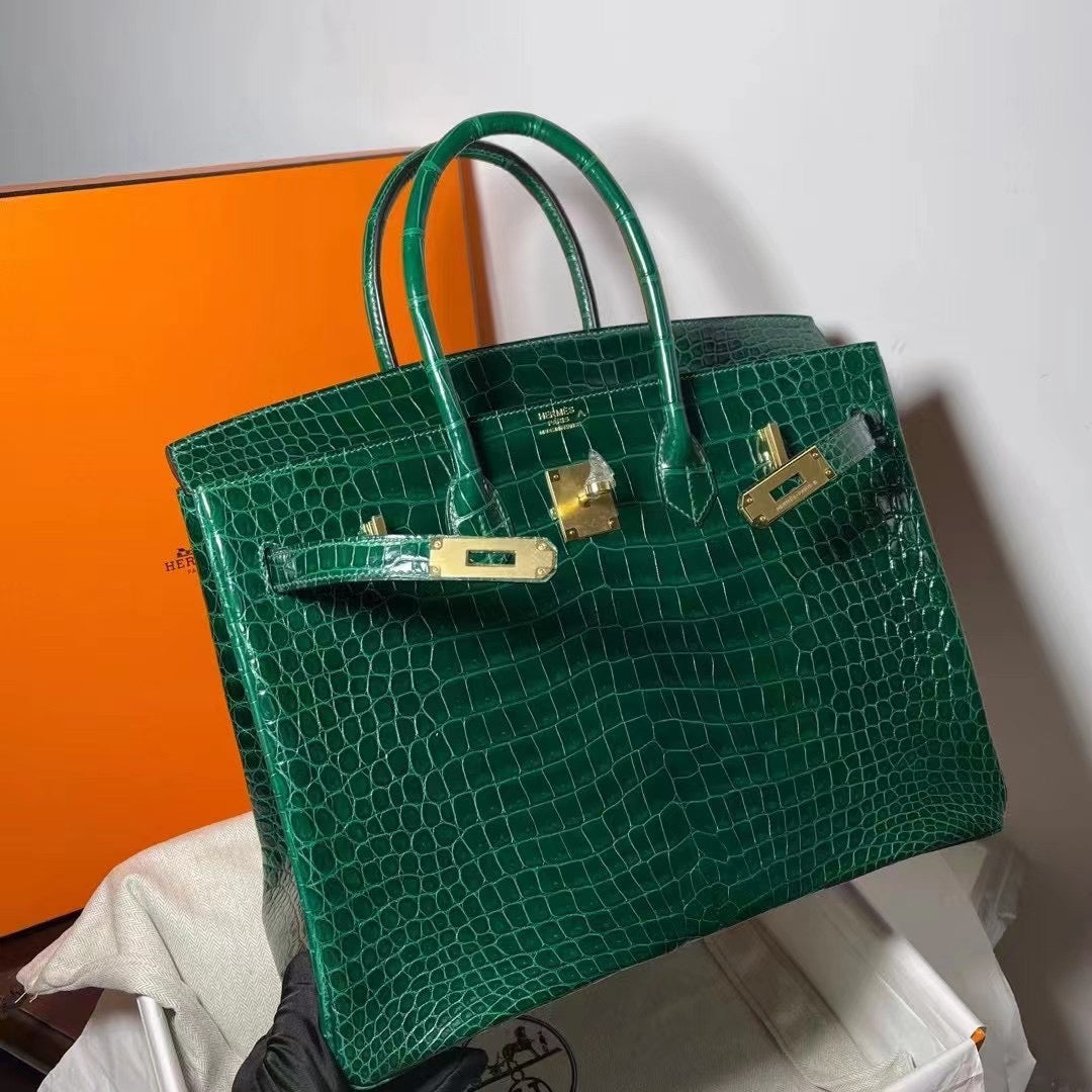 Hermes Birkin 35 Emerald Crocodile Shiny Leather With Gold Hardware