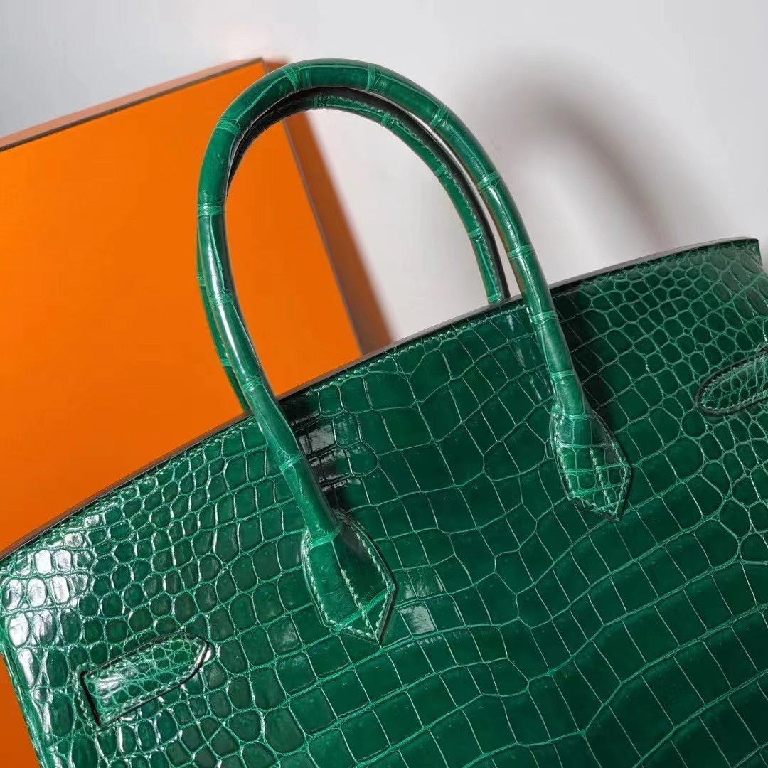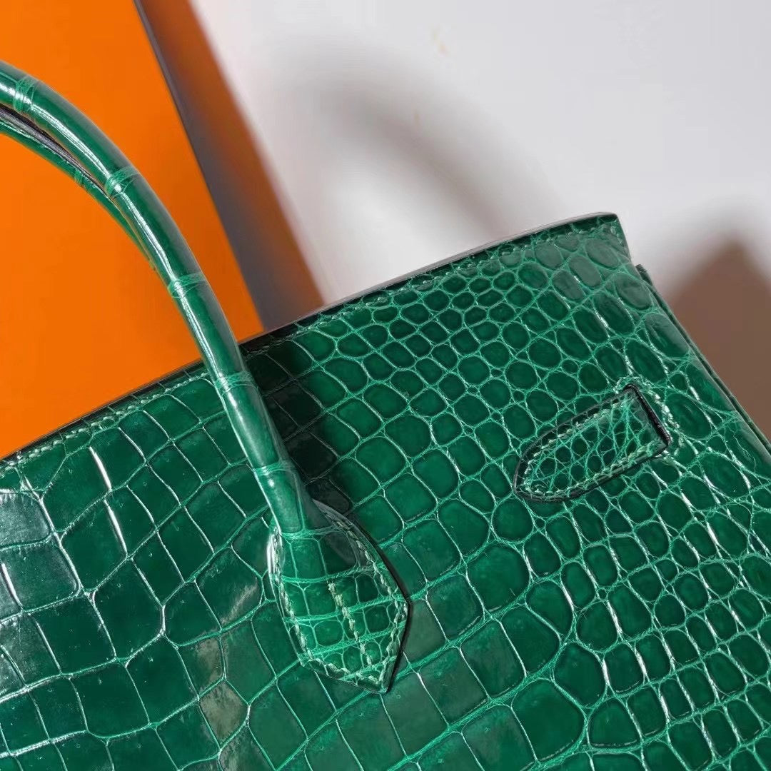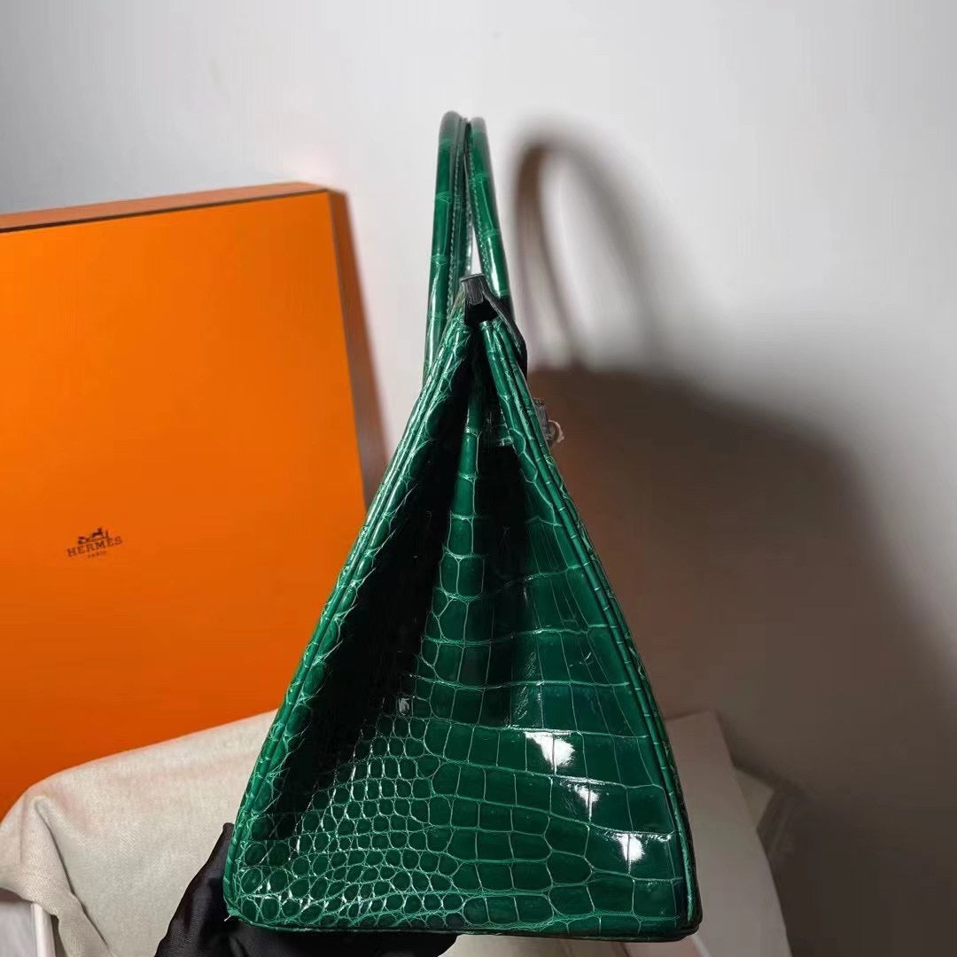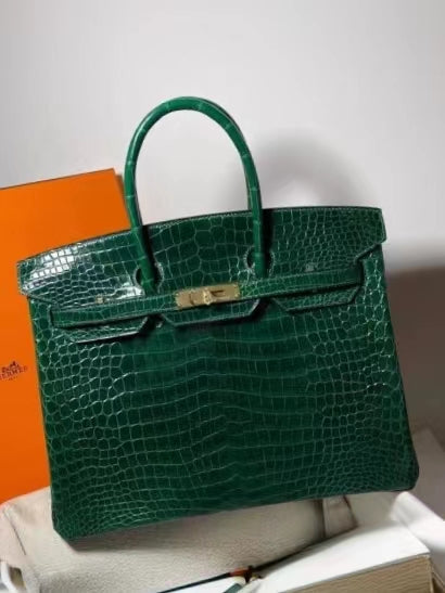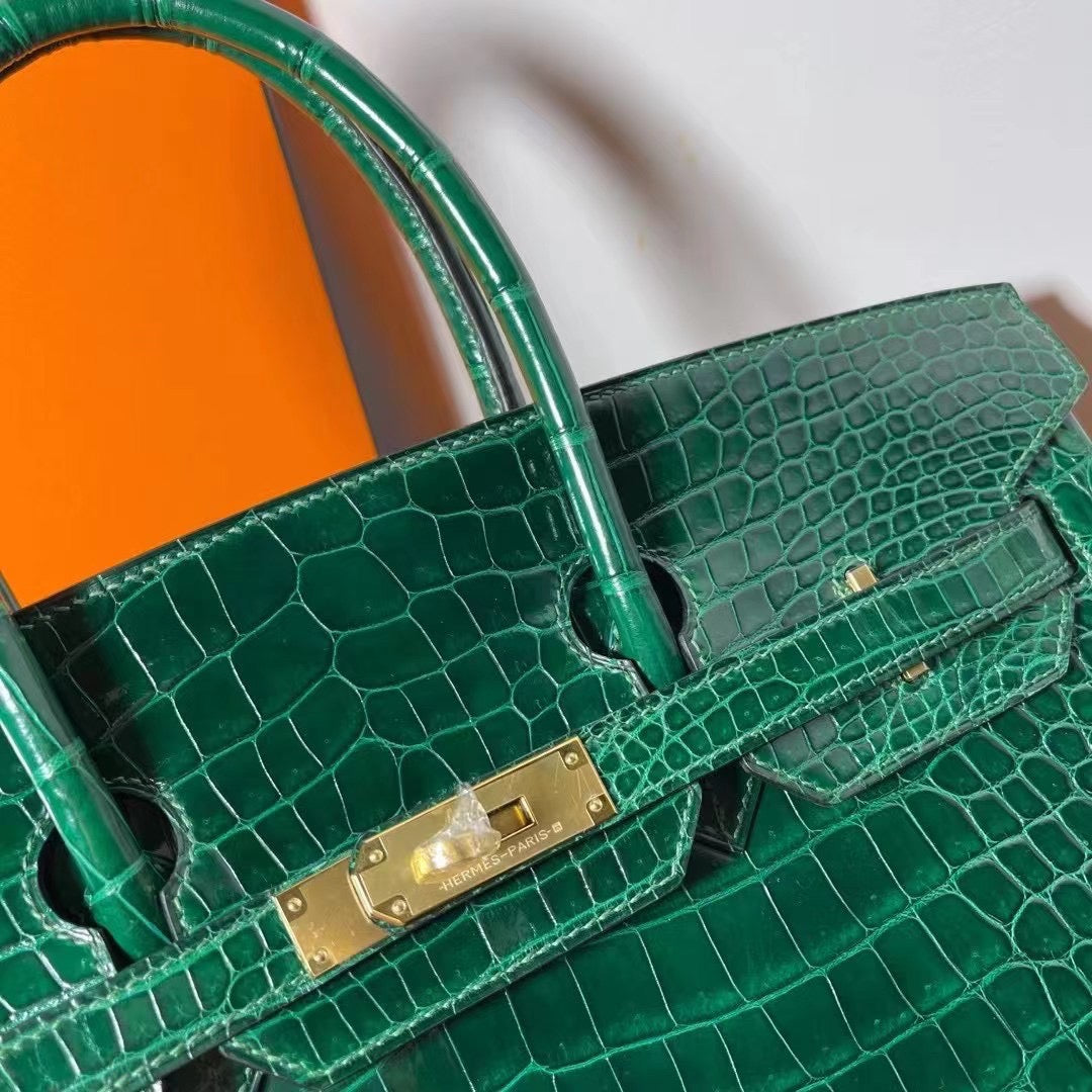 Hermes Birkin 35 Emerald Crocodile Shiny Leather With Gold Hardware