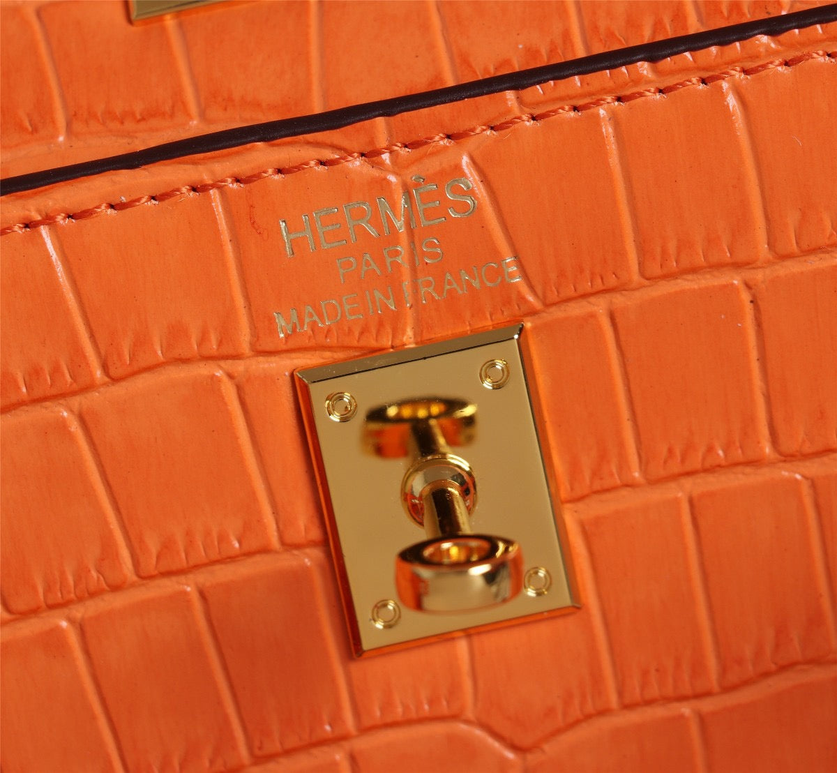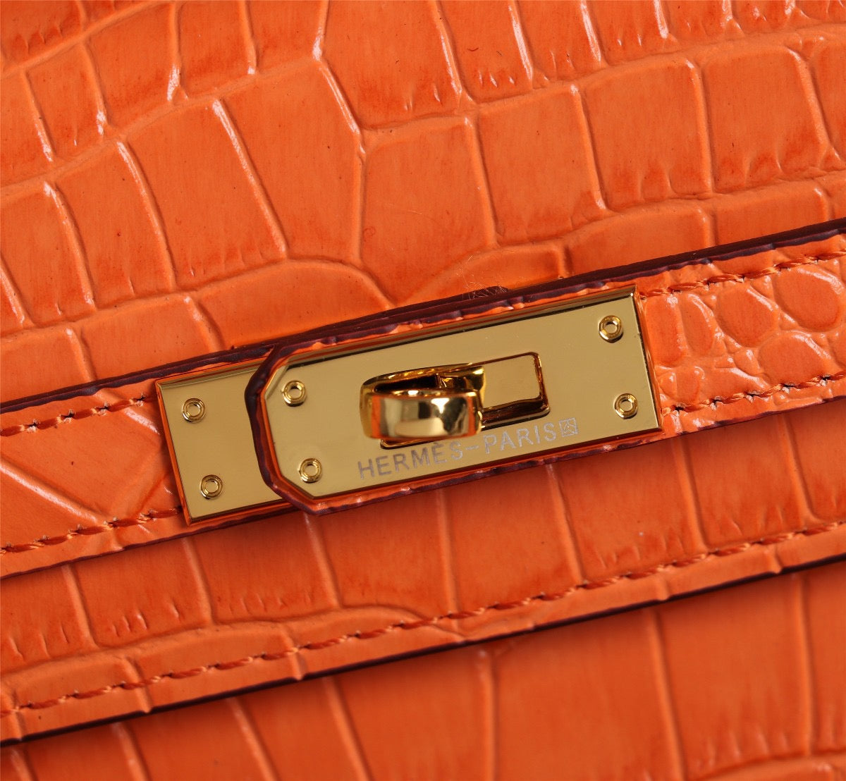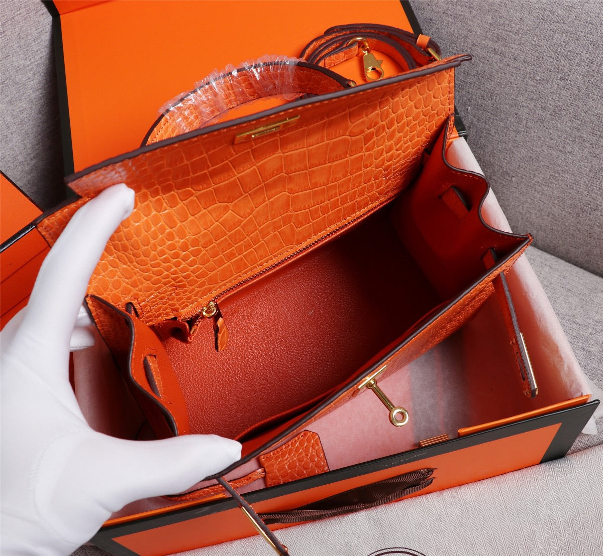 Hermes Kelly 25 Crocodile Leather Orange With Gold Hardware