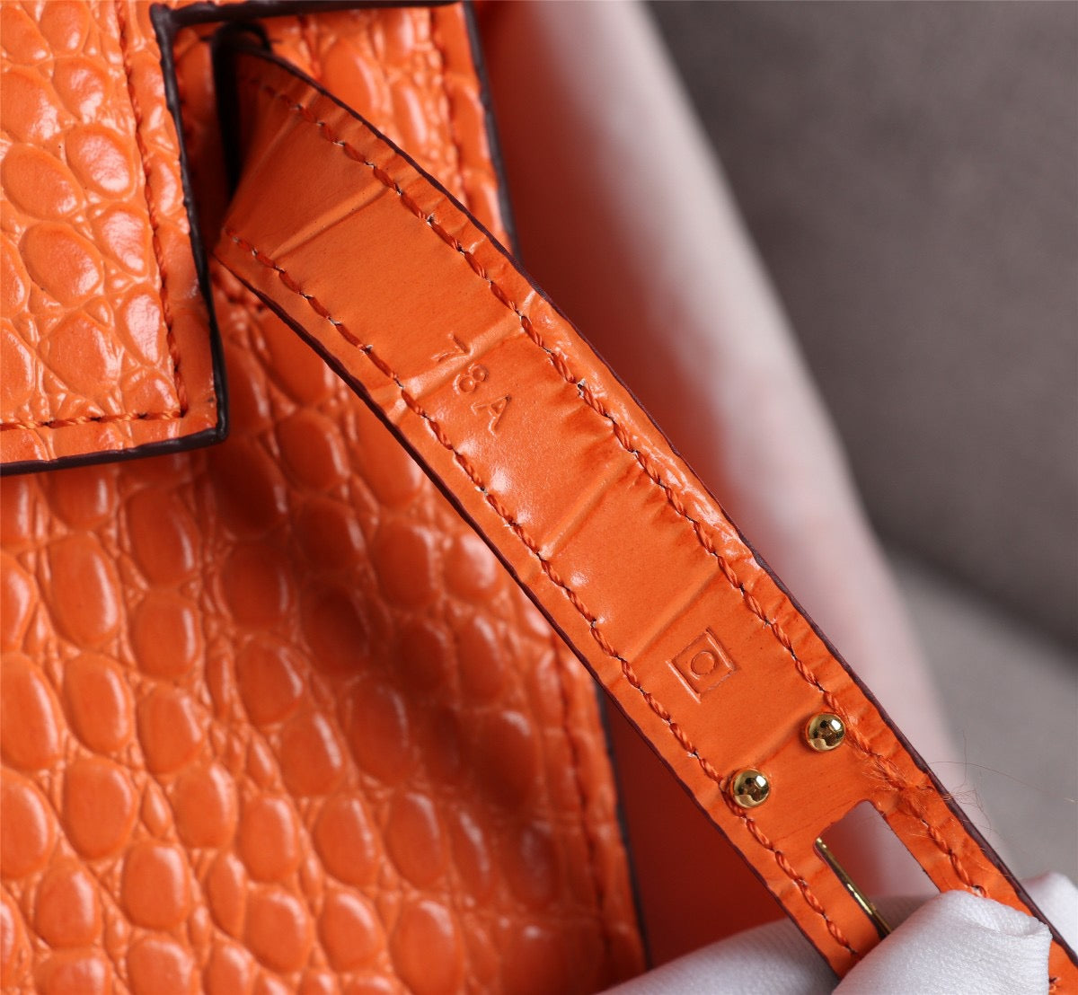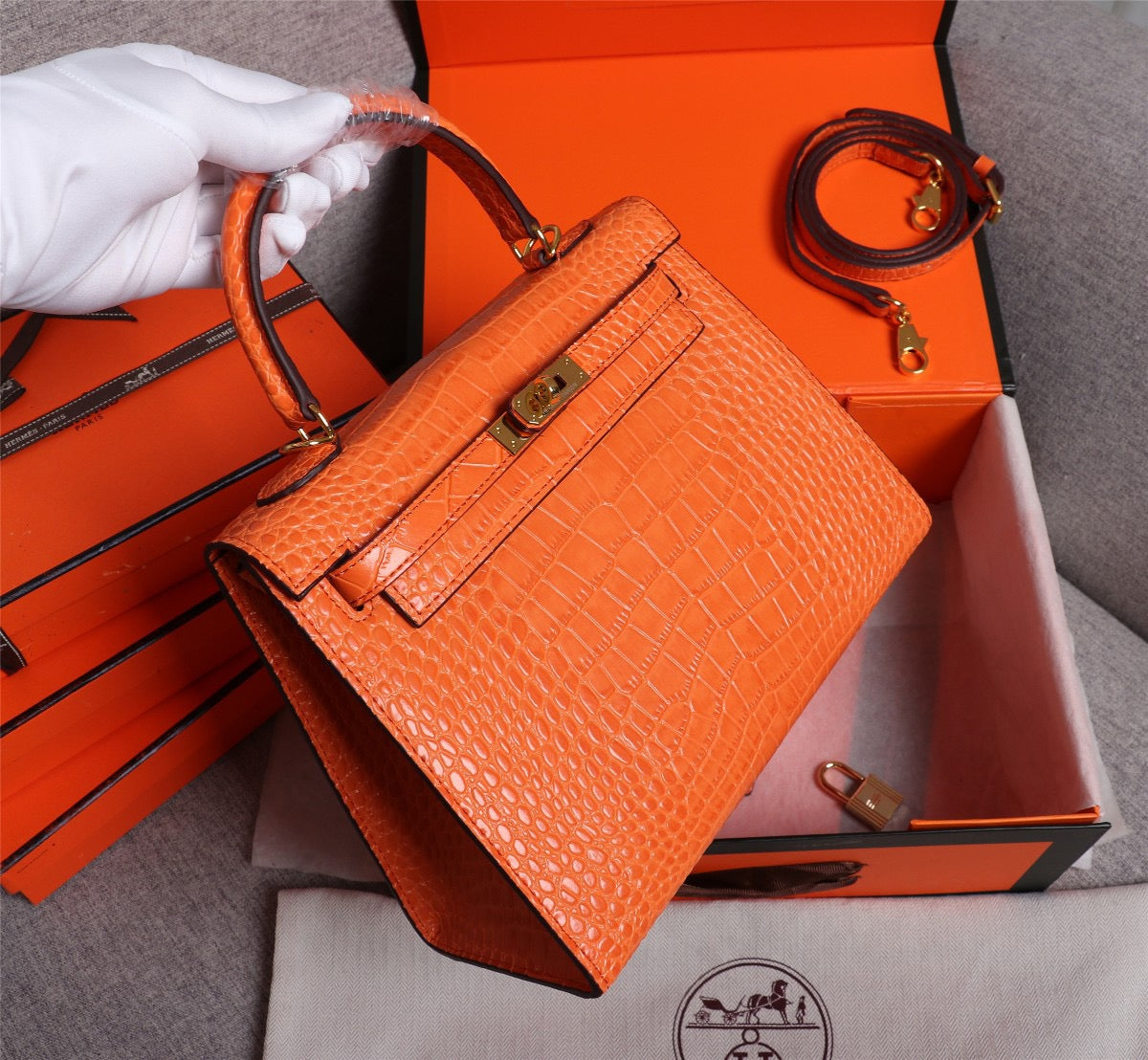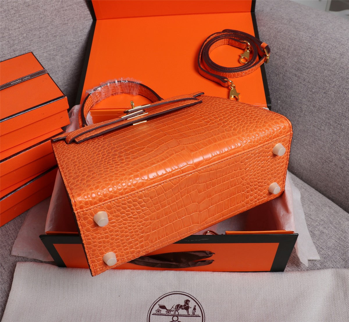 Hermes Kelly 25 Crocodile Leather Orange With Gold Hardware