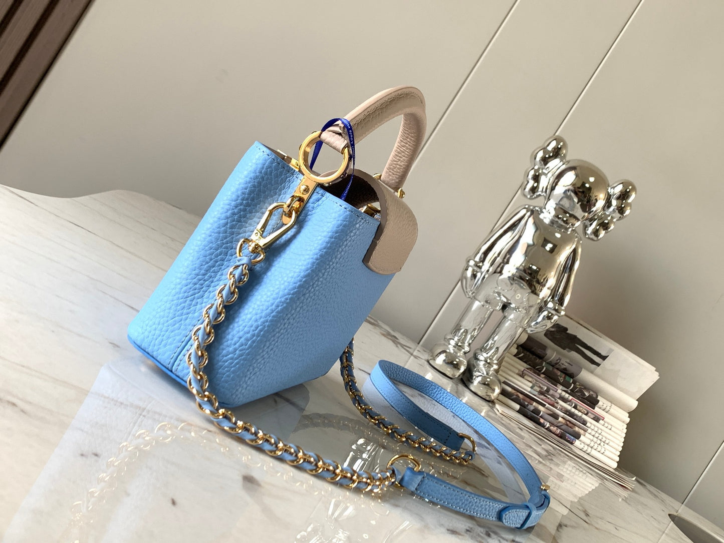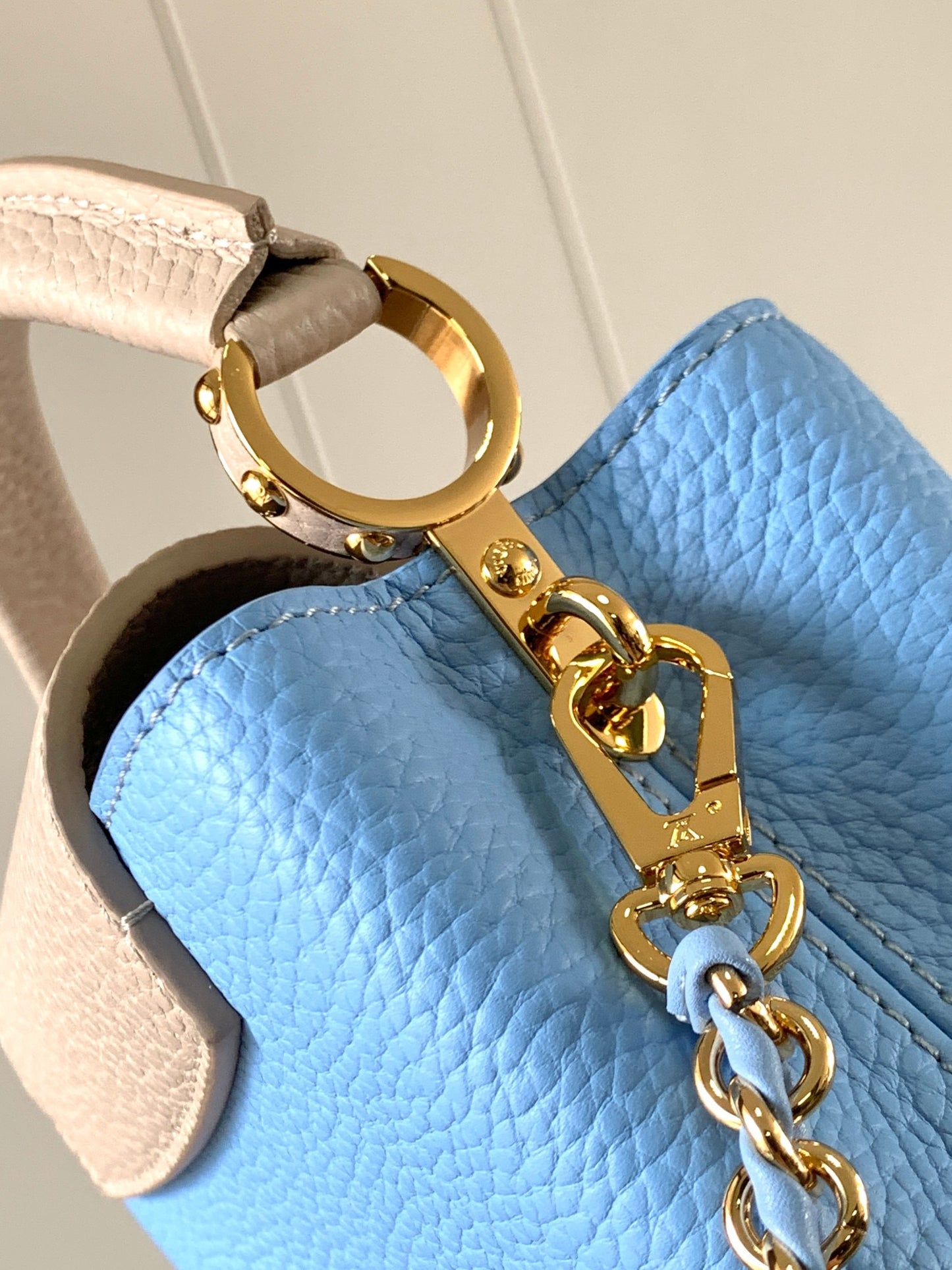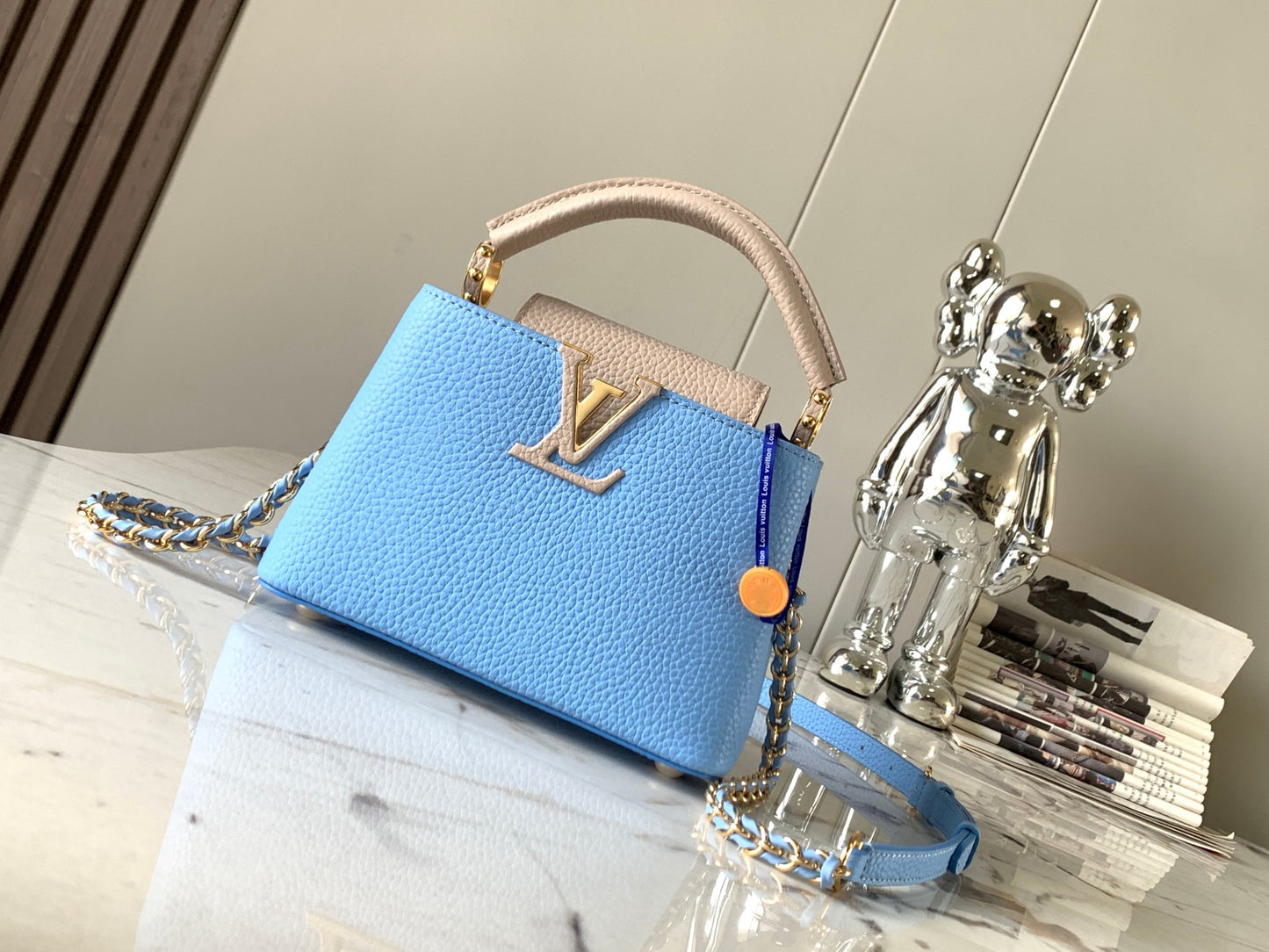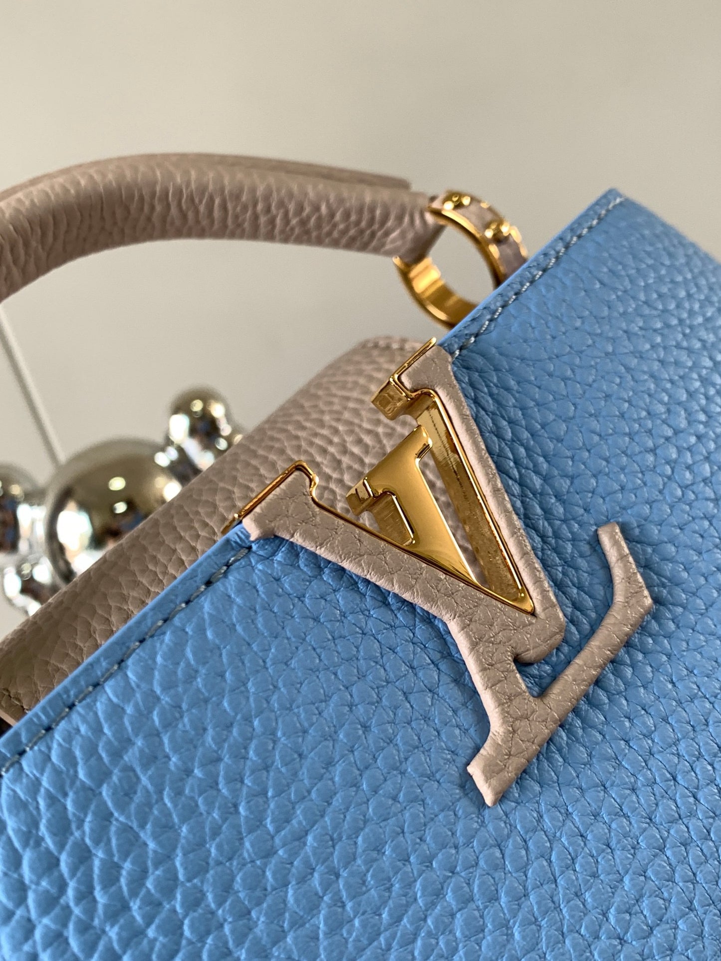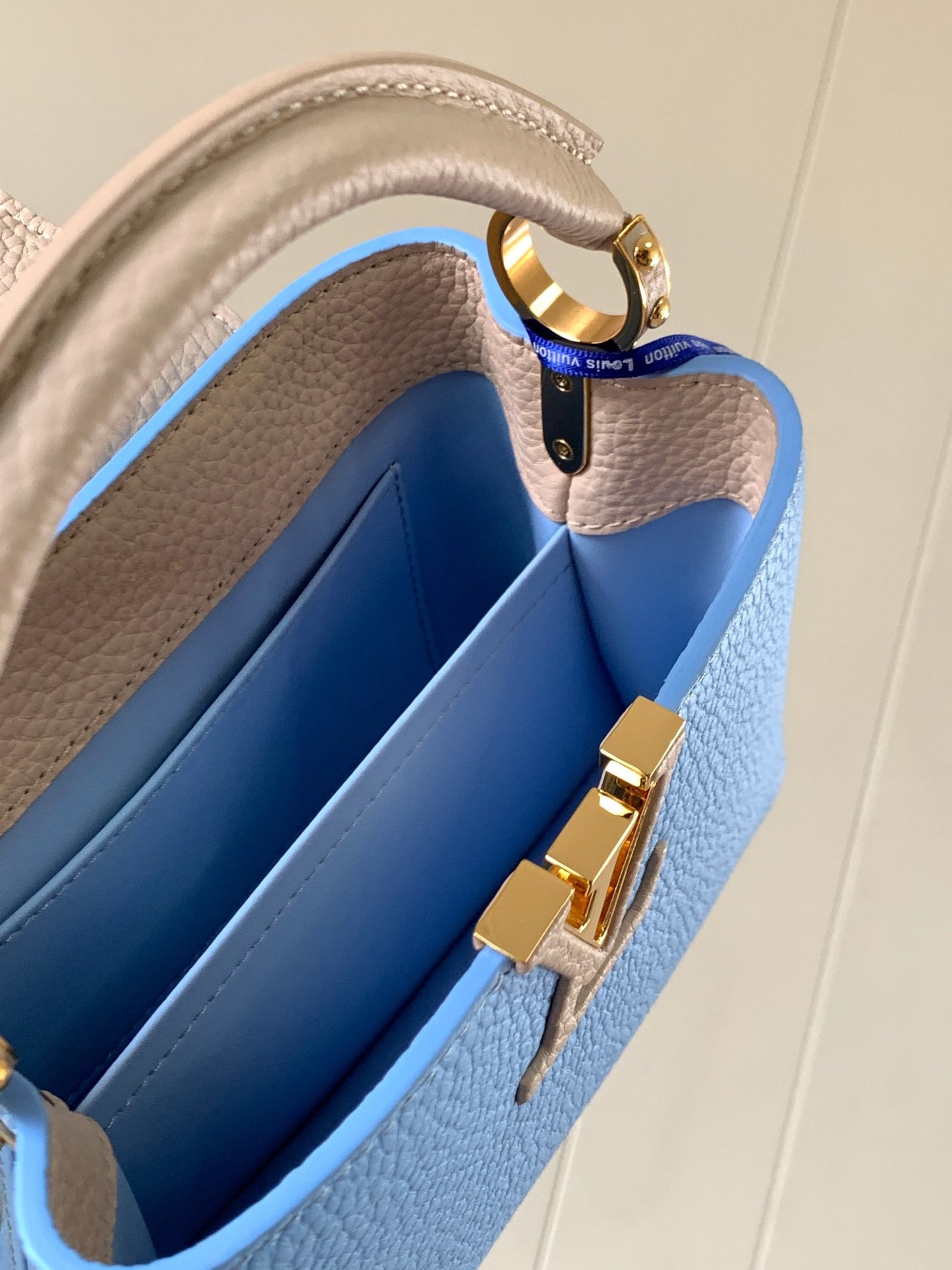 Louis Vuitton Capucines Mini Bag In Blue With Beige Handle