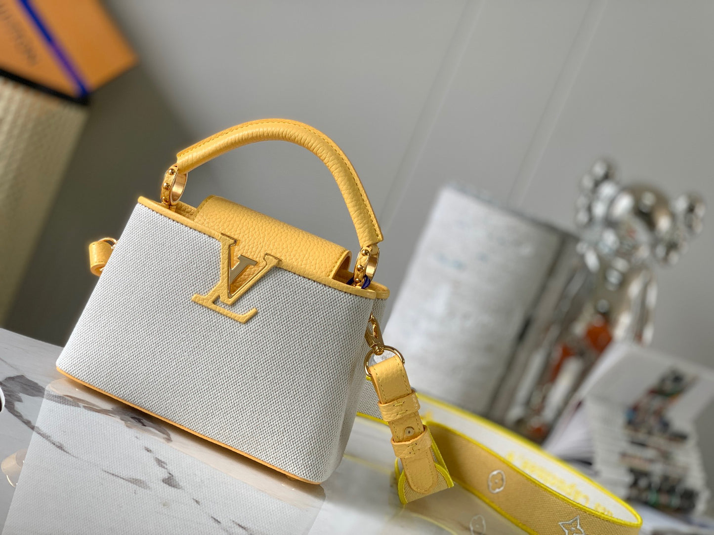 Louis Vuitton Capucines Mini Bag In Beige With Yellow Handle