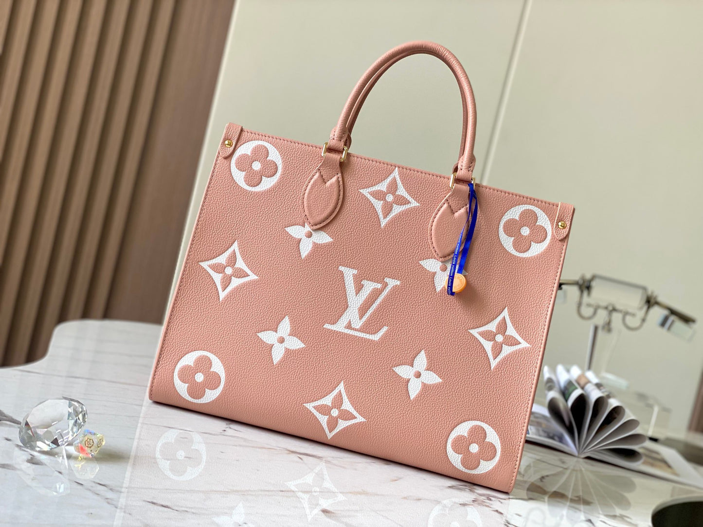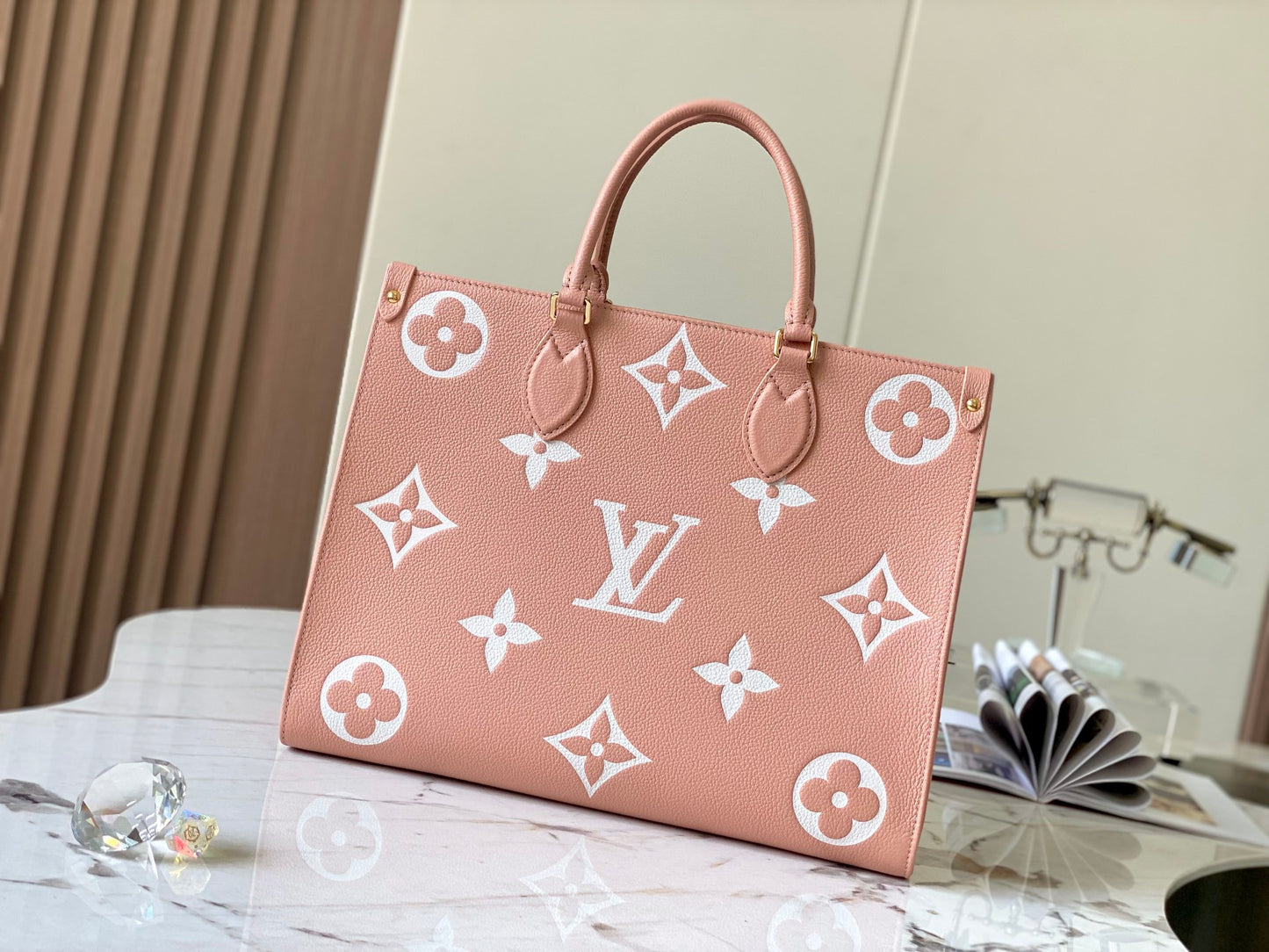 Louis Vuitton Onthego Handbags With Pink Embossed